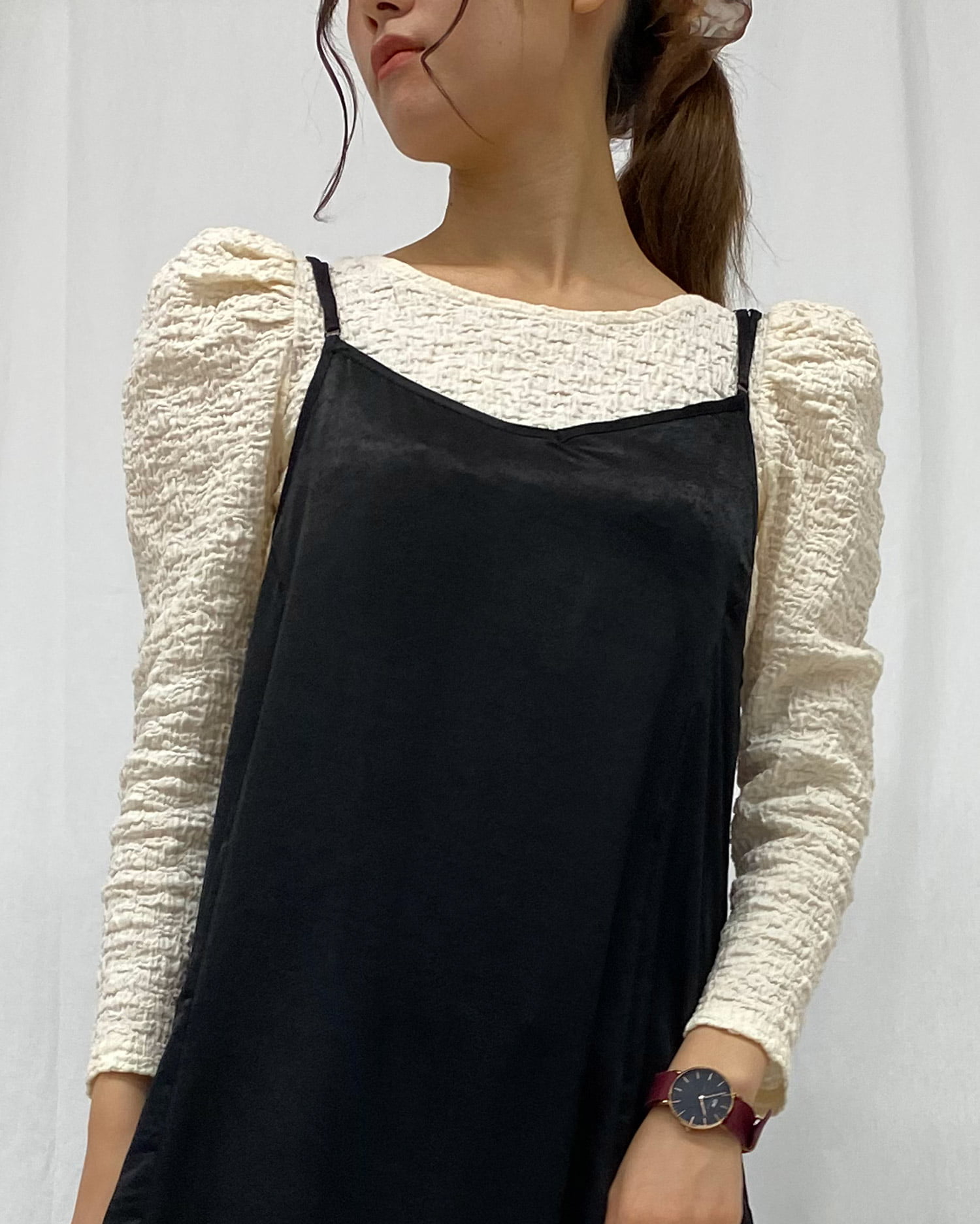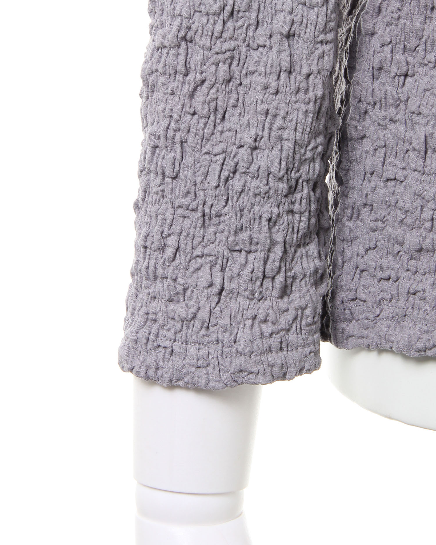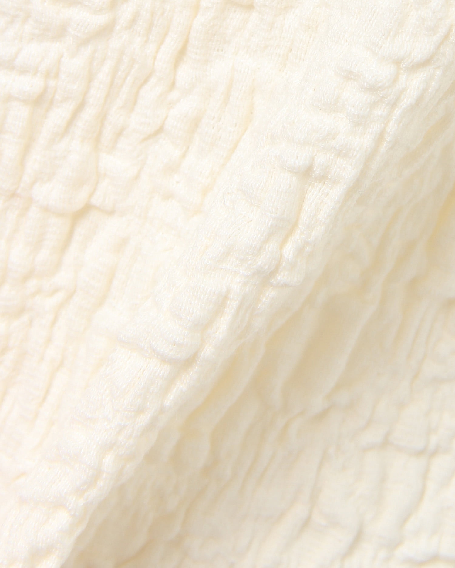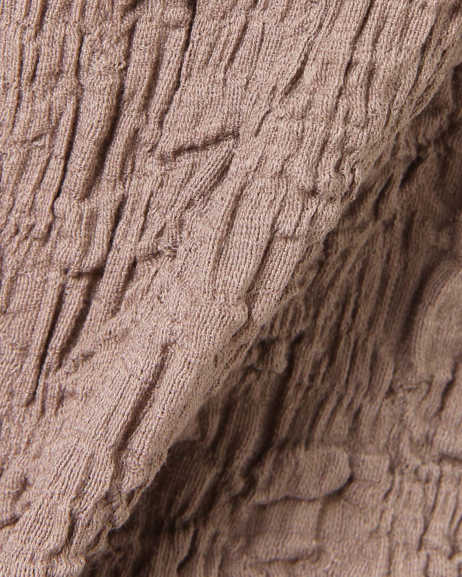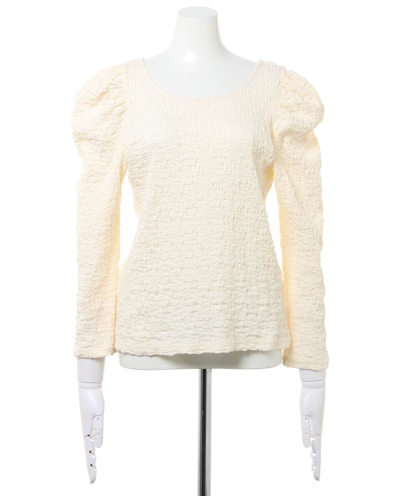 くしゅっとした立体感ある生地で表情のある着こなしが叶うロングスリーブトップス。伸縮性のあるやわらかな生地で着心地も快適です。ボディラインに沿うコンパクトなシルエットが上半身をすっきり見せてくれるのもポイント。どんなボトムスにも合わせやすいので普段使いにぴったりです。バックにあしらったリボンがフェミニンなアクセントに。
