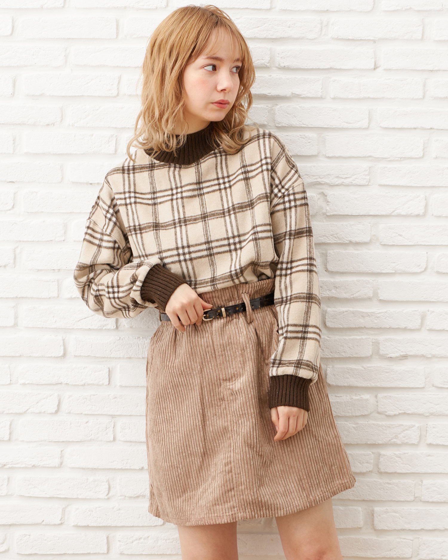 レトロ&ガーリーなチェック柄のプルオーバー。首元や袖口をリブニットで切り替え、メリハリのある1枚に仕上げています。表面感のある生地はハリを持たせることでキレイなシルエットをキープ。パンツでマニッシュスタイルはもちろん、ミニ丈ボトムスでガーリーに着こなすのもおすすめ。色々なチェックパターンが揃っているので自分らしい1枚が見つかります。