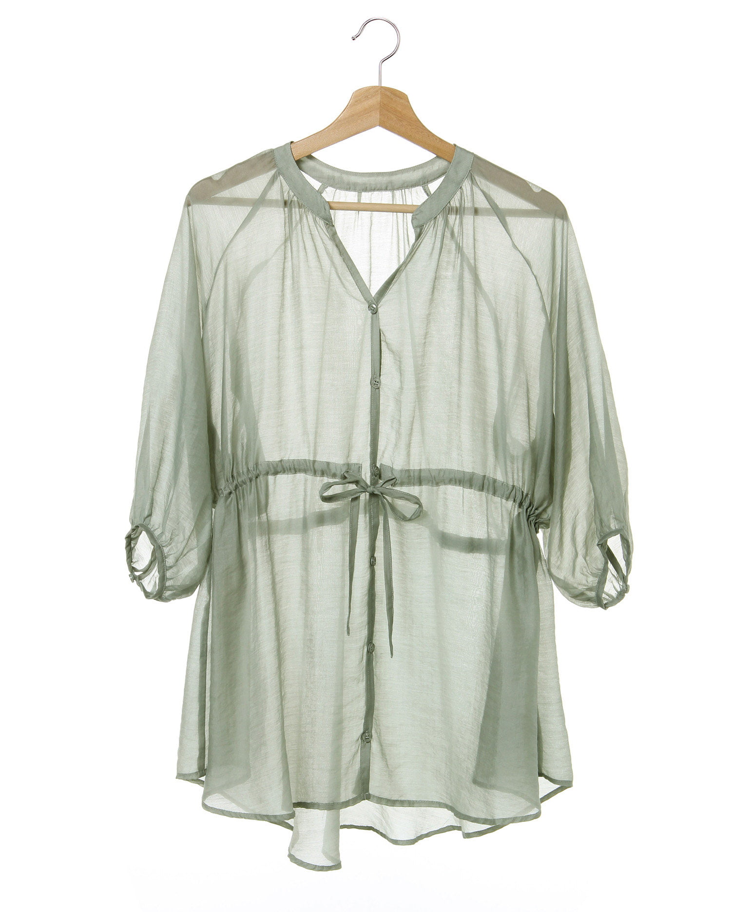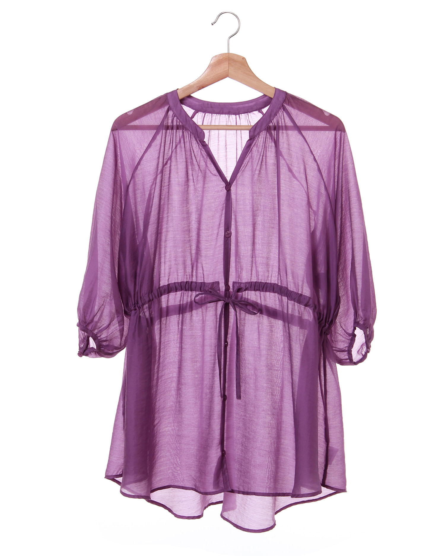 ほんのり透け感のあるシアー素材でトレンドの着こなしが叶うチュニックシャツ。ボディラインを拾わないゆったりとしたシルエットで体型カバーも狙えます。バスト下のドロストでシルエットチェンジも可能。羽織りとしても着られるのでこれからの季節にぴったりの1枚です。ベーシックなカラーはもちろん、コーディネイトのアクセントになるカラーも揃っています。