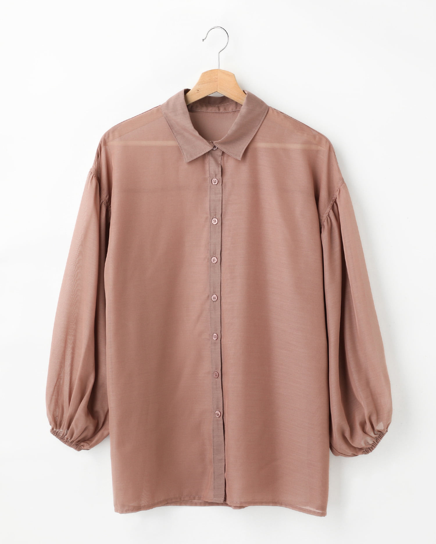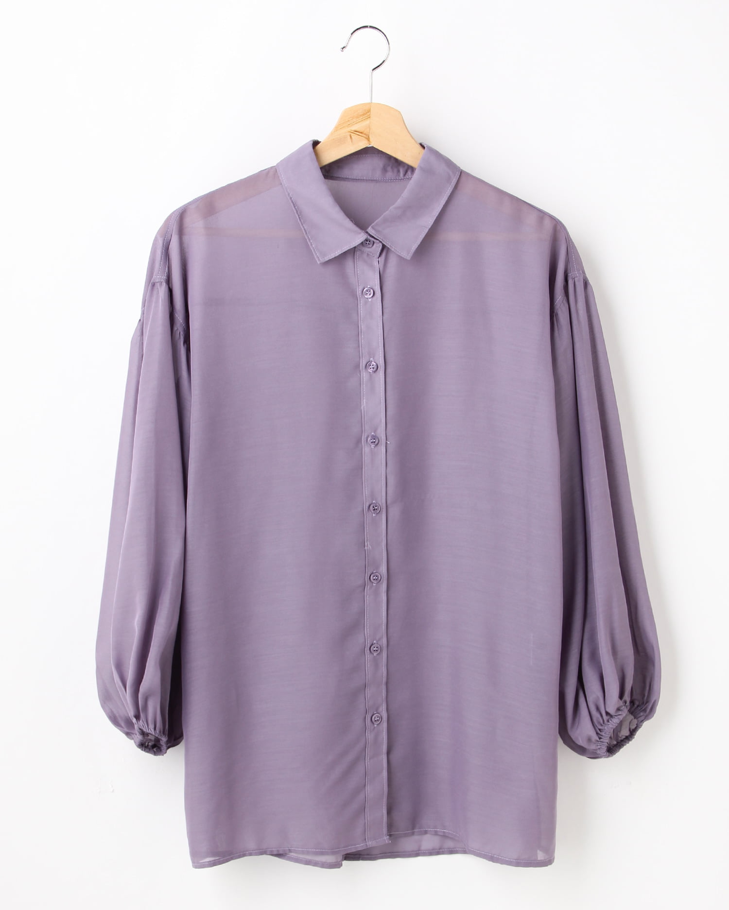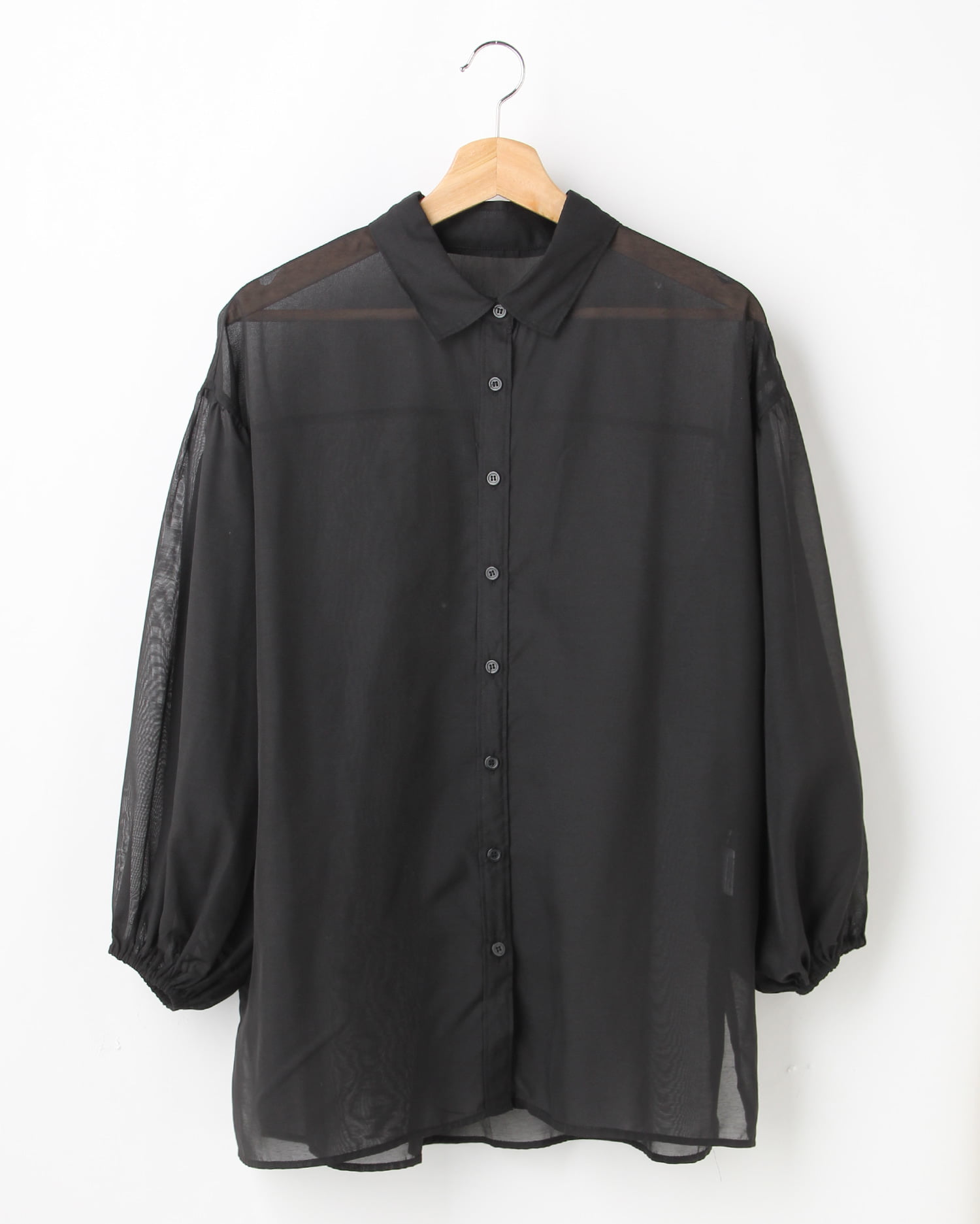 普段のスタイルに合わせるだけで程よく力を抜いた大人ラフコーデが完成するシアーシャツ。ふんわりとしたボリュームスリーブとゆったりとした身頃でキュートな雰囲気に仕上げています。長めの裾丈は気になる腰回りをカバー。ウエストマークした着こなしもおすすめです。今年らしいニュアンスカラーがラインナップ。