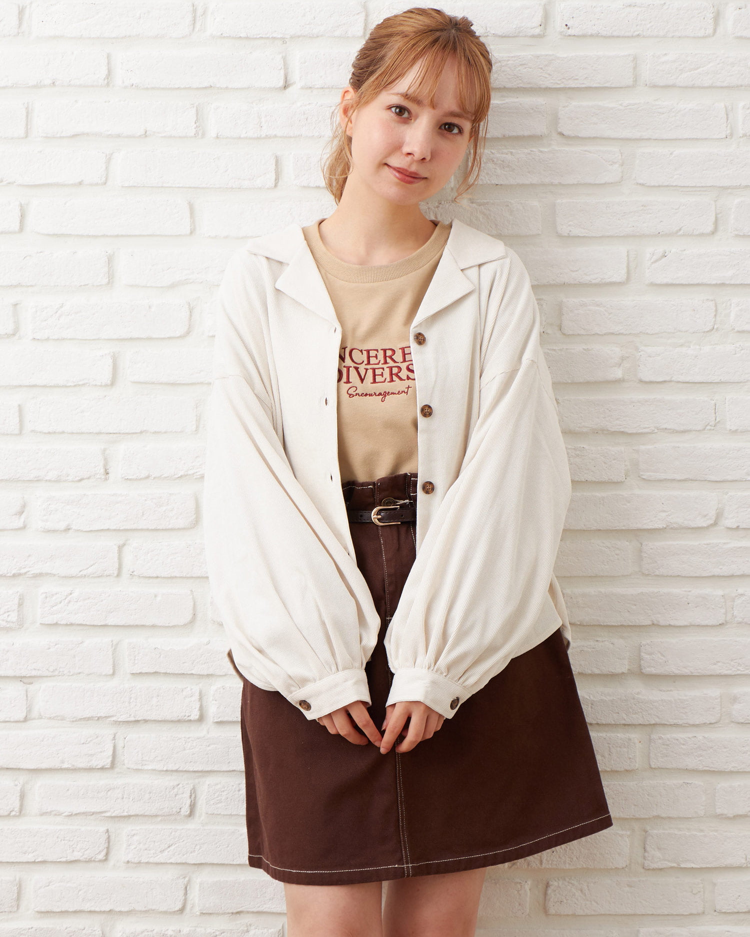 ゆったりとした身頃とふんわりスリーブでキュートな雰囲気に仕上げたシャツ。光沢のあるなめらかなライスコール素材で仕立てているのでワンカラーも表情のある着こなしへと導いてくれます。開襟デザインでもたつかず、すっきり見えするのも◎。短めの裾丈は羽織りとしてもバランス良く合わせられます。大人っぽいニュアンスカラーがラインナップ。