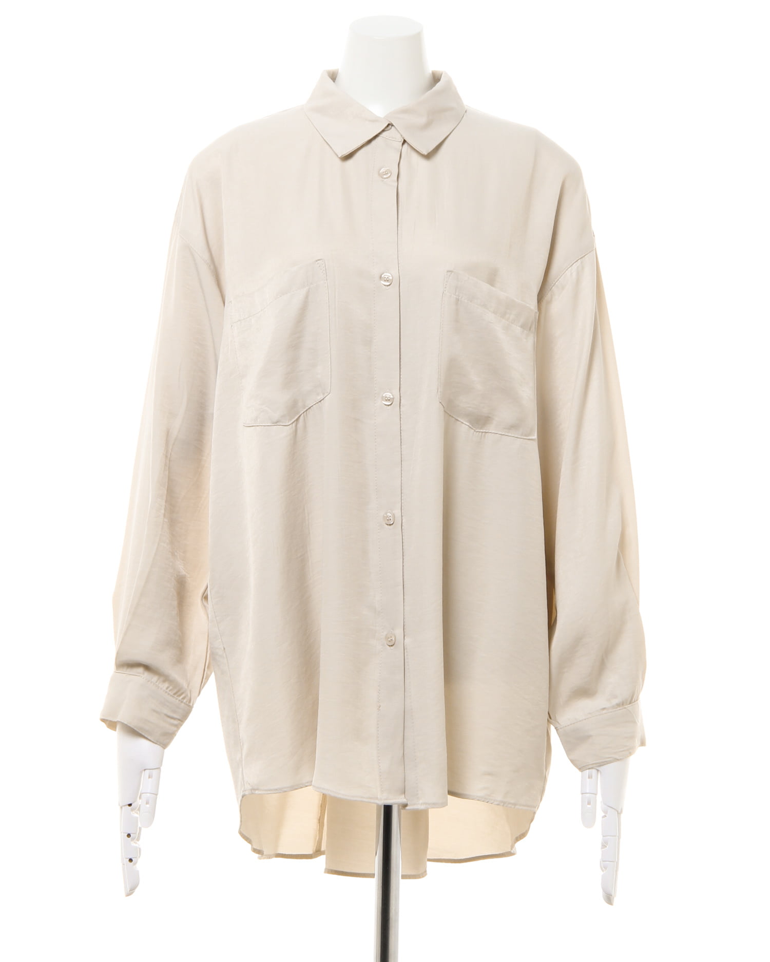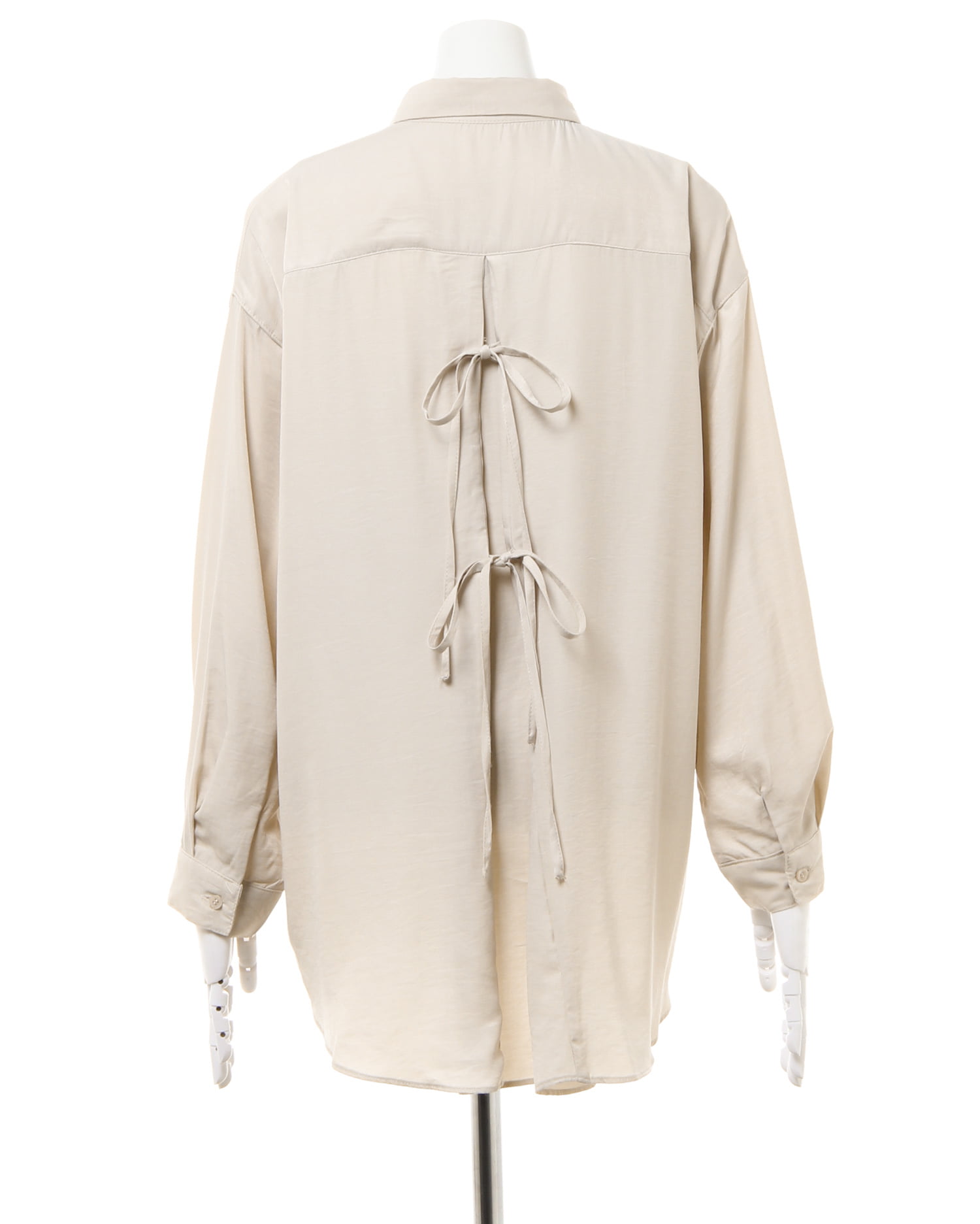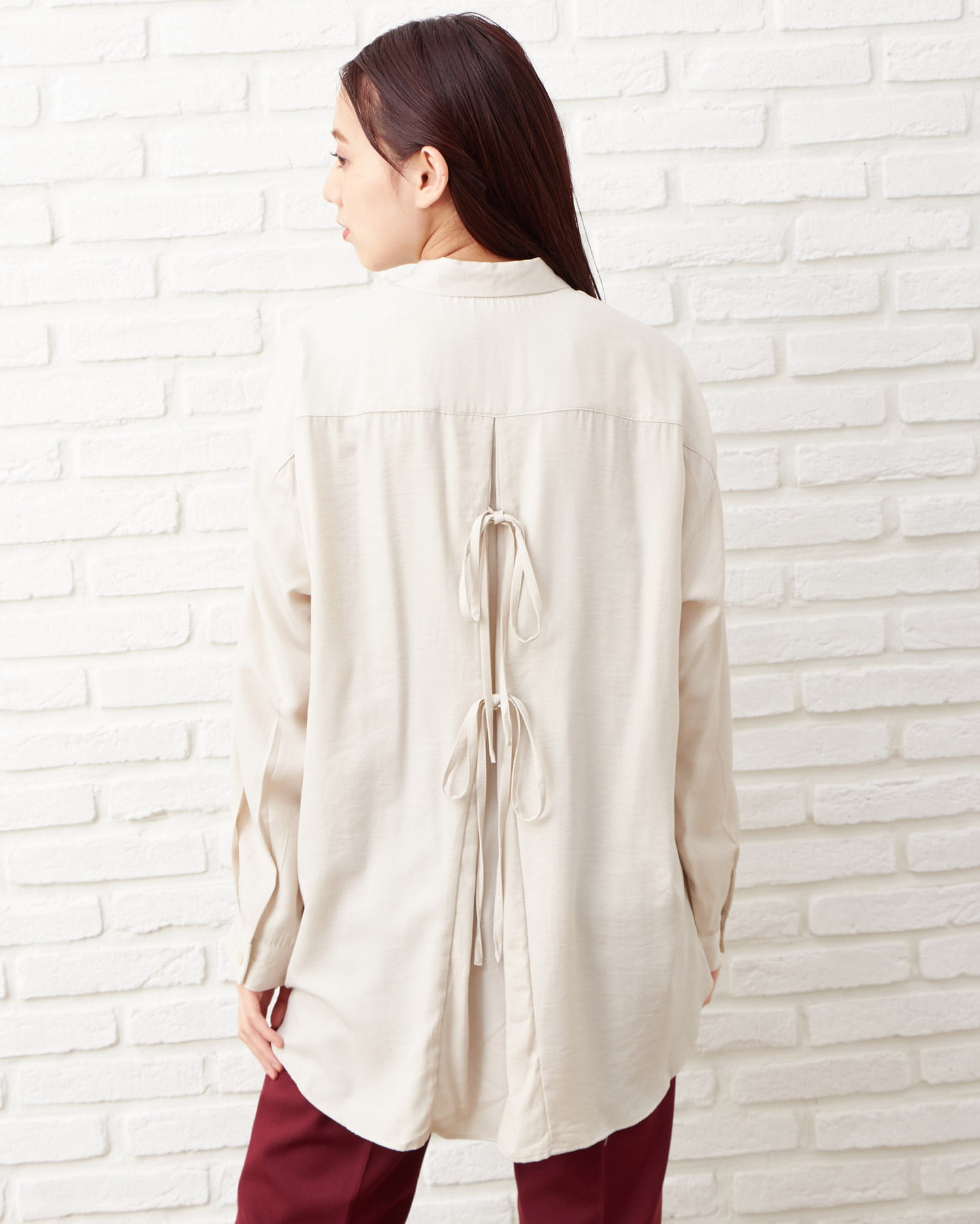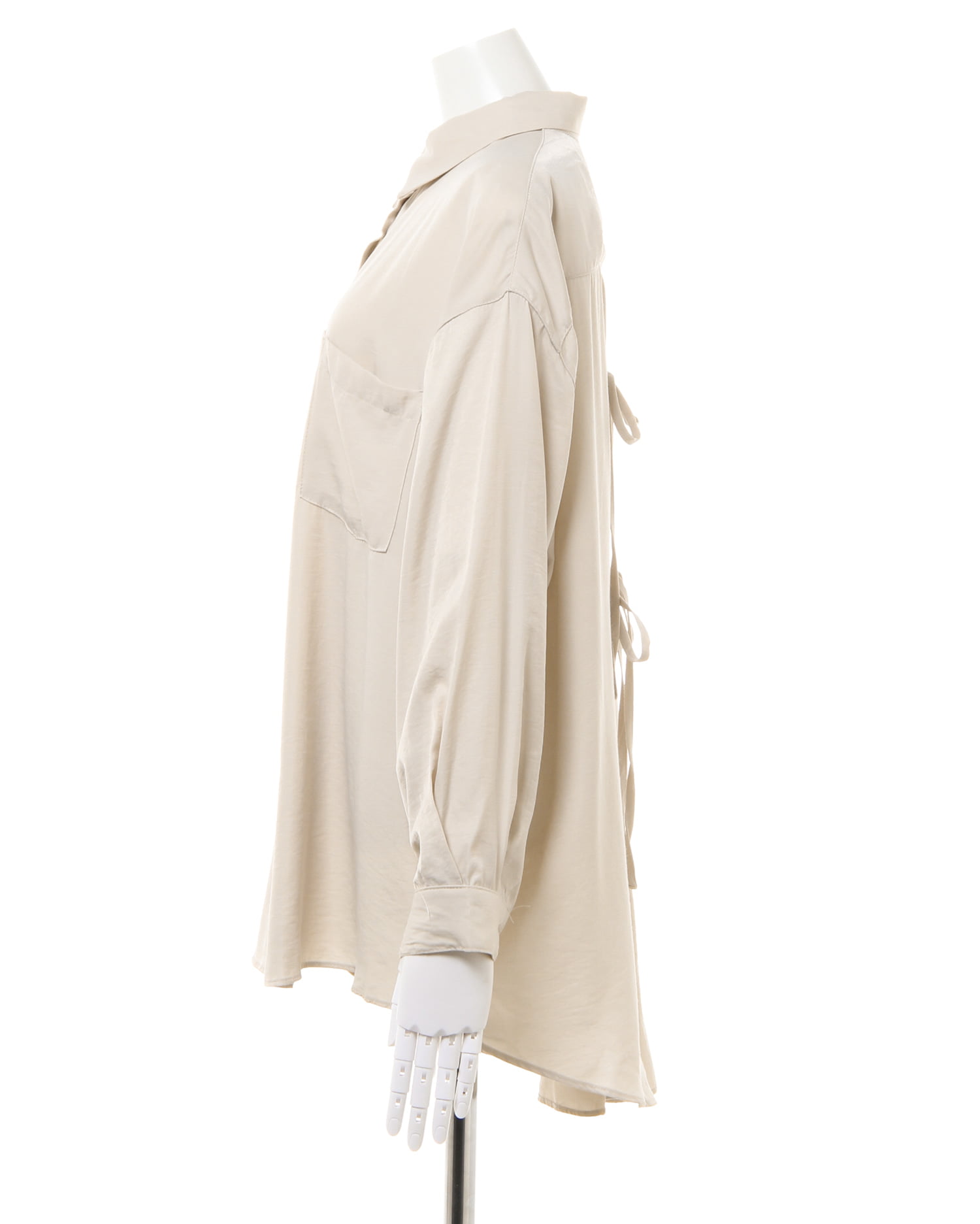 光沢のあるなめらかな素材で仕立てたシャツはバックのリボンデザインがフェミニン。トレンドのゆったりシルエットでリラックスした着心地を楽しめます。薄手の素材でシーズン長く着回せるのも◎。ヒップにかかる長めの裾丈で体型カバーも狙えます。フロントにあしらったポケットがアクセントに。大人可愛くキレイめに着こなして。