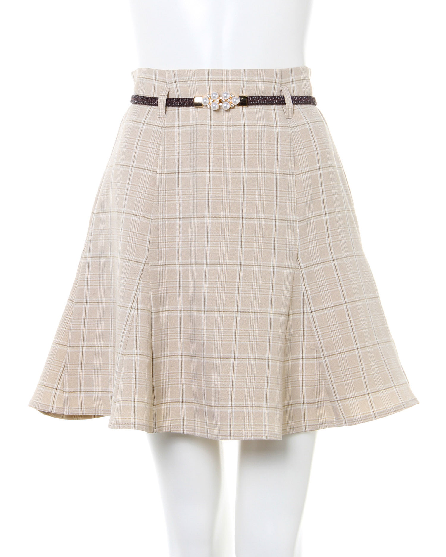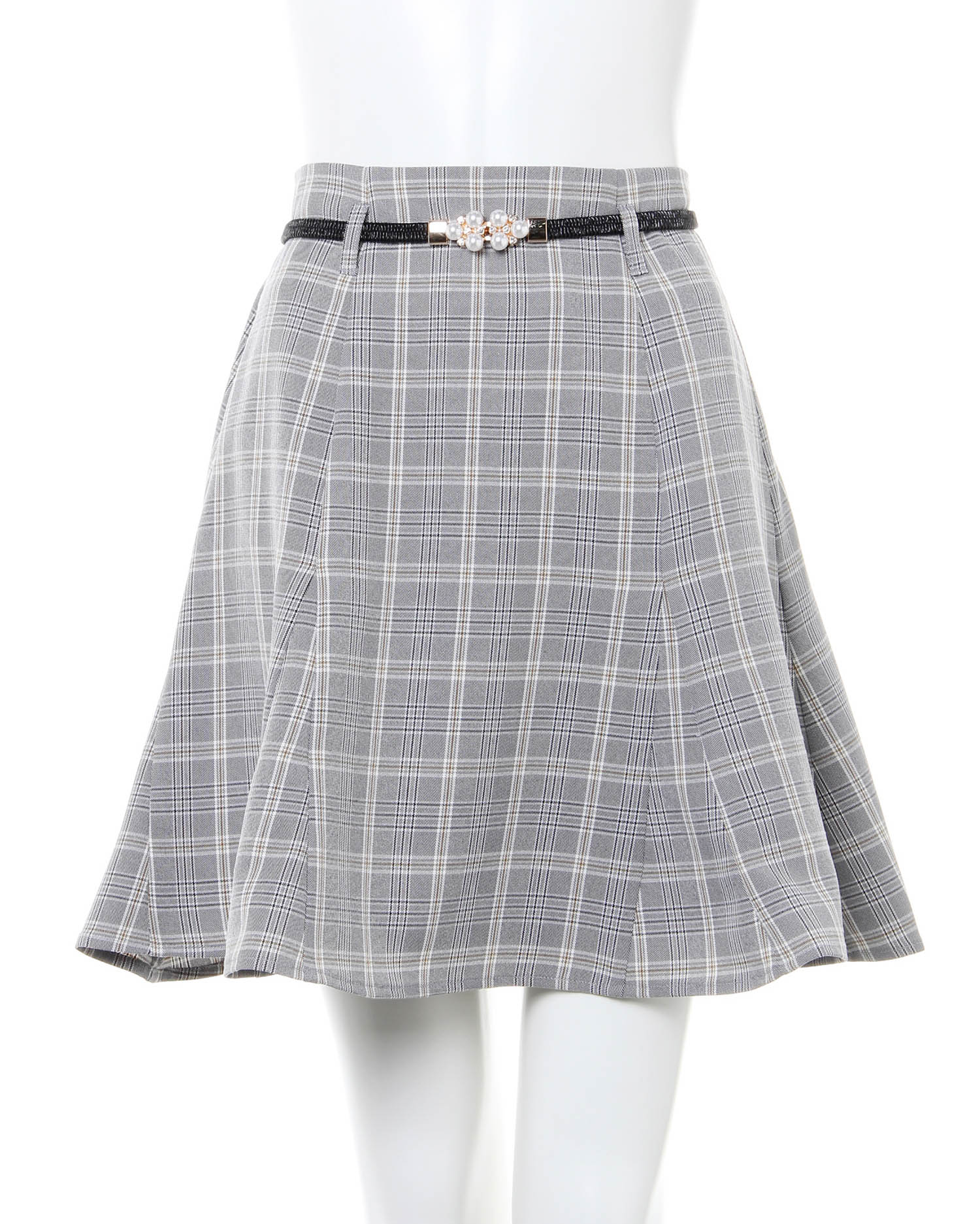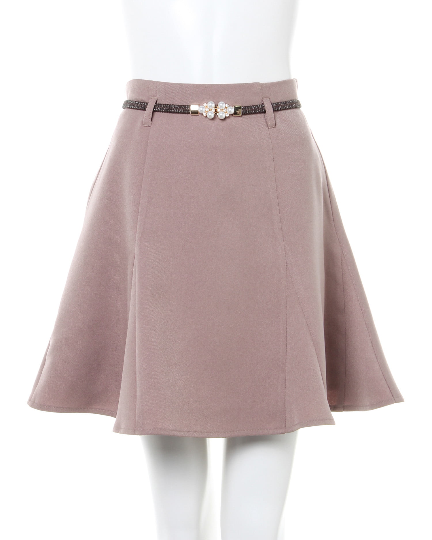 気になる腰回りをすっきり見せ美脚を叶えるミニ丈のスカート。裾部分を切り替え生地をたっぷり使うことでふわりと広がるフェミニンなシルエットに仕上げています。バックウエストはゴム&ジップで脱ぎ穿きも楽ちん。クラシカル&レディなパールビジュー付きのゴムベルトがセットになっています。