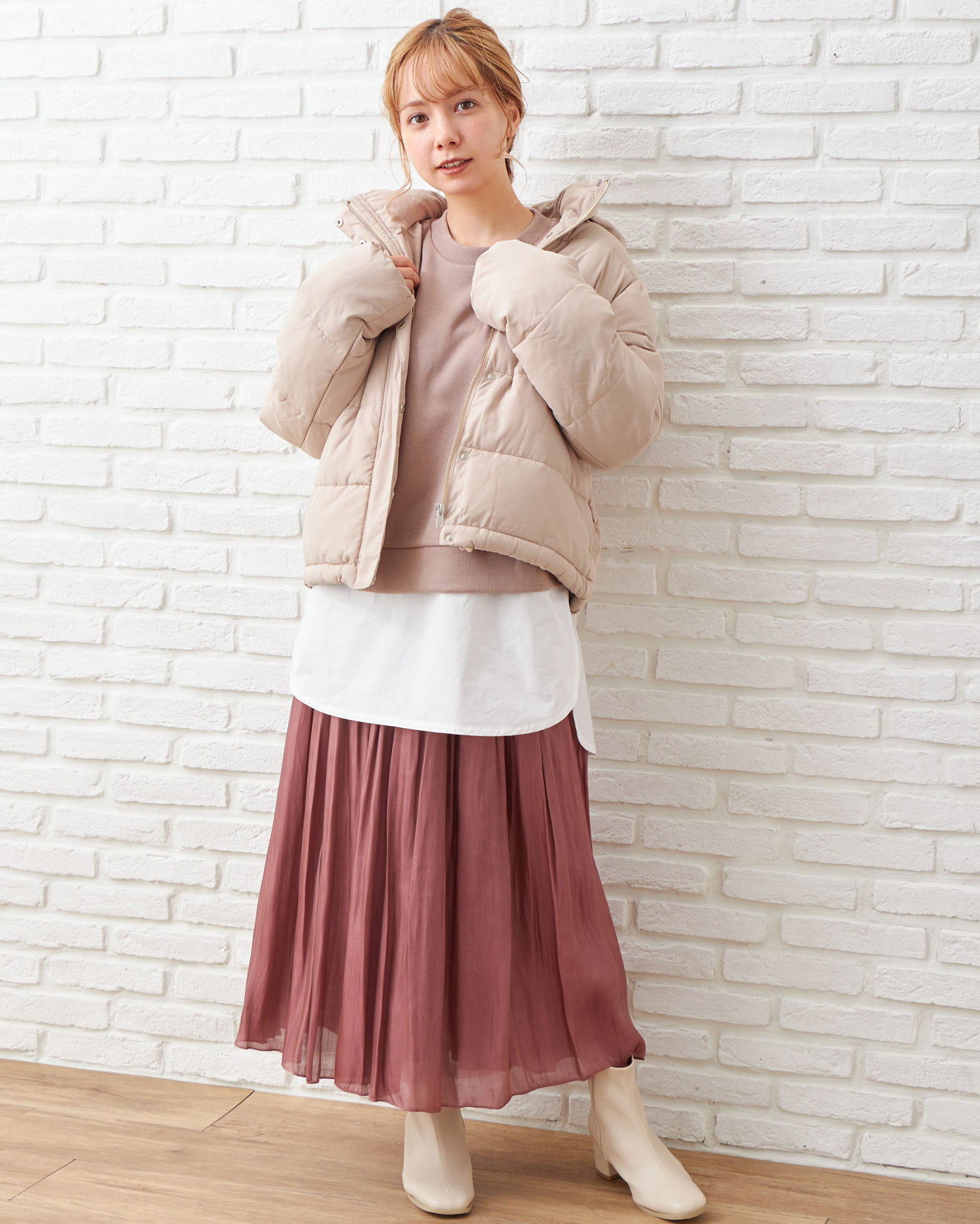 光沢のあるサテン地とスウィートなチュールを組み合わせたロング丈のスカートが登場。どちらの面を表にしても着られるリバーシブルデザインでスタイルに合わせた着こなしを楽しめます。ウエスト部分はゴムになっているのでフィット感も◎。たっぷりとしたギャザーからふわりと広がるシルエットが気になる腰回りをカバーしてくれます。コーディネイトのアクセントになるキレイカラーをラインナップ。