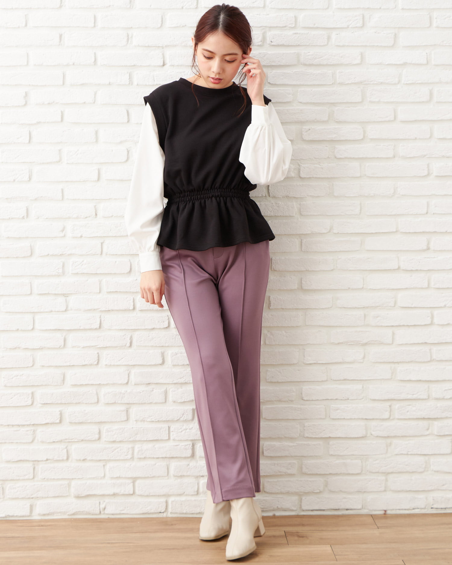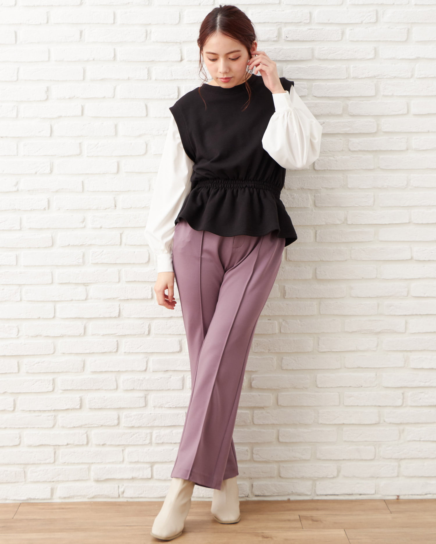 キレイめ素材でオンオフ問わずに着回せるセンターシームデザインのパンツ。やわらかく伸縮性のある生地で穿き心地も快適です。バックウエストはゴムになっているのでフィット感も◎。すっきりとしたシルエットが美脚へと導きます。どんなトップスにも合わせやすいベーシックなカラーはもちろん、トレンドのニュアンスカラーもラインナップ。サイドには便利なポケット付きです。