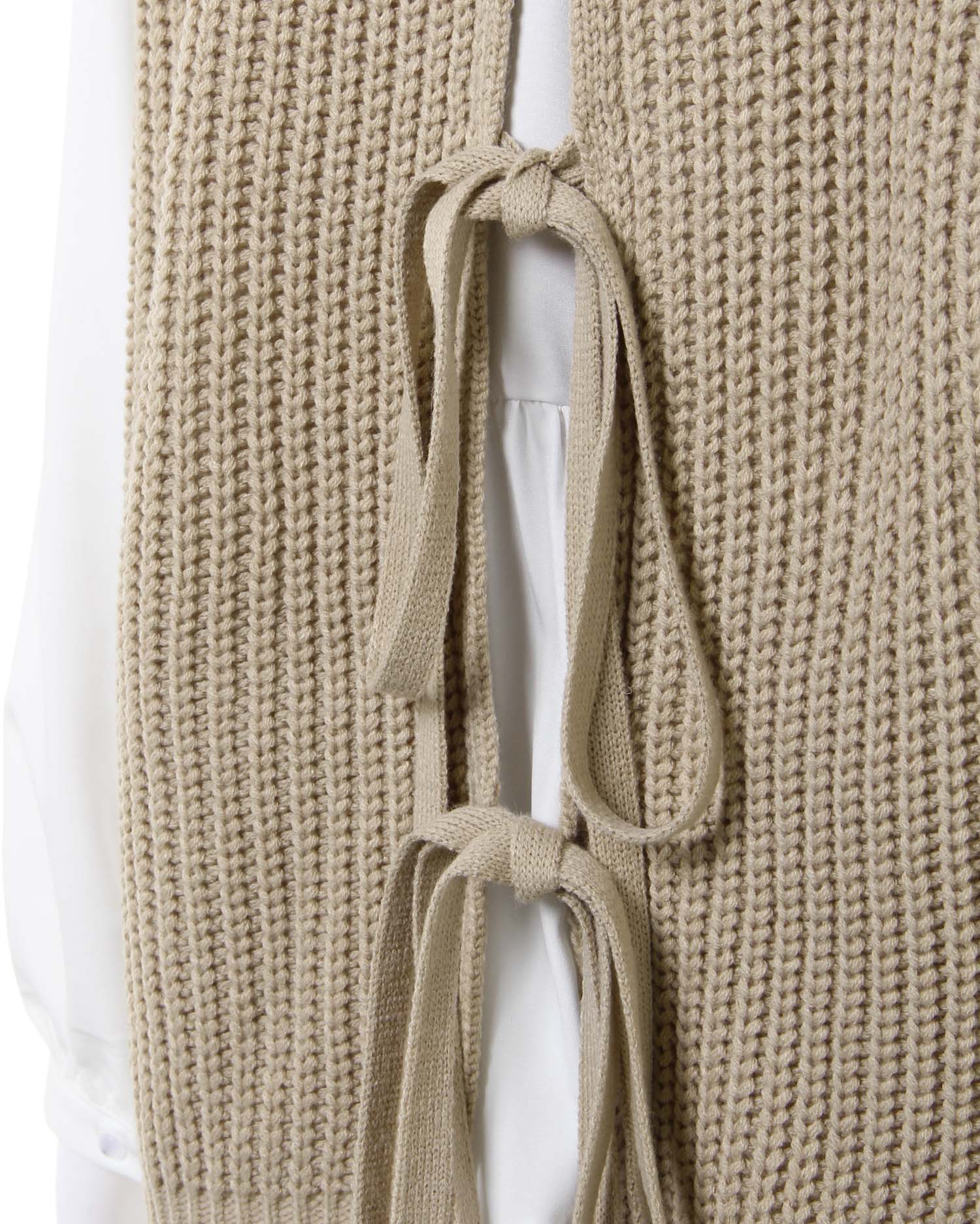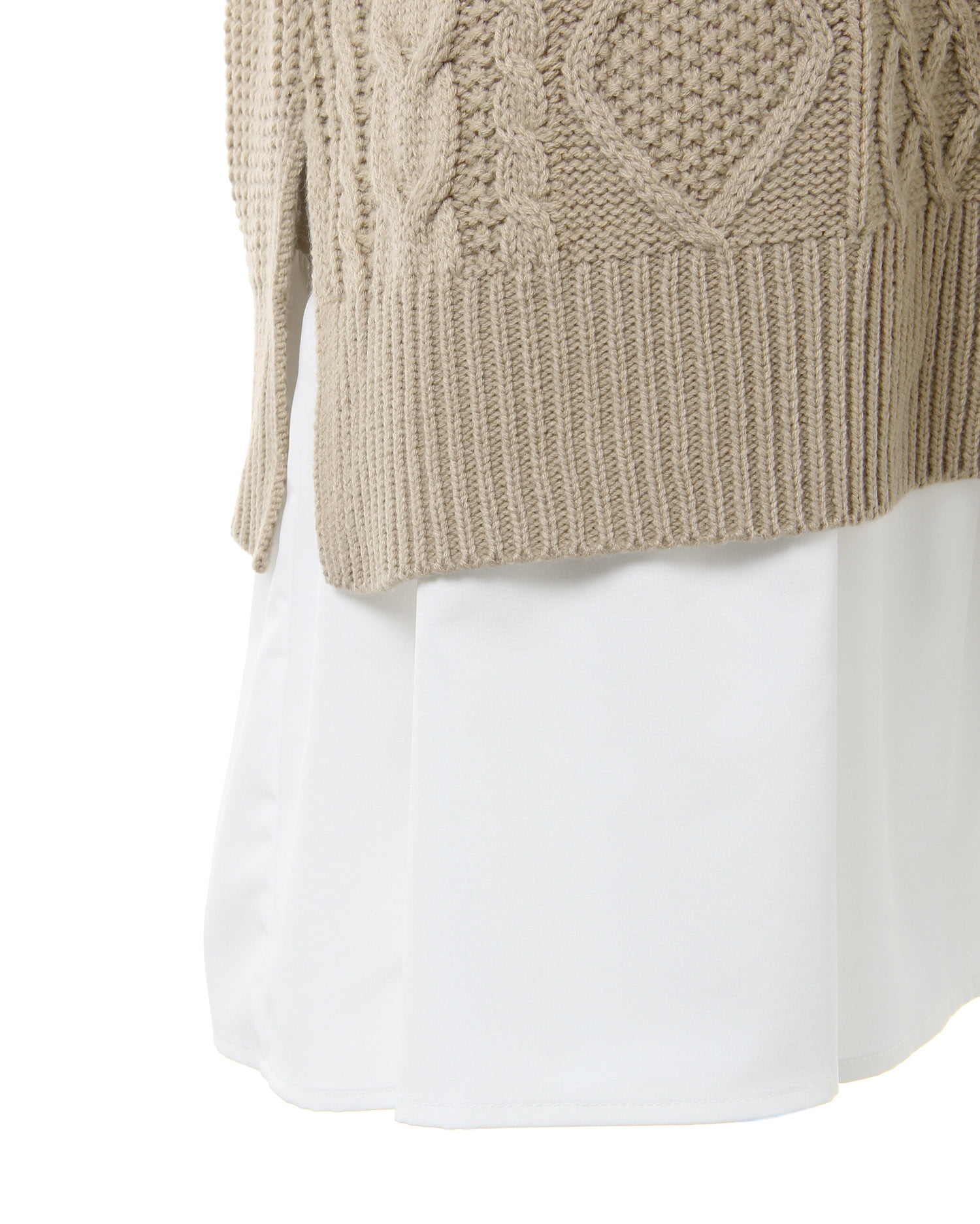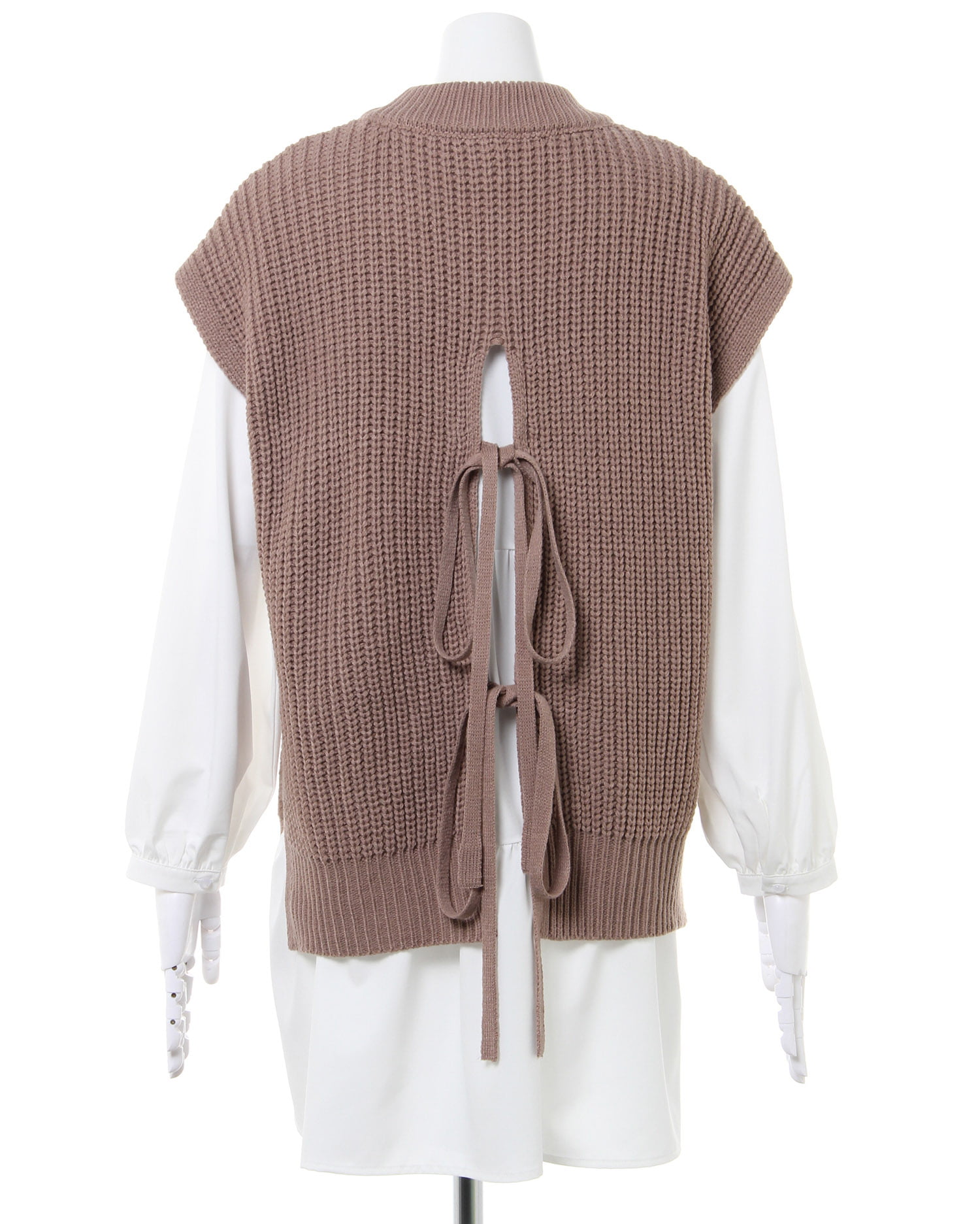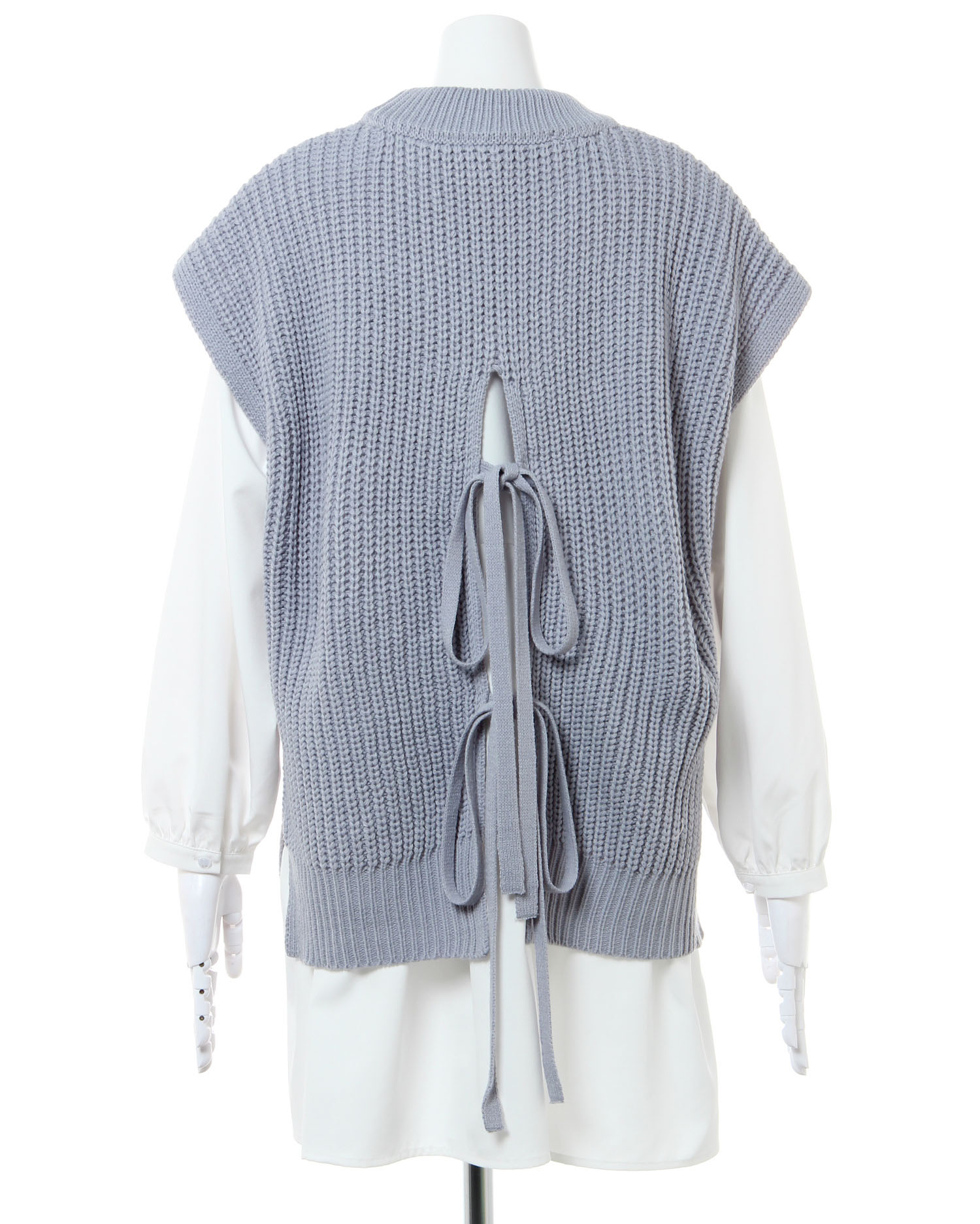 ナチュラルな雰囲気のケーブル編みのニットベストとレディなティアードブラウスのセットが登場。ゆったりとしたシルエットで快適な着心地になっています。広めのバックオープンデザイン&リボンがアクセントに。ヒップを覆うロング丈で体型カバーも狙えるブラウスとの組み合わせでトレンドライクなコーディネイトが完成します。