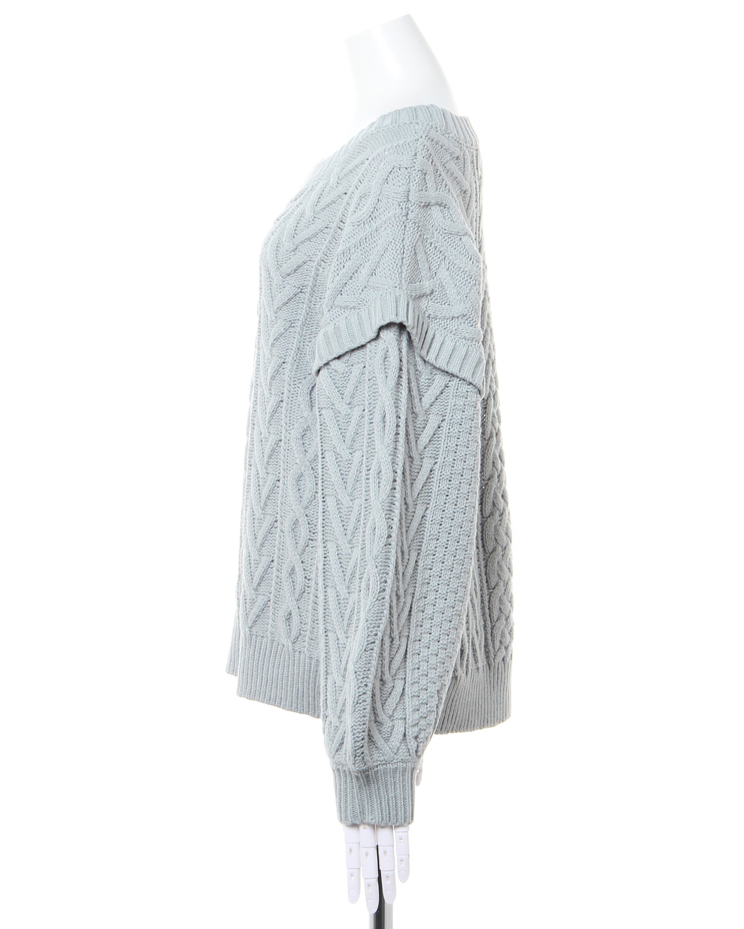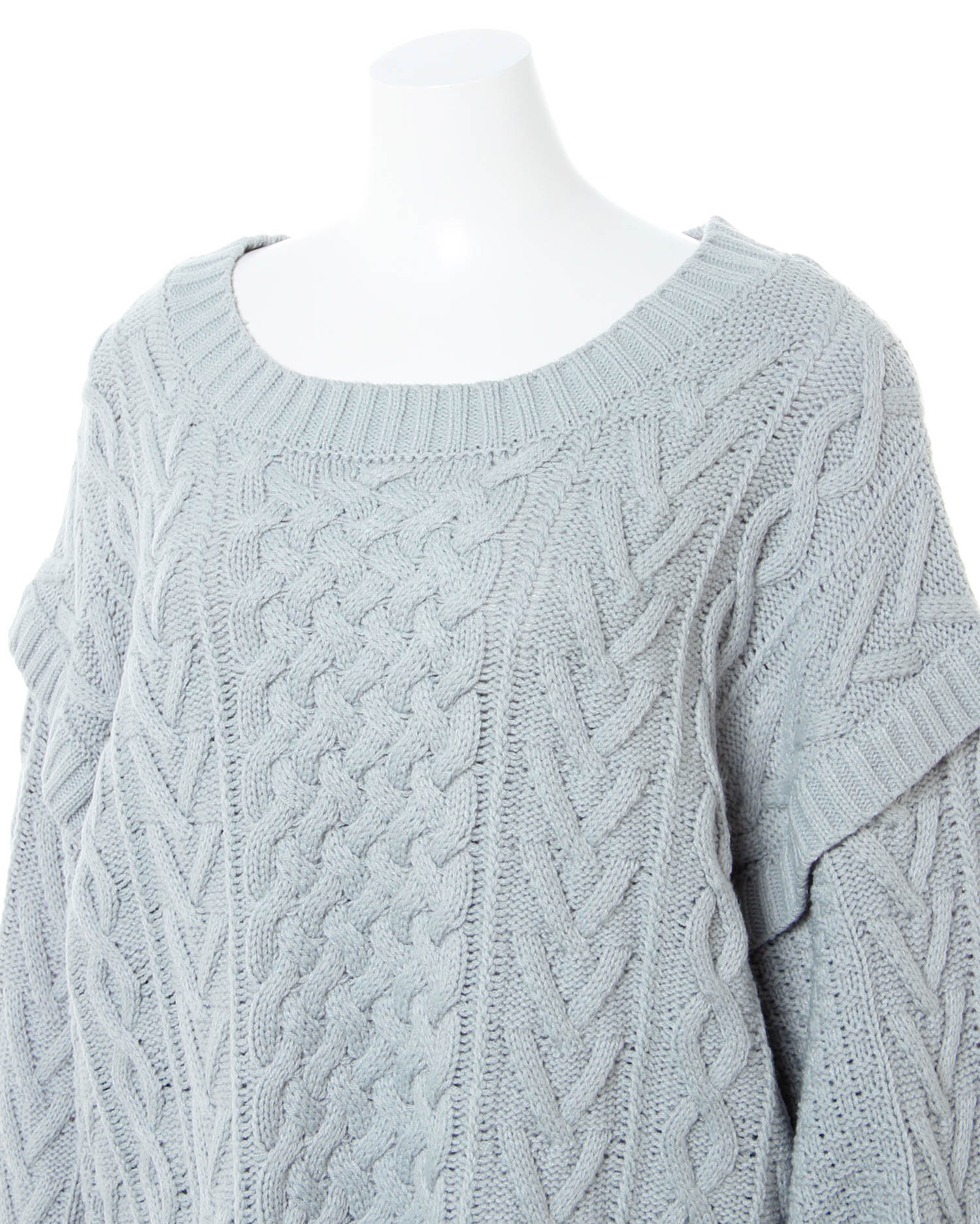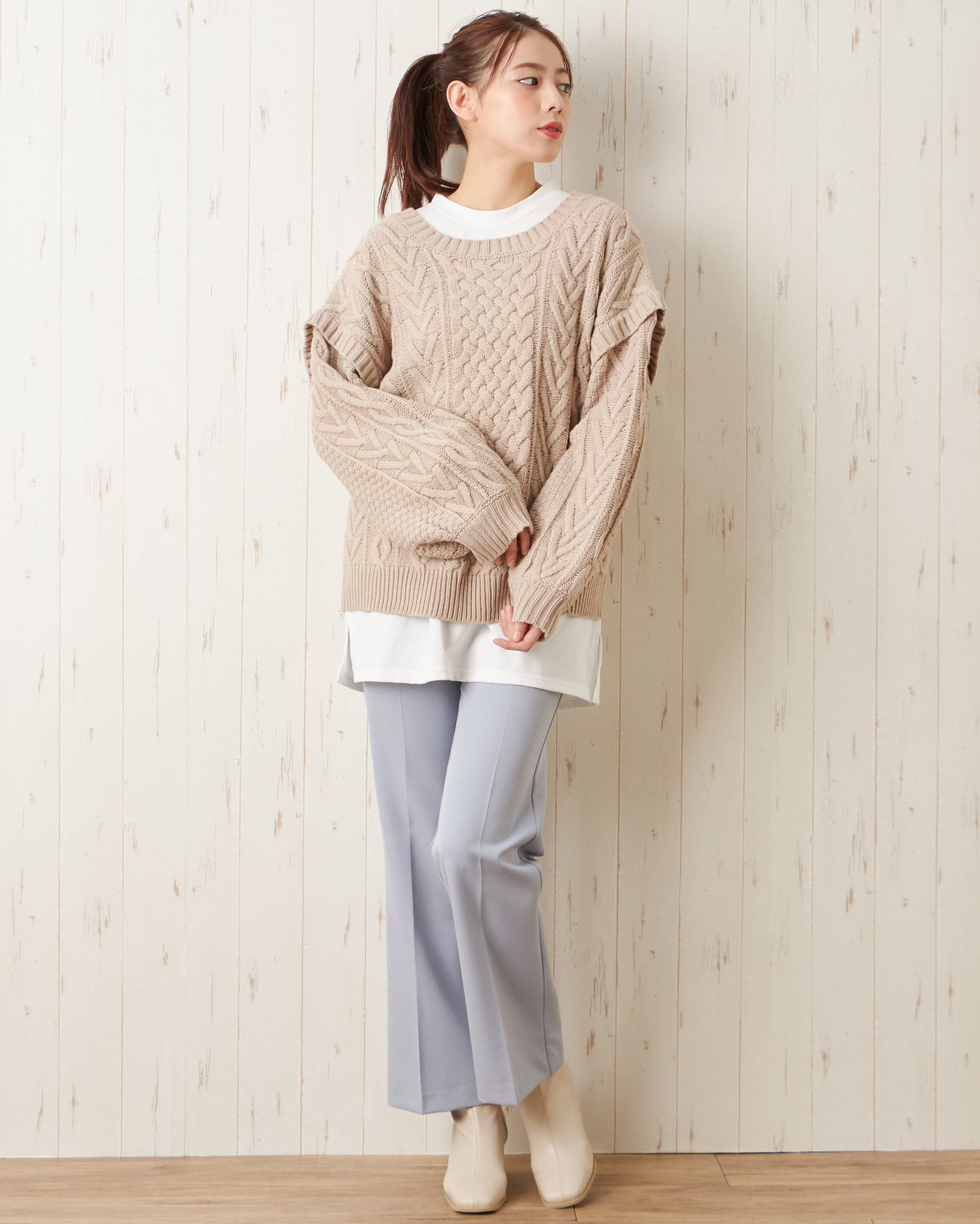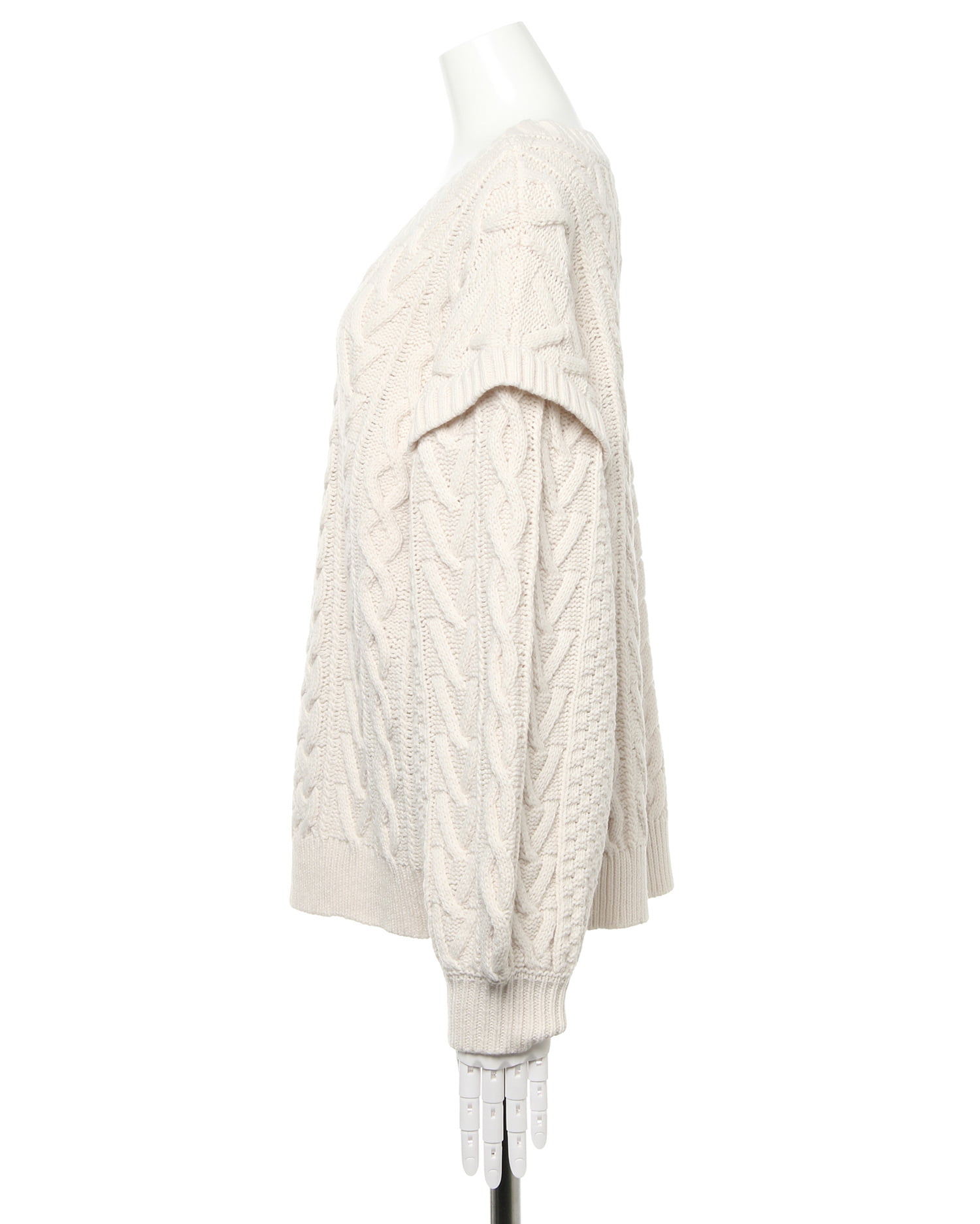 季節感たっぷりのほっこりスタイルが完成するケーブル編みのニットトップス。トレンドのゆったりとした身頃で快適な着心地になっています。ボディラインを拾わず、スタイルカバーを狙えるのも◎。すっきりと開いたネックラインでインナーと合わせた着こなしも楽しめます。袖部分に切り替えを入れたデザインがスタイリッシュ。