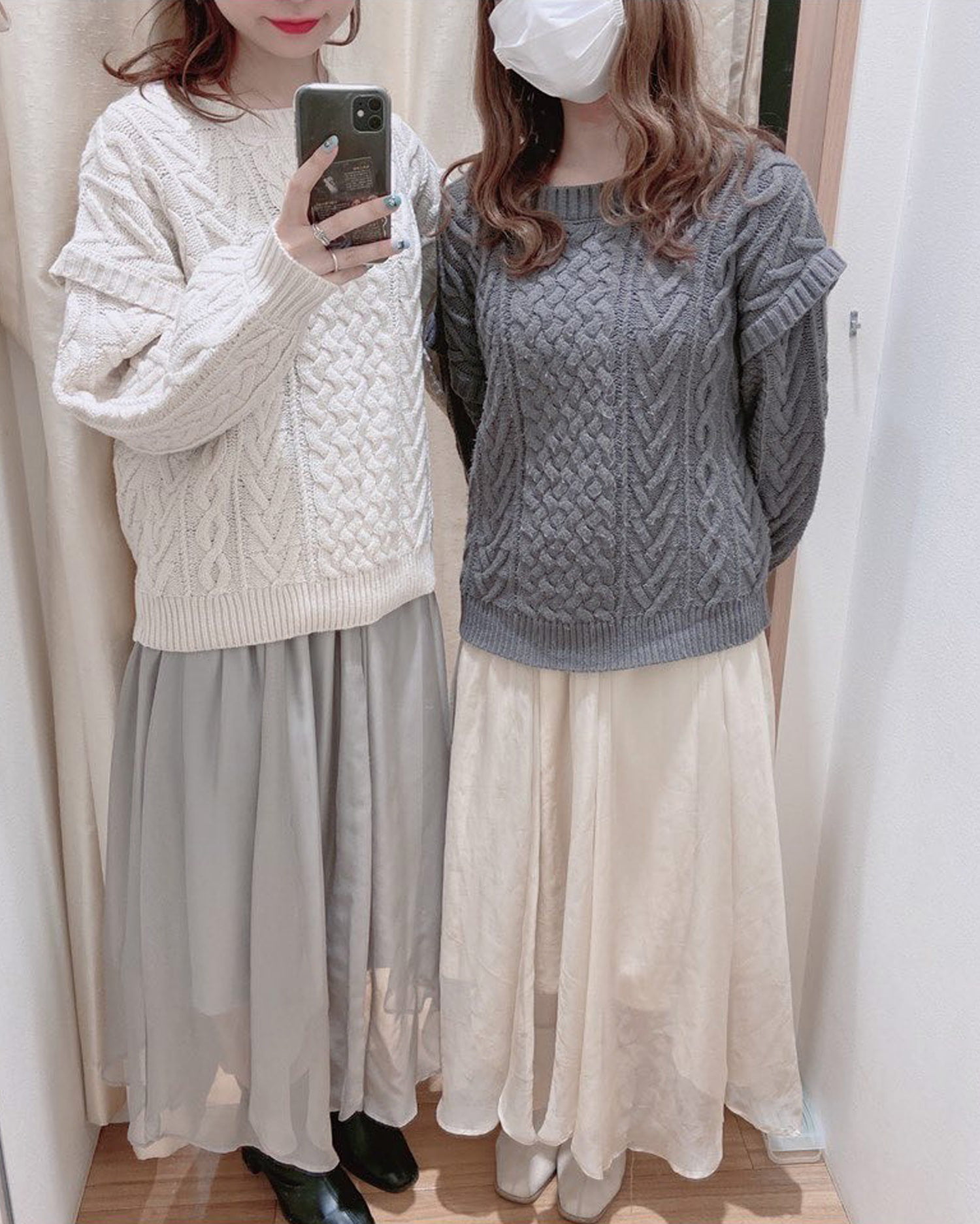 ・ニット製品で生地が伸びやすいため、サイズに若干の誤差が生じる場合がございます。予めご了承くださいませ。