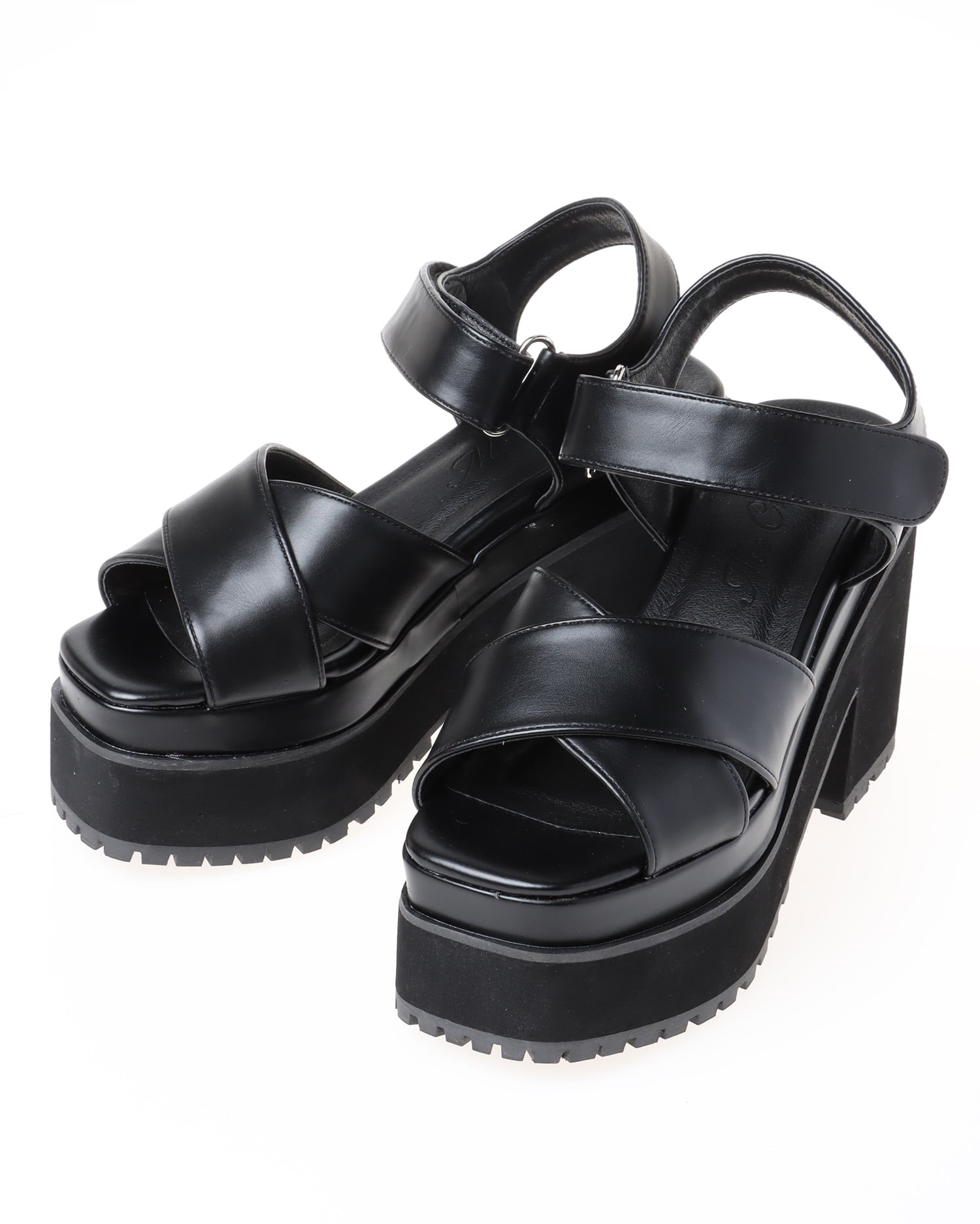 バルキーソールとスクエアトゥがモードな雰囲気のサンダル。クロスストラップと太めのヒールで安定感も◎。高さがありながらも疲れにくいので普段使いにぴったりです。足首をホールドするストラップはワンタッチで調節可能なのでフィット感良く履けるのもポイント。美脚効果も抜群です。ベーシックで合わせやすいカラーが揃っています。