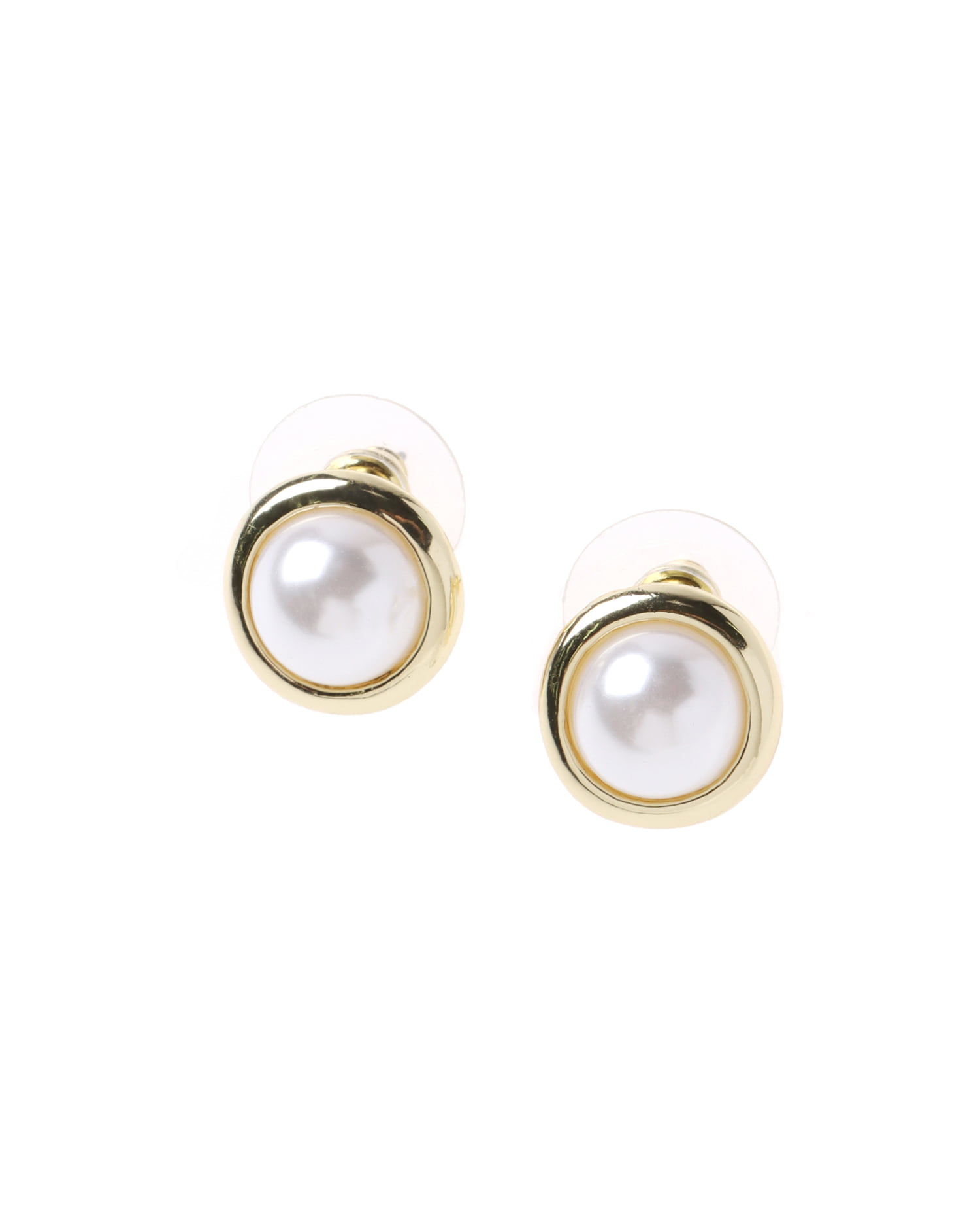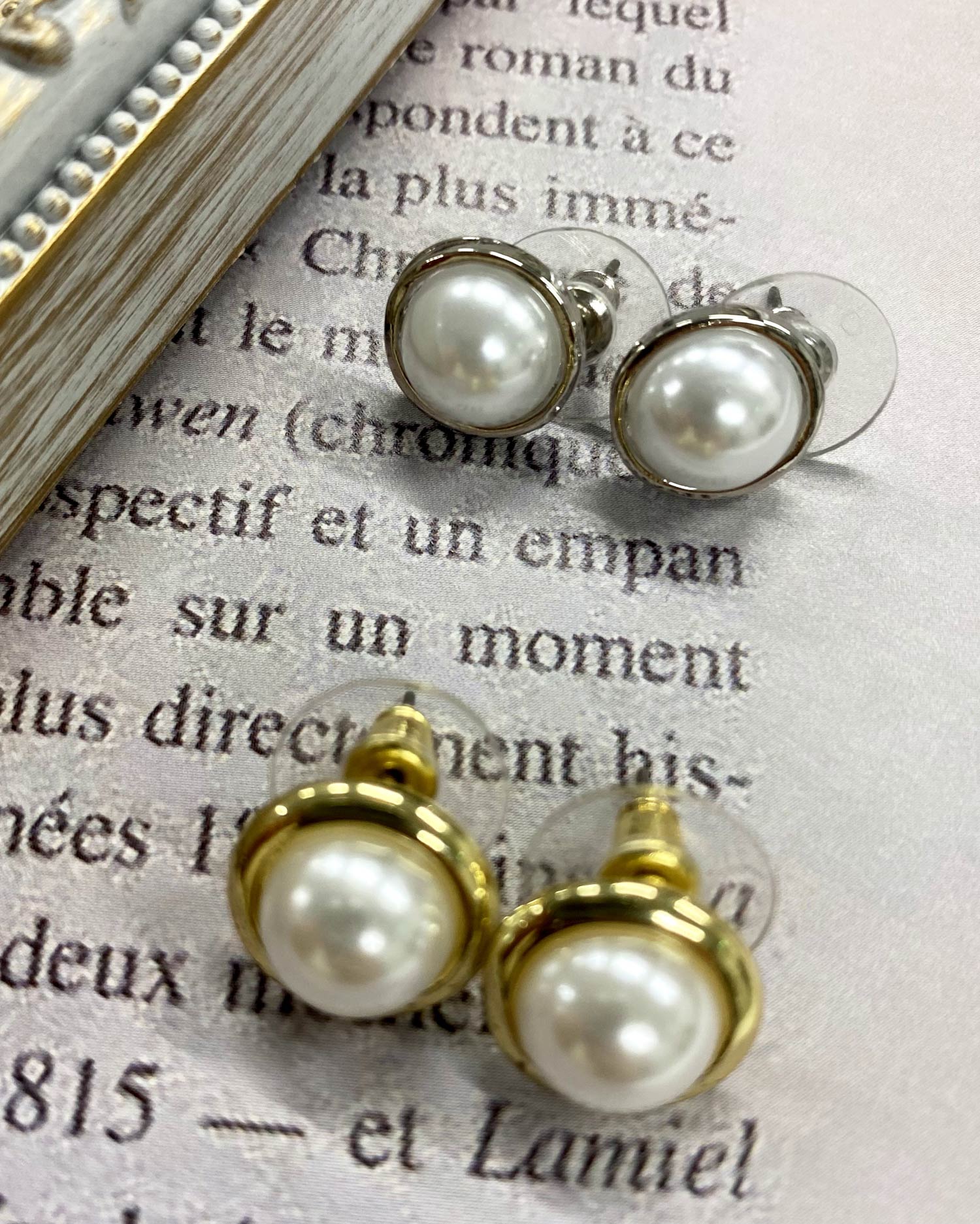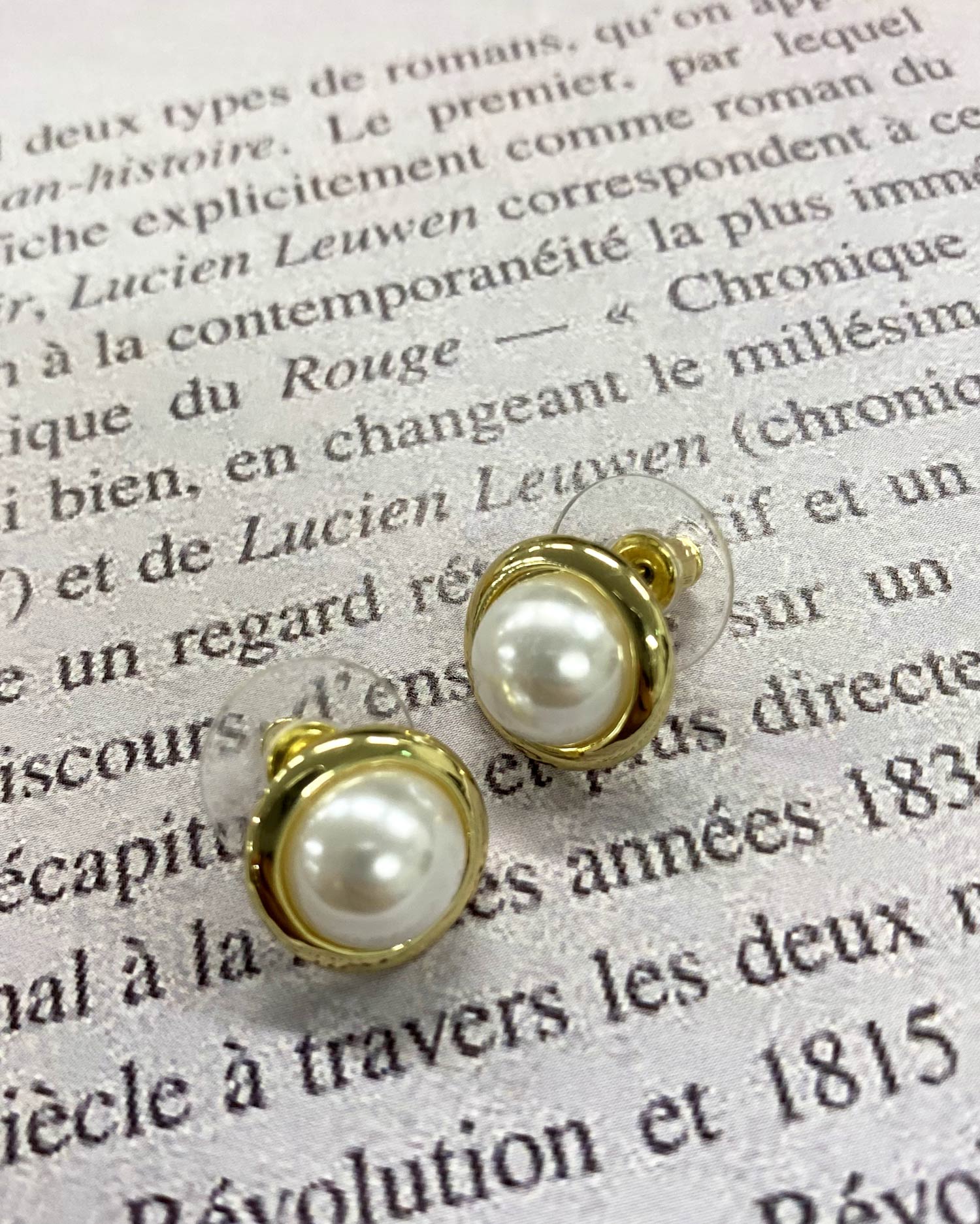 程よい大きさのパールビジューにメタリックなフレームをプラスし、華やかな印象に仕上げています。