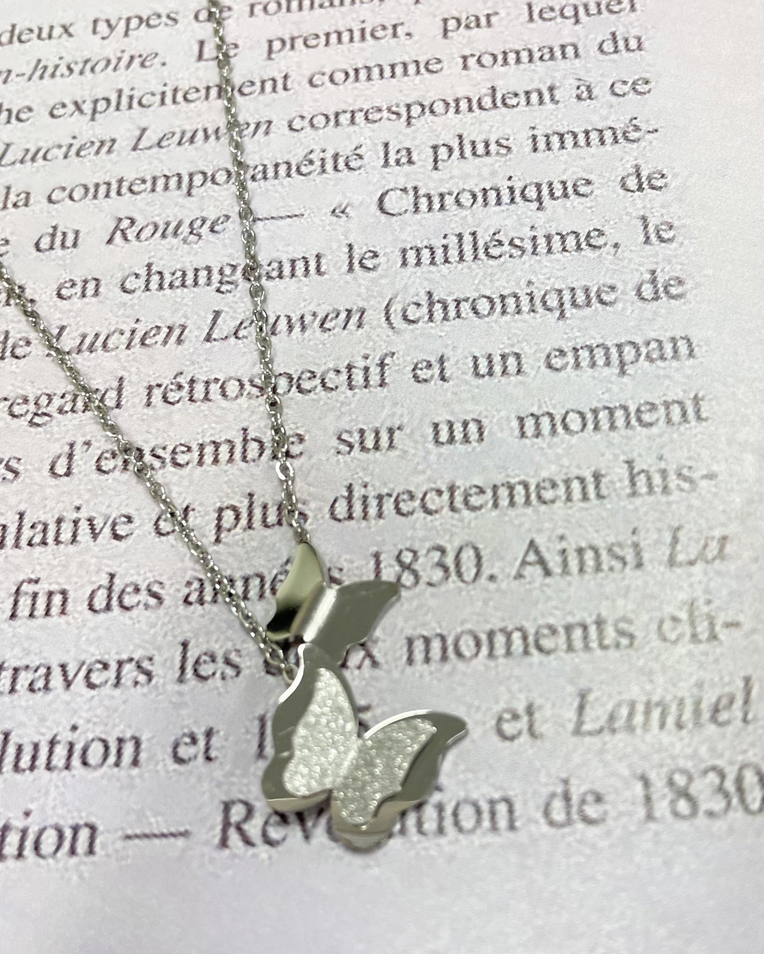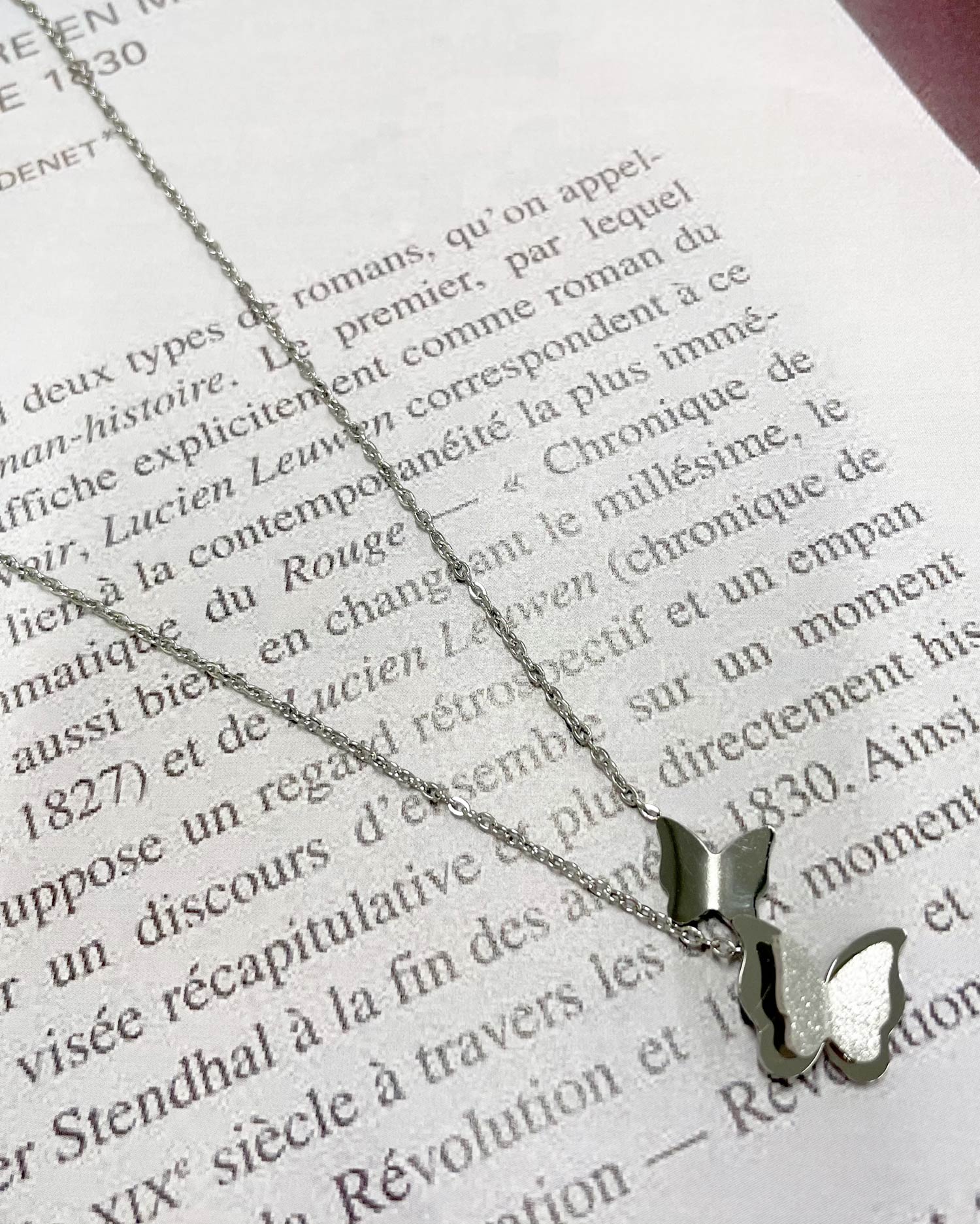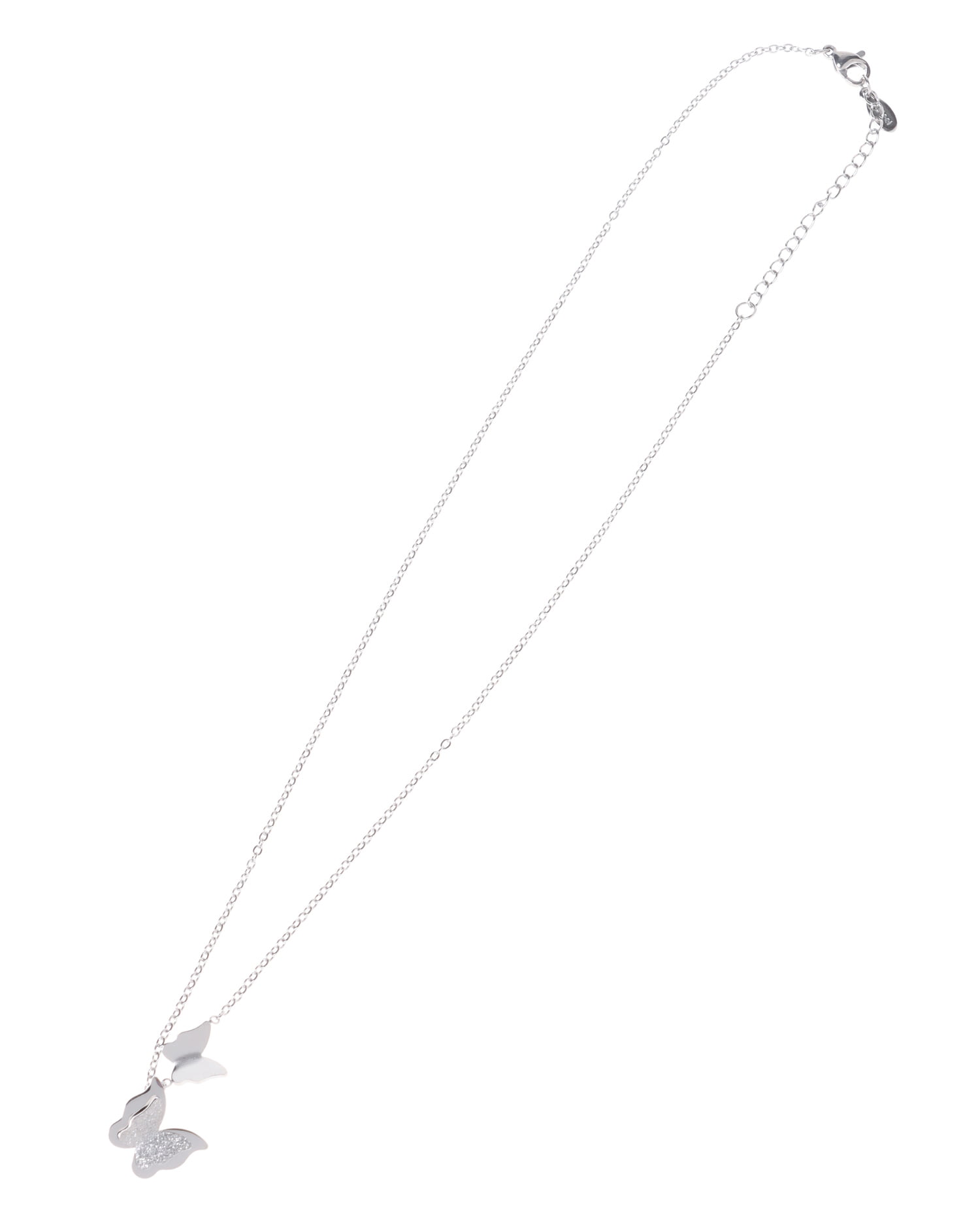 大きさの異なる2匹の蝶がコーディネイトのアクセントに。小振りなデザインでどんなスタイルにも合わせやすいネックレスです。細めのチェーンが華奢見えを叶えてくれるのも◎。ラメを散りばめた立体的デザインもポイントです。どんなスタイルにも合わせやすいのでデイリーに活躍。シンプルなTシャツなどにさらりと合わせた大人コーデもおすすめです。