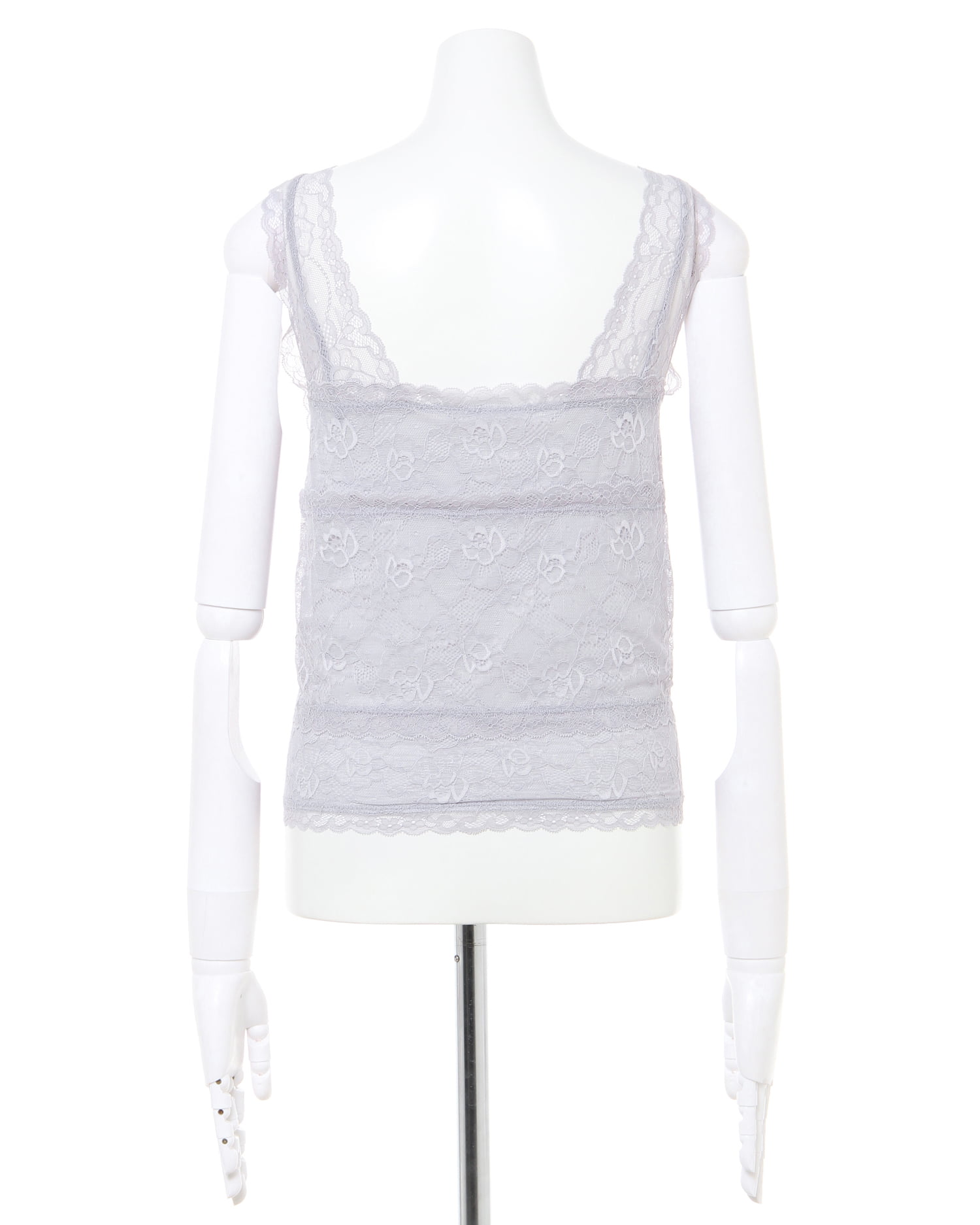 全体を繊細なフラワーレースで仕立てたエレガントなキャミソール。ジャケットやニットのインにも着回せるのでシーズン長く活躍します。ショルダー部分を太めにすることでずれにくく、フィット感良く着られるのも◎。バスト下には裏地を貼っているので1枚でも安心。ショルダー部分からほんのり透ける素肌とのコントラストを楽しめます。伸縮性のある生地で着心地も快適。ベーシックで合わせやすいカラーが揃っています。