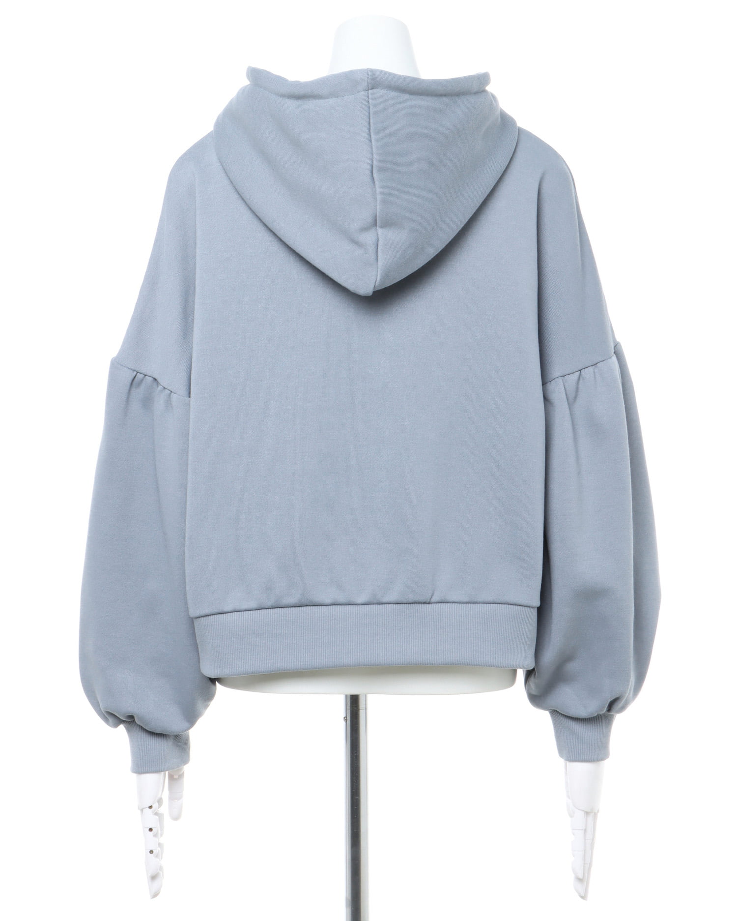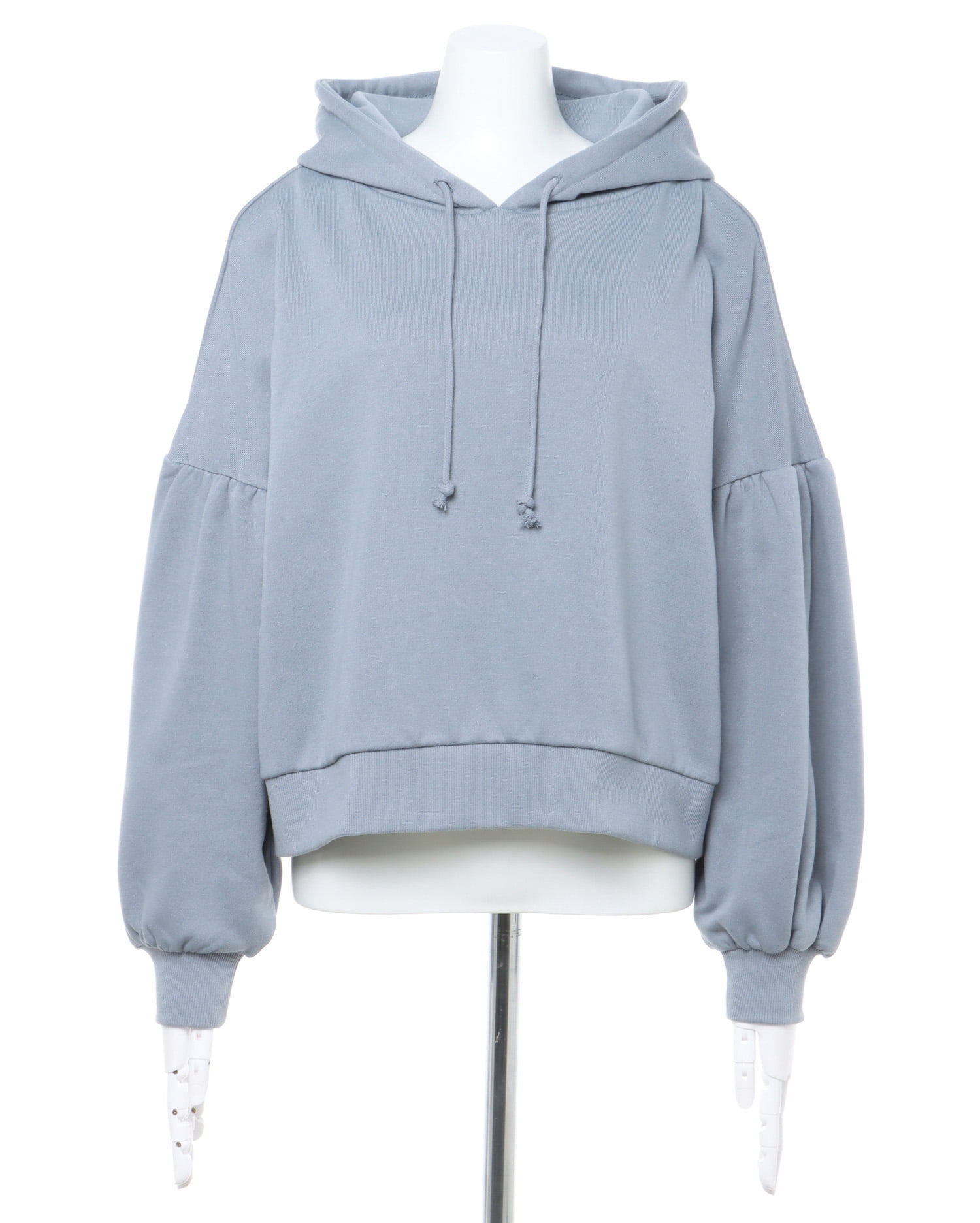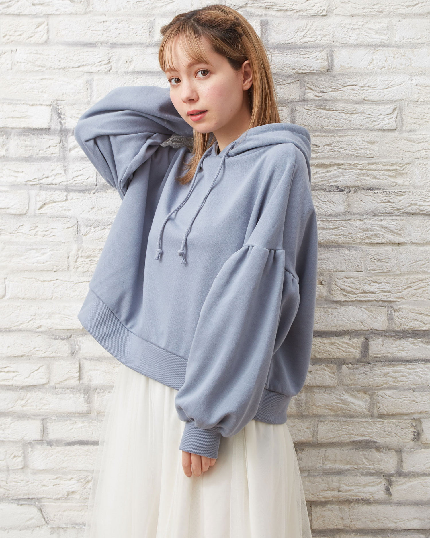 カジュアルなパーカーもふんわりスリーブとショート丈でトレンドライクに。ボディラインを拾わないゆったりとした身頃でリラックスした着心地を楽しめます。シンプルなワンカラーでどんなアイテムにも合わせやすいのが◎。1枚ではもちろん、インナーを合わせたレイヤードスタイルもおすすめです。ボリュームスカートと合わせてとことんガーリーに着こなして。