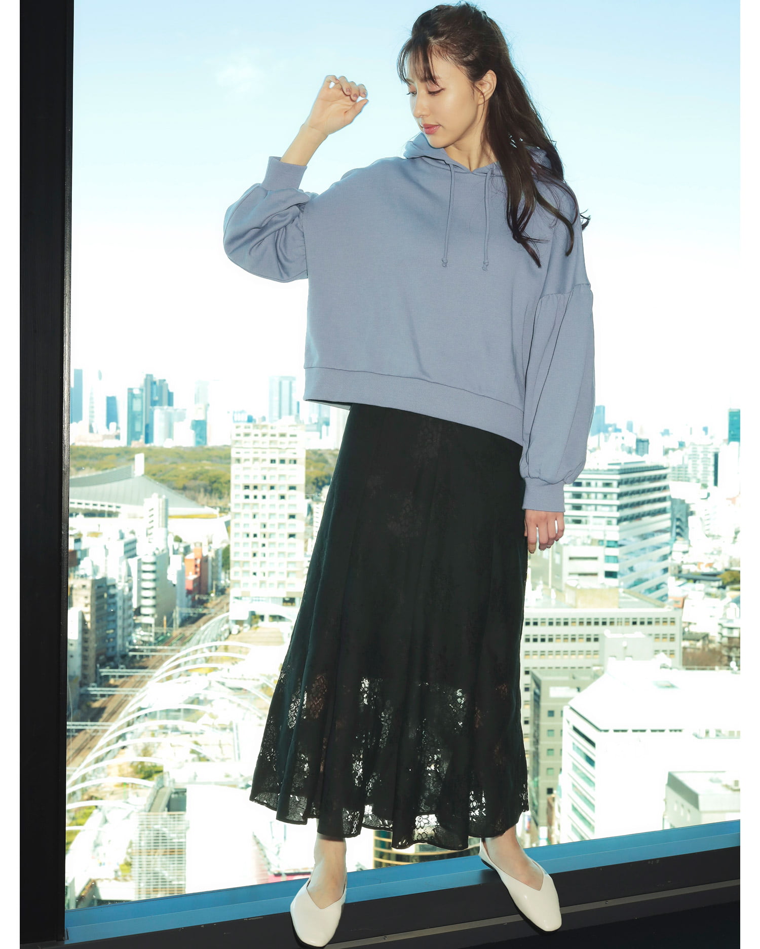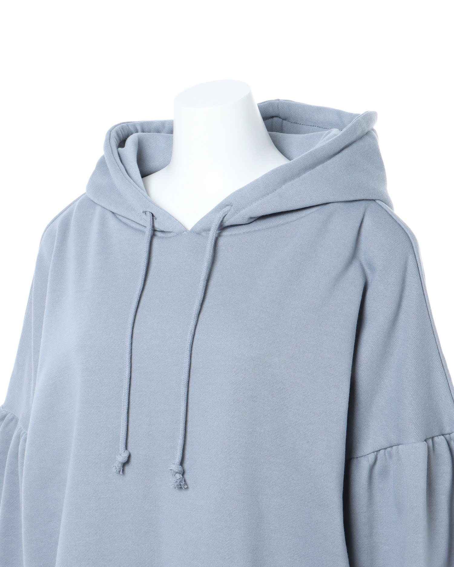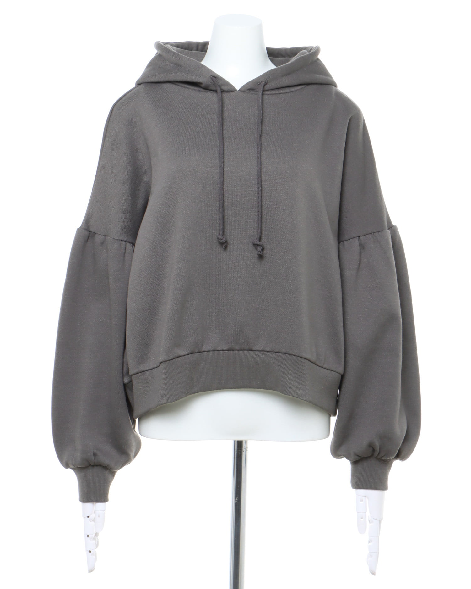 カジュアルなパーカーもふんわりスリーブとショート丈でトレンドライクに。ボディラインを拾わないゆったりとした身頃でリラックスした着心地を楽しめます。シンプルなワンカラーでどんなアイテムにも合わせやすいのが◎。1枚ではもちろん、インナーを合わせたレイヤードスタイルもおすすめです。ボリュームスカートと合わせてとことんガーリーに着こなして。