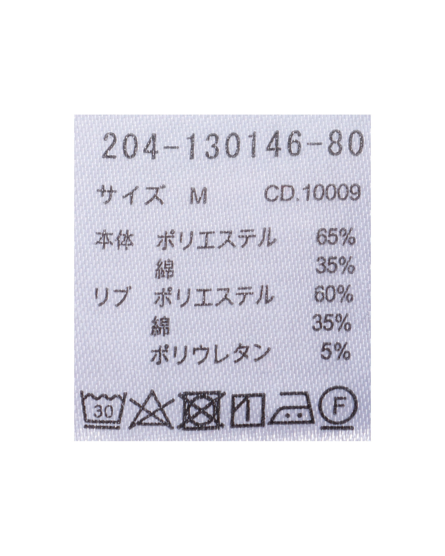 原産国 中国 本体 ポリエステル65% 本体 綿35% リブ ポリエステル60% リブ 綿35% リブ ポリウレタン5%