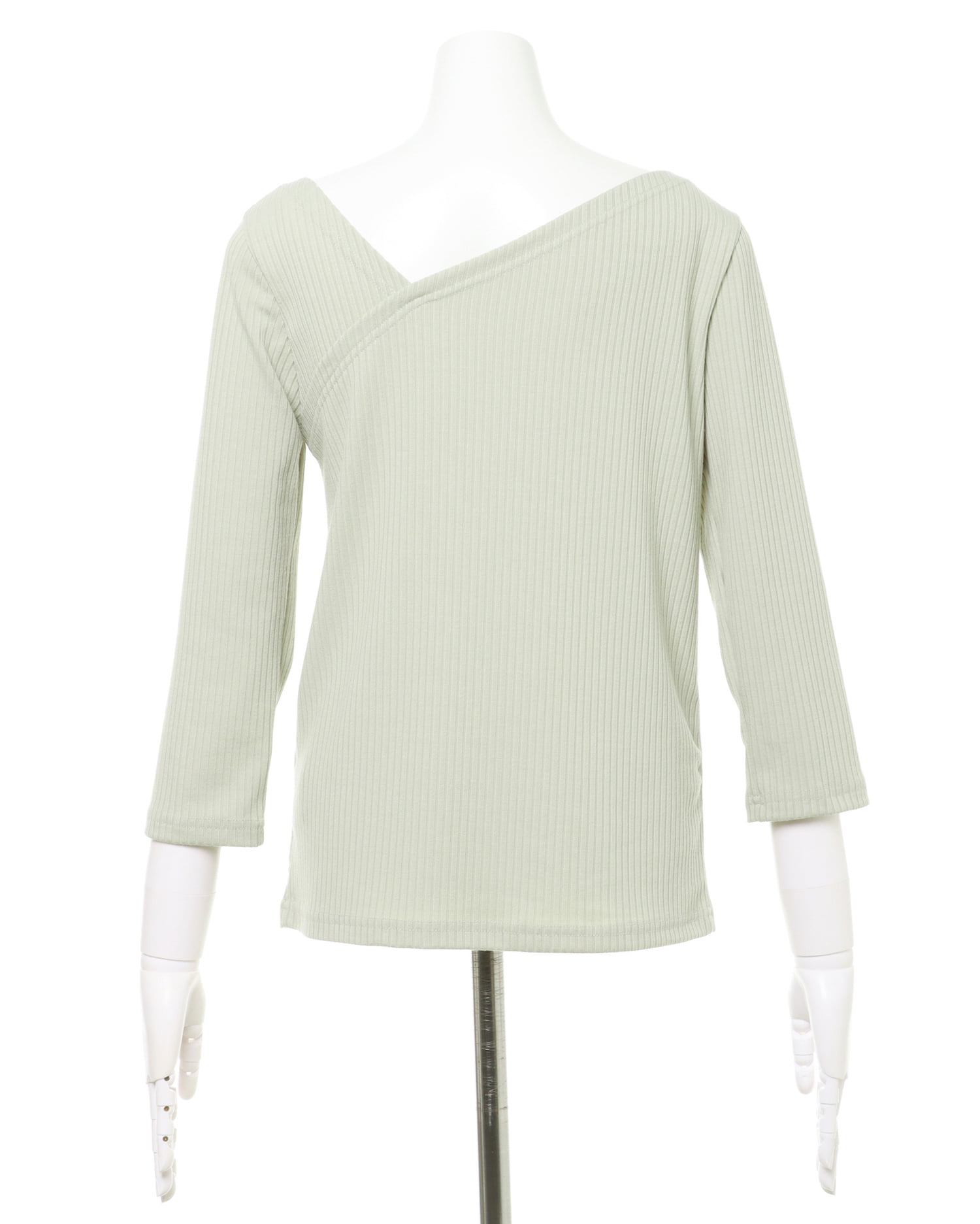 アシンメトリーのVネックがスタイリッシュなリブトップス。シンプルながらもデザイン性があるので1枚でも表情のある着こなしが完成します。デコルテラインをキレイに見せてくれるのもポイント。ボディラインに沿うコンパクトなシルエットでスタイルアップを狙えます。程よい裾丈はトップスインスタイルで着こなすのもおすすめ。ジャケットやブルゾンのインにもシーズン長く着回せます。