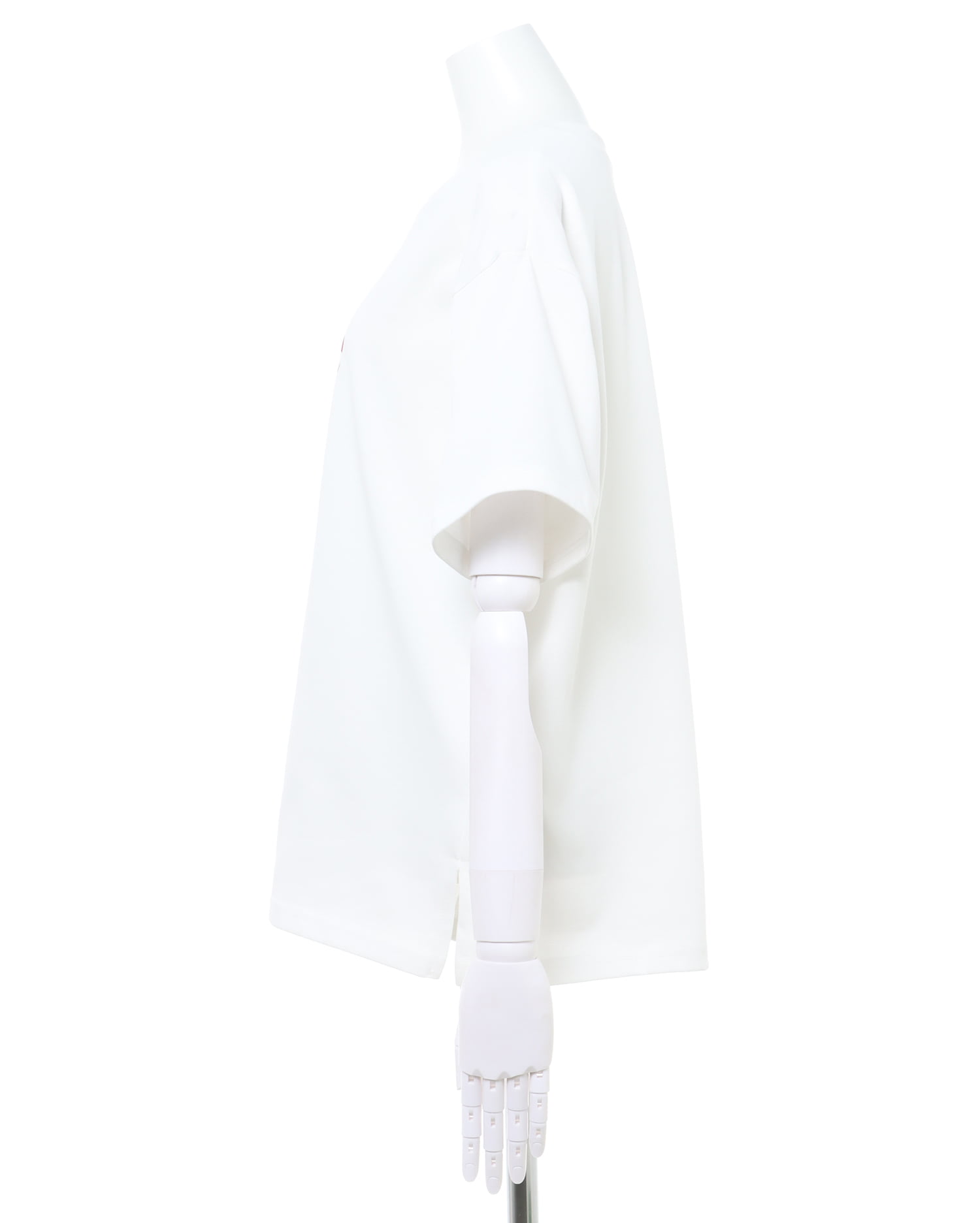 大人っぽく着られるシンプルTシャツはワードローブの必須アイテム。ゆったりめの身頃でラフな着こなしを楽しめます。フロントにあしらったフレンチテイストたっぷりのメッセージロゴがアクセントに。ベーシックなクルーネックでどんなスタイルにも合わせやすく普段使いに重宝すること間違いなしです。サイドにはスリットを入れているのですっきり見えも◎。