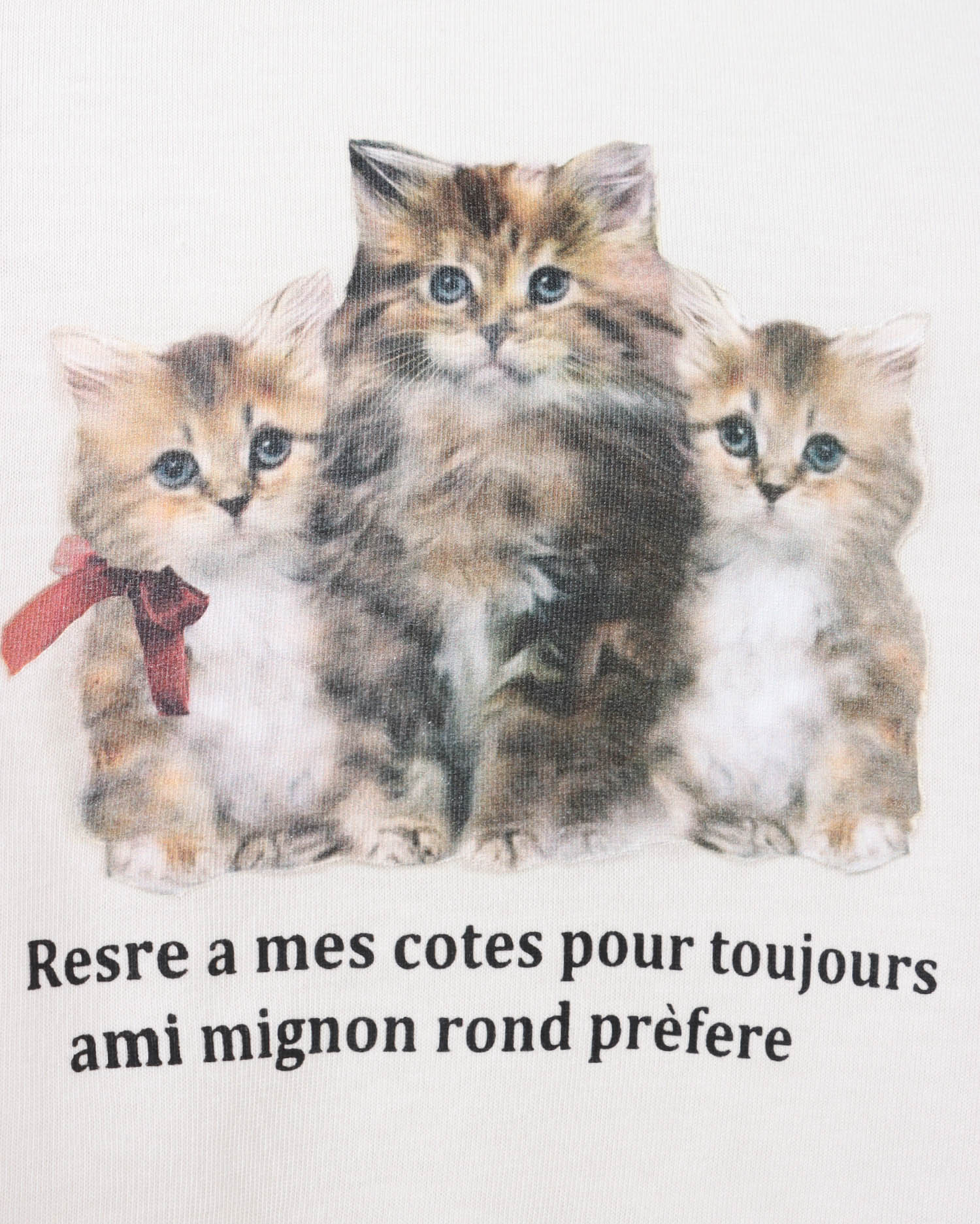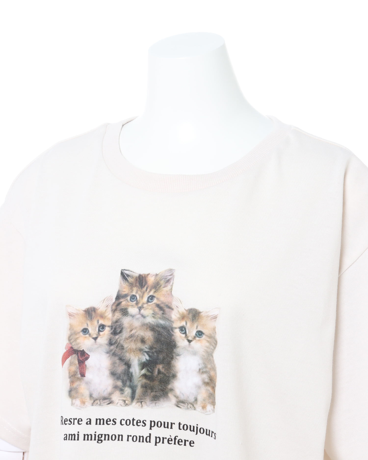 フロントのほっこりキュートな猫プリントが印象的なTシャツ。ベーシックなシルエットでどんなボトムスにも合わせやすいので普段使いにぴったりです。伸縮性のあるやわらかな生地で着心地も快適。フェミニンなスカートでとことんスウィートに着こなすのはもちろん、キレイめパンツで大人な着こなしも◎。ベーシックで合わせやすいカラーが揃っています。