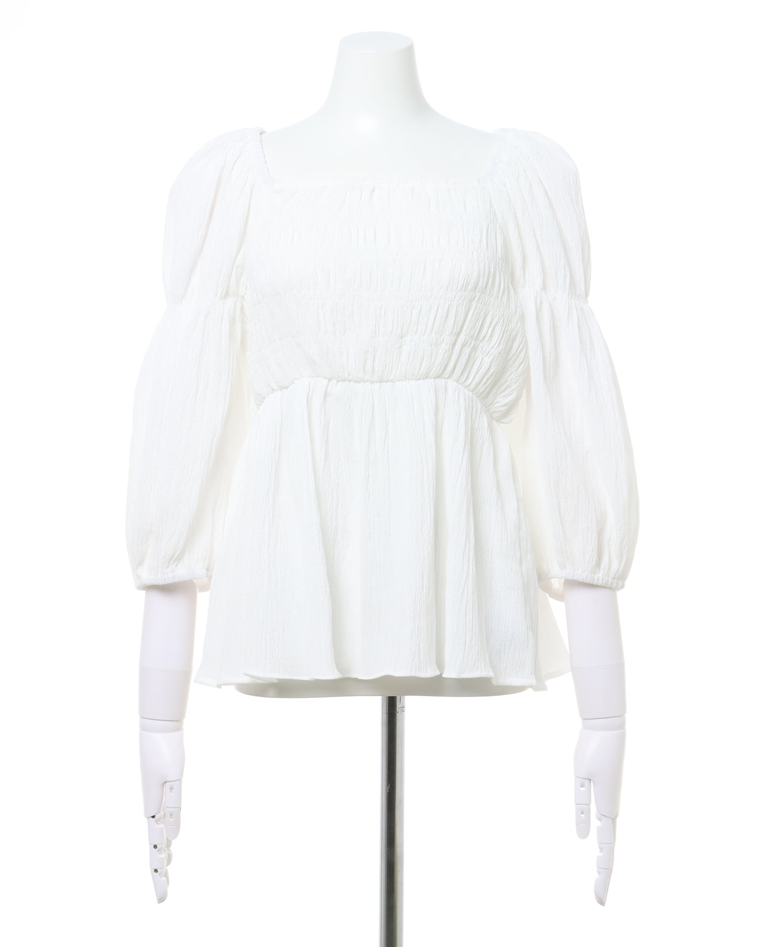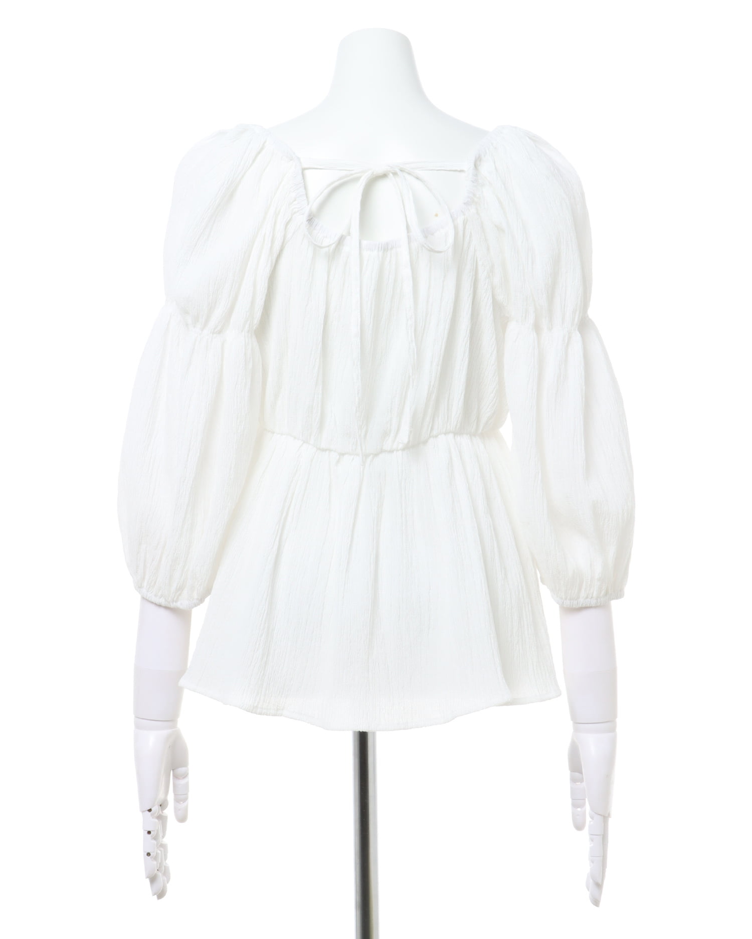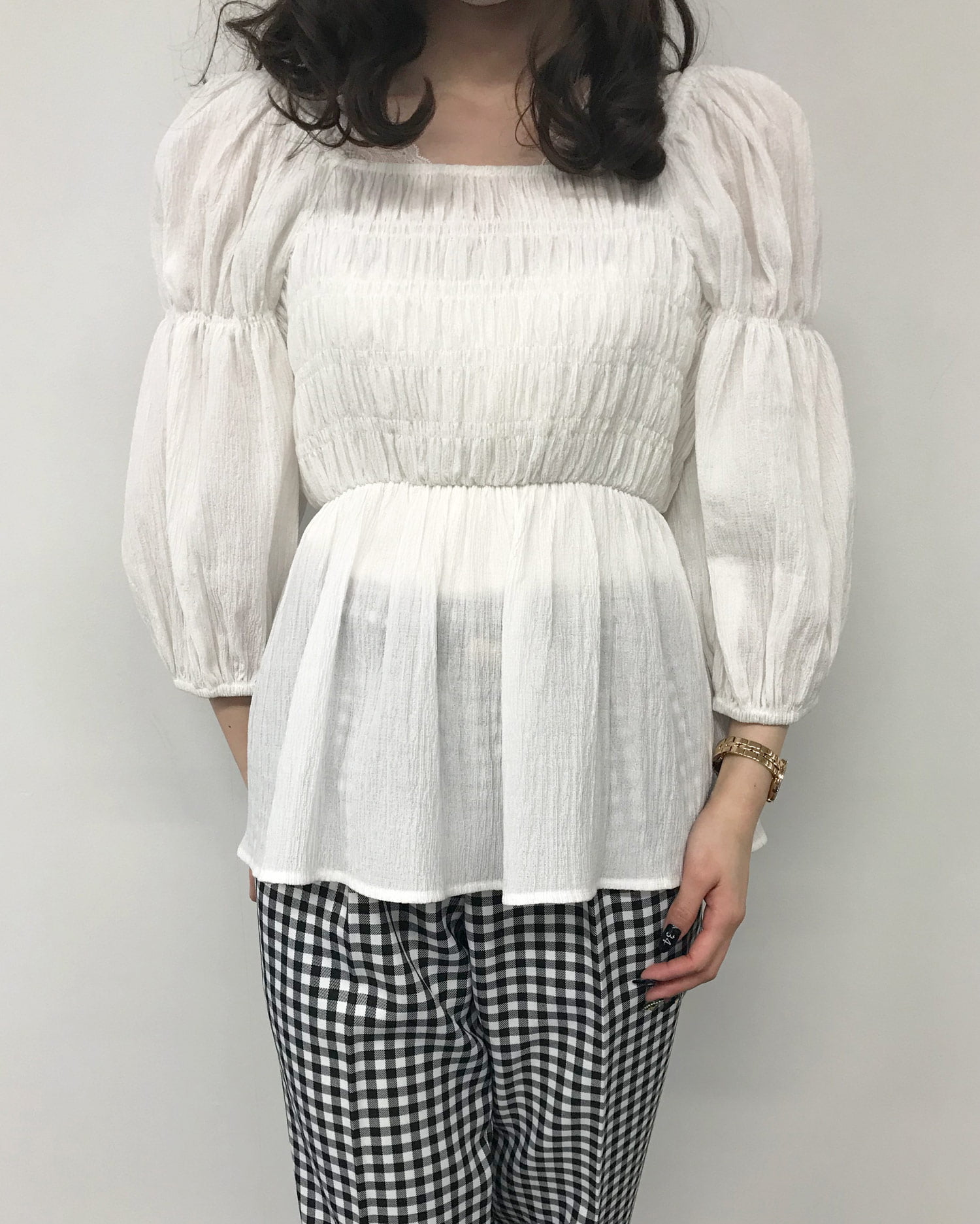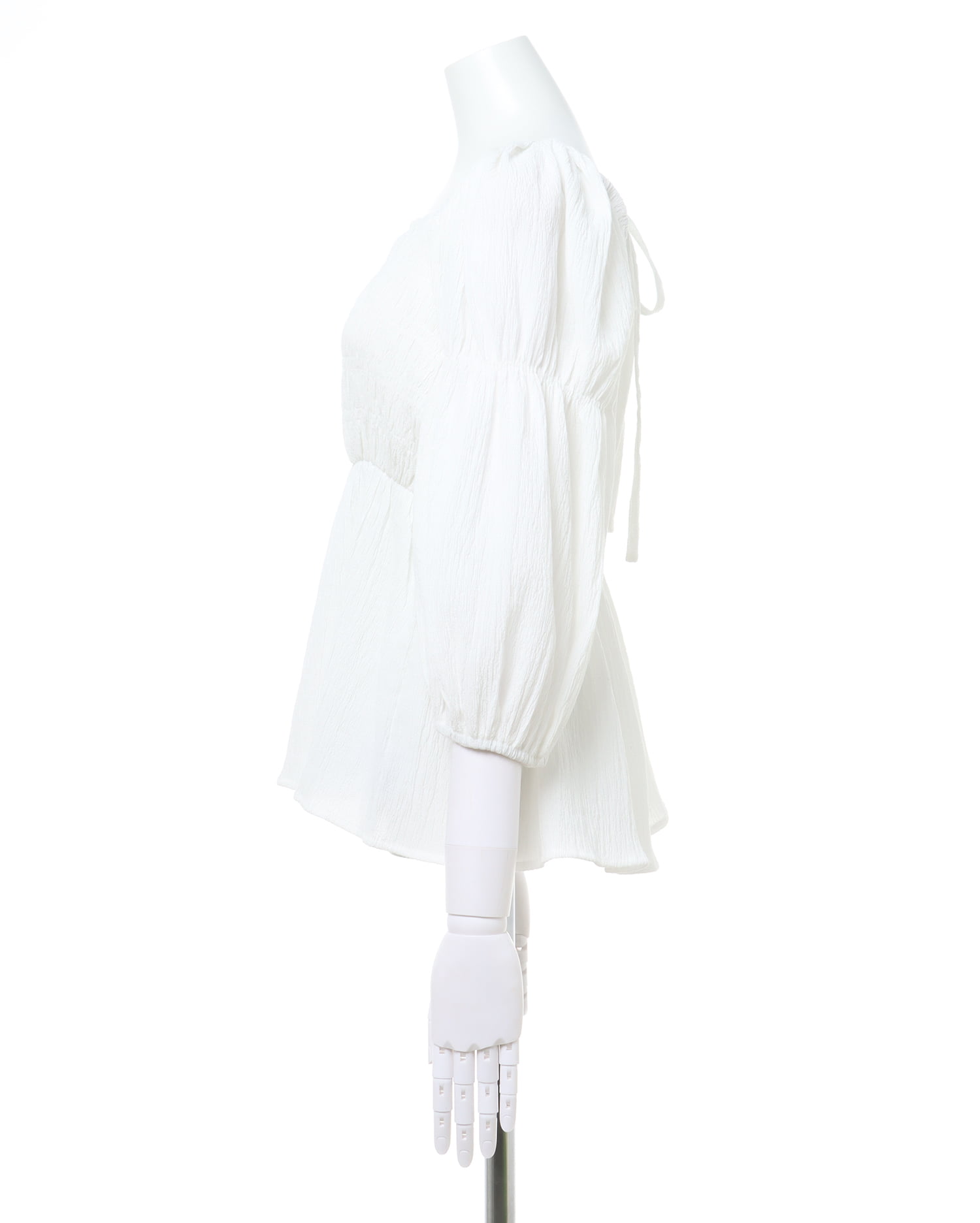 メリハリのある計算ずくのシルエットでスタイルアップも狙えるブラウスが登場。すっきり開いたネックラインにふんわりとしたボリュームスリーブ。バスト部分にはシャーリングを入れ、フィット感良く仕上げています。バスト下にはゴムを入れ、裾へ向かって広がるシルエットで気になる腰回りもカバー。表面感のあるさらりとした素材で仕立てているので着心地も快適です。