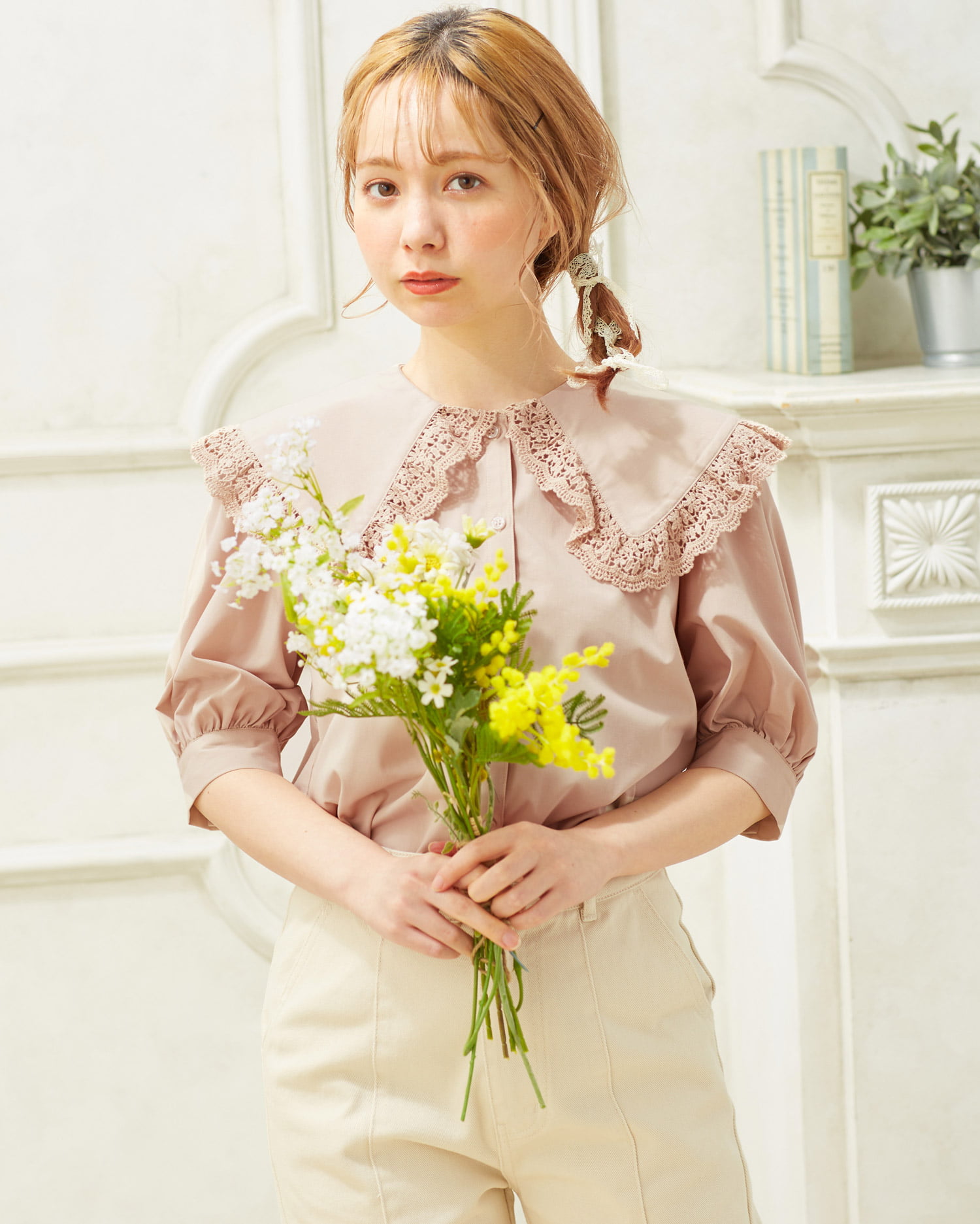 大きなフリル襟がキュート&ガーリーなブラウス。ハリ感のある生地で仕立てているのでキレイなシルエットで着られます。きちんとした印象のアイテムなので普段使いはもちろん、お出かけシーンにも◎。ふんわりとしたスリーブもポイントです。スカートを合わせてスウィートコーデを楽しんだり、キレイめパンツを合わせたスタイルもおすすめ。