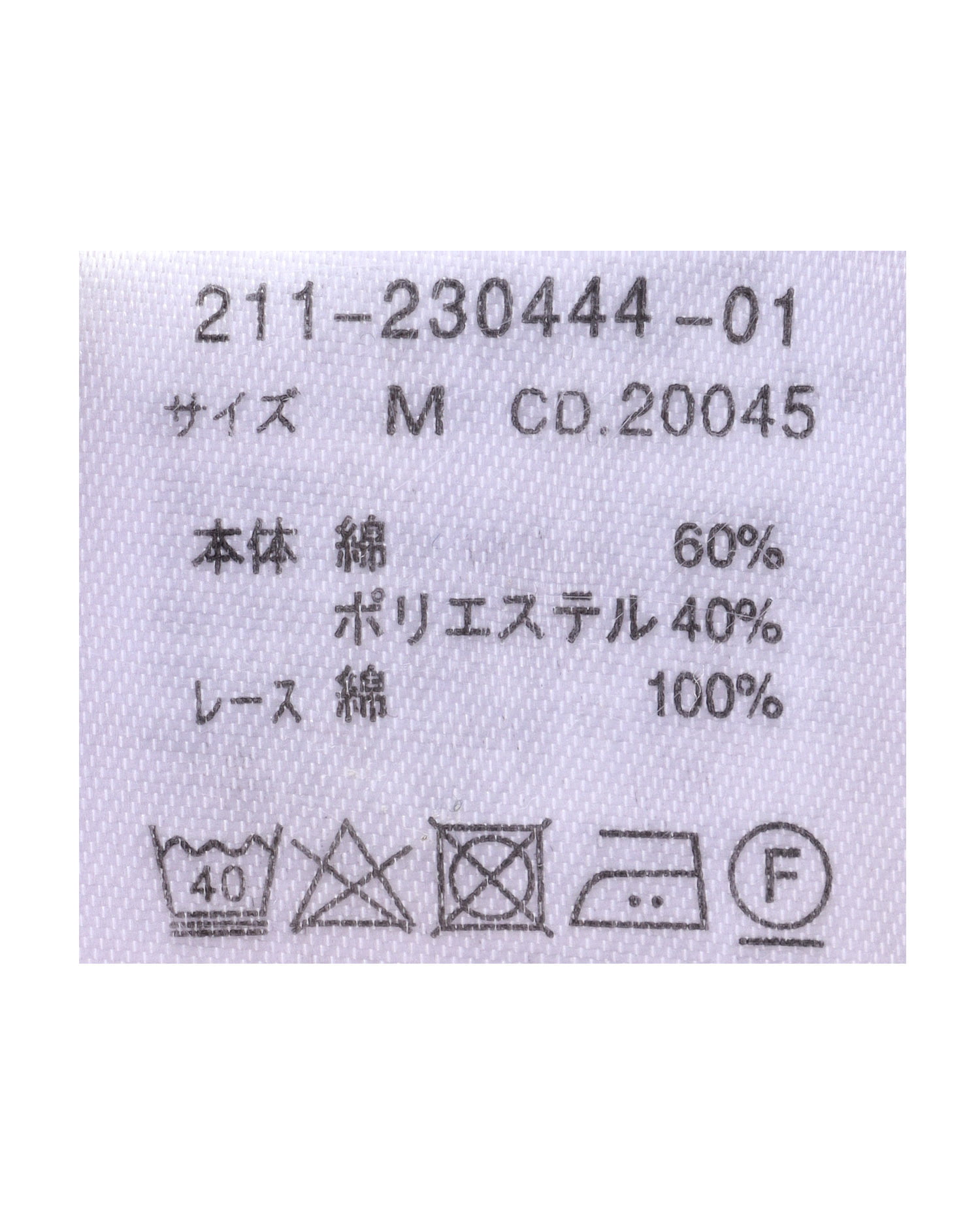 原産国 中国A 本体 綿60% 本体 ポリエステル40% レース 綿100%