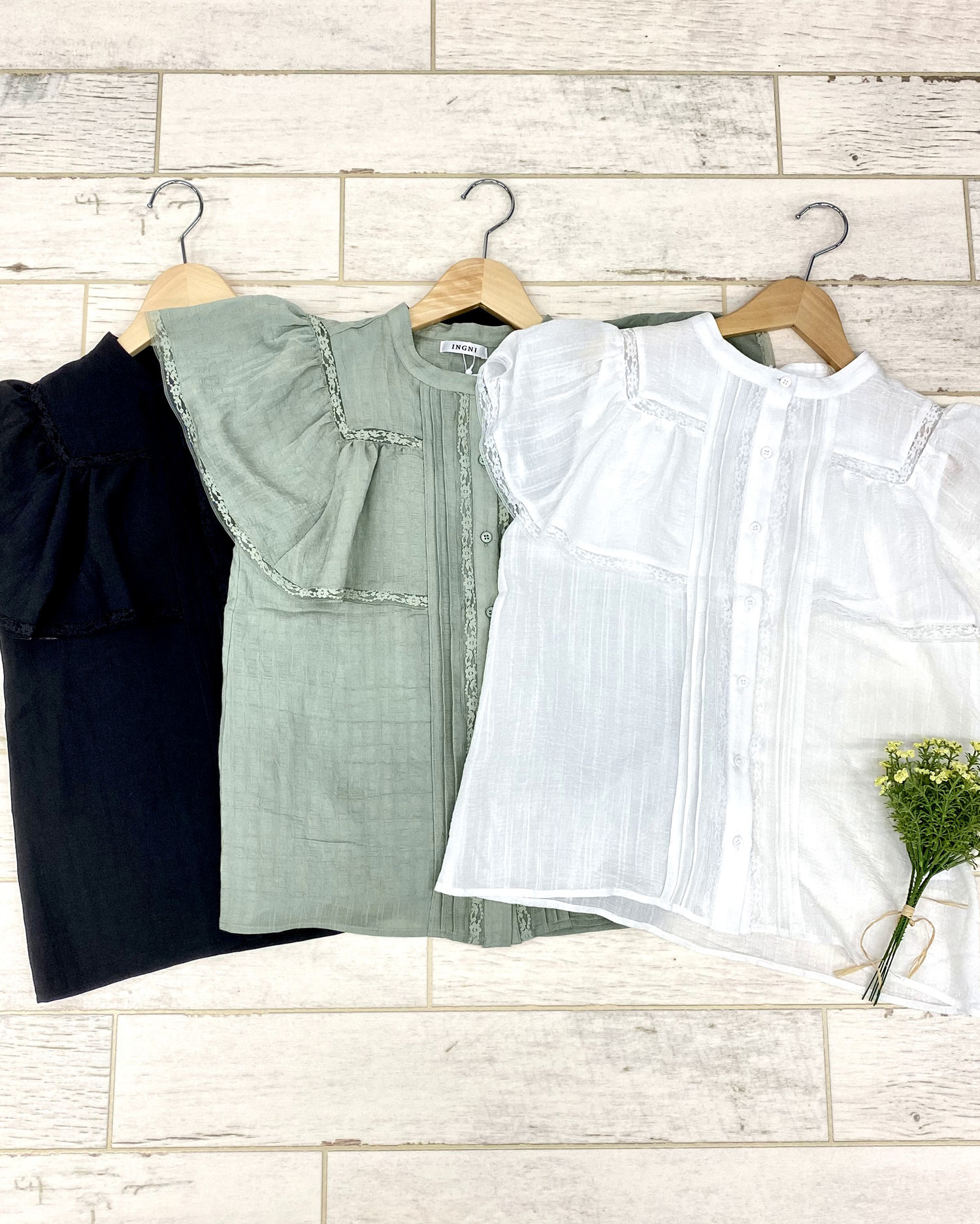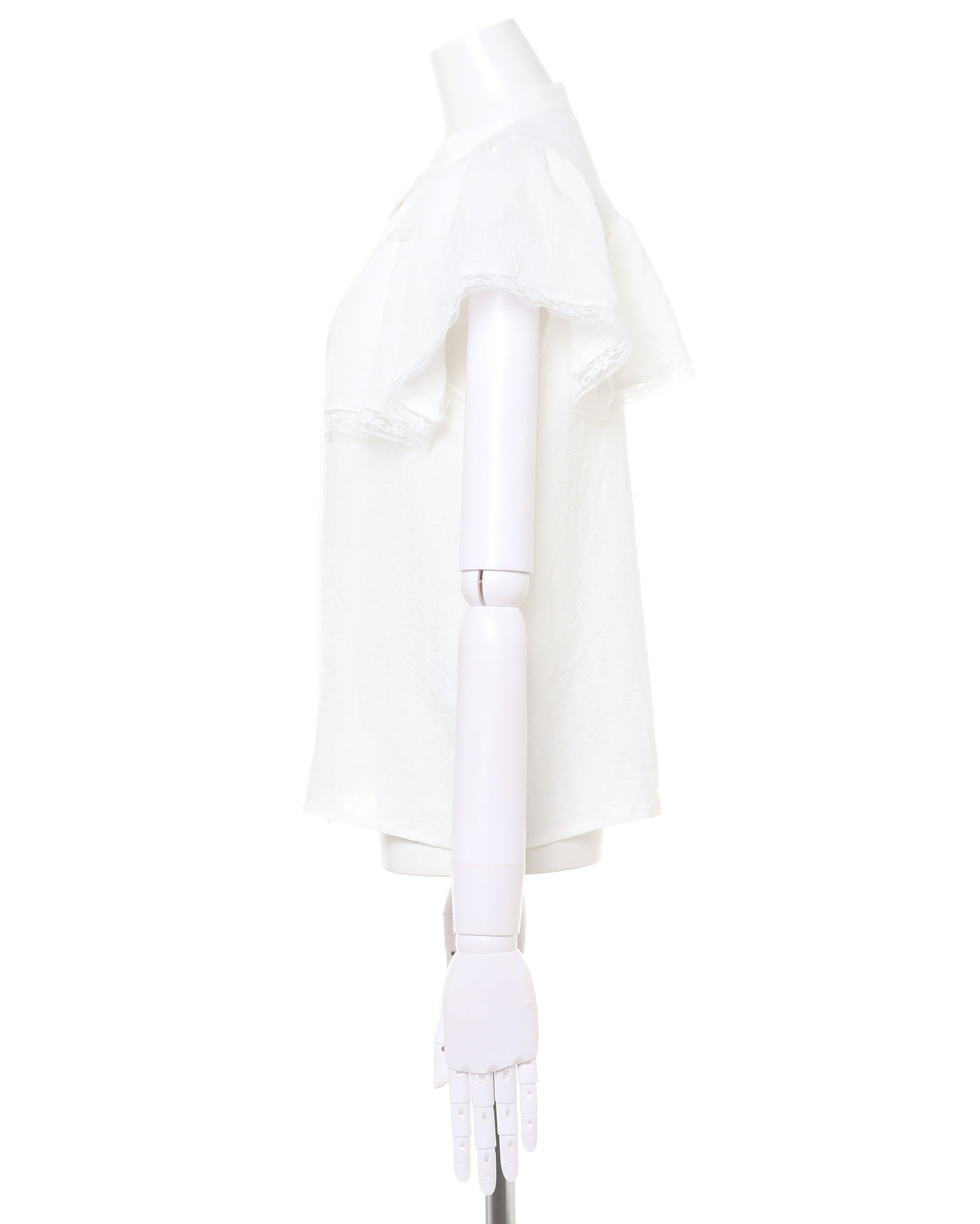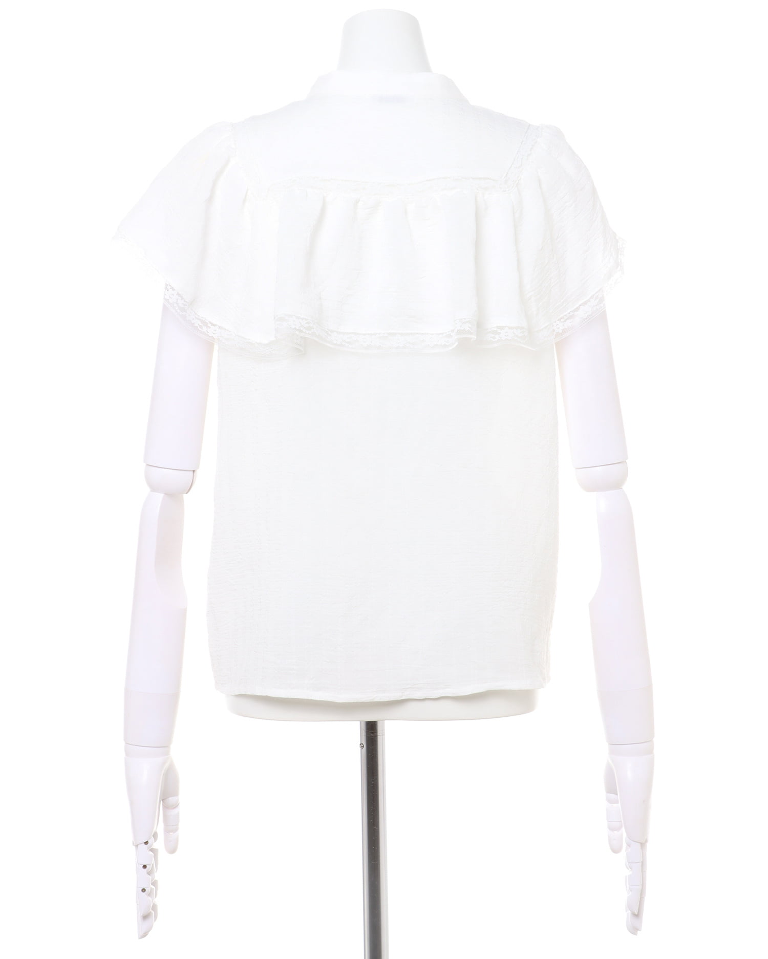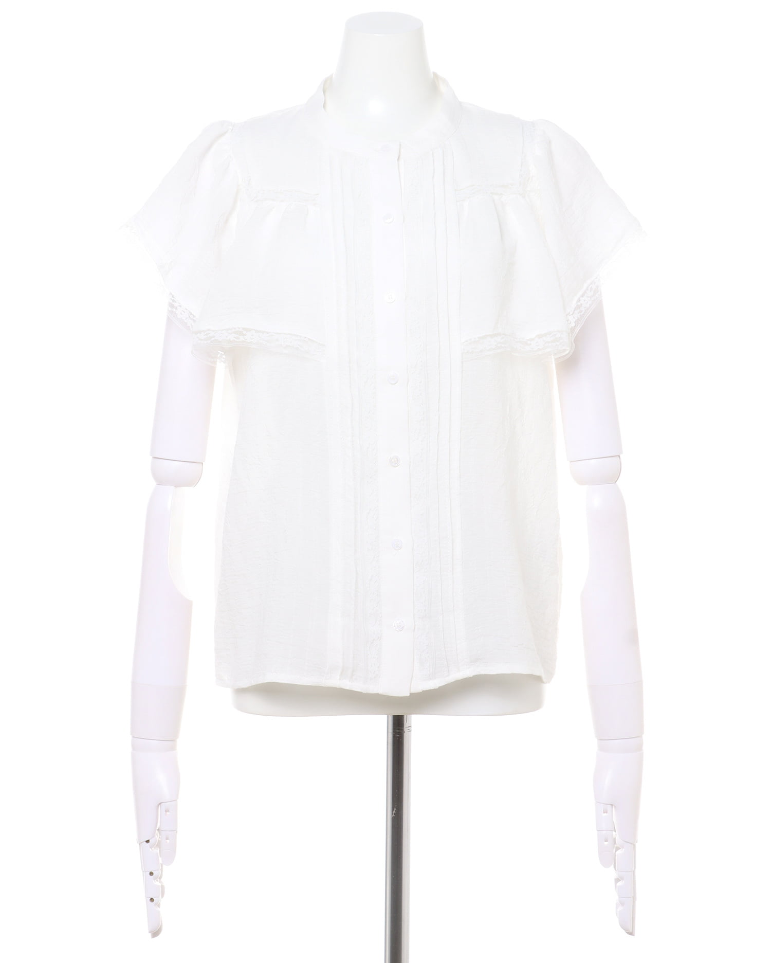 大きなフリルとレースの組み合わせがエレガントなブラウス。表面感のあるやわらかな薄手の素材で季節感たっぷりのコーディネイトが完成します。すっきりとしたタンクトップベースに大きなフリルをON。気になる二の腕をカバーしてくれるのもポイントです。ピンタックデザインで上品な雰囲気に仕上げているので普段使いはもちろん、お出かけシーンにもおすすめ。