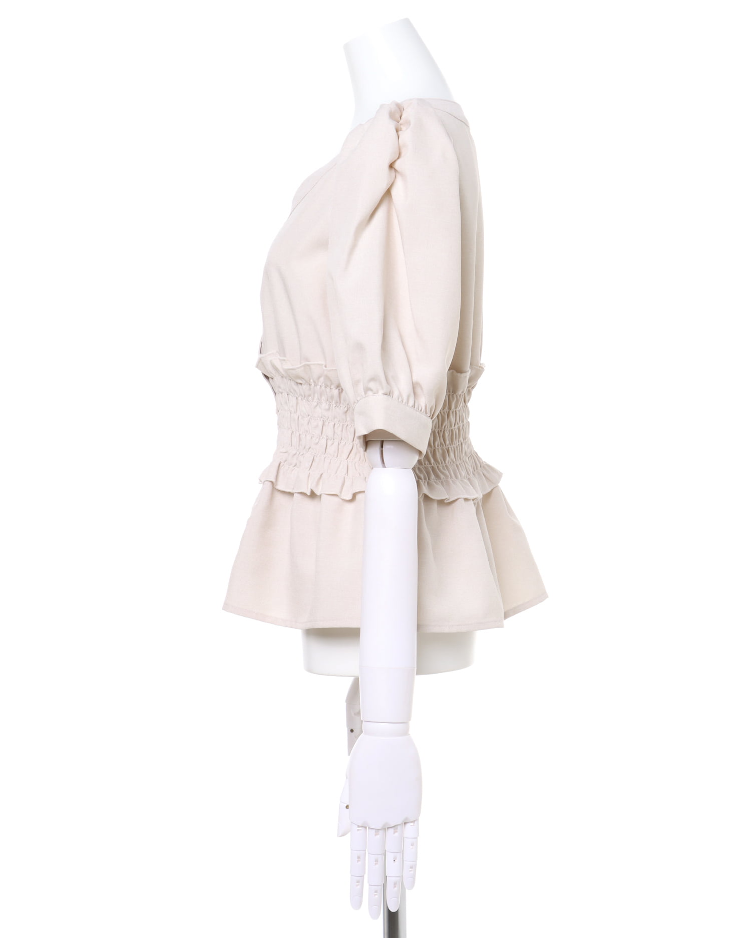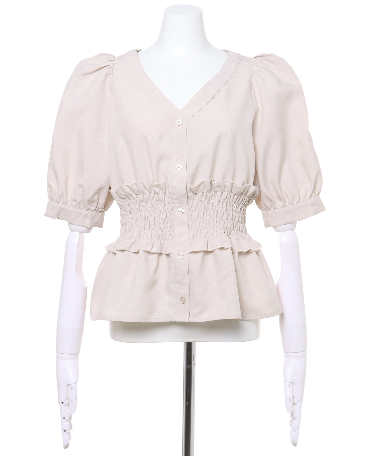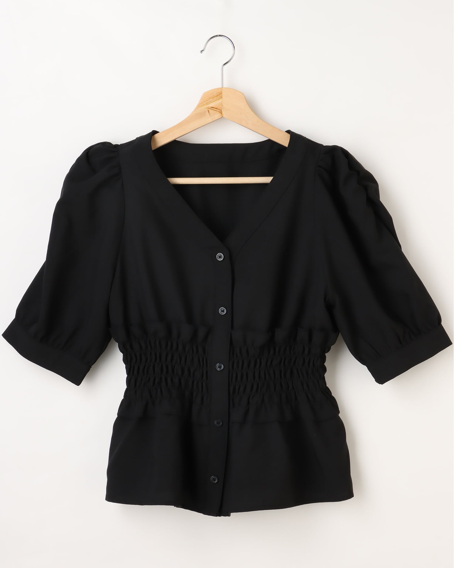 メリハリシルエットでスタイルアップを狙えるブラウスが登場。広めに開いたネックラインが顔周りを明るく見せてくれます。高めのウエスト部分にあしらったシャーリングがアクセントに。上品なアイテムなので普段使いはもちろん、オフィスシーンにもおすすめです。ハリ感のあるさらりとした素材で仕立てているので大人っぽく着られるのも◎。