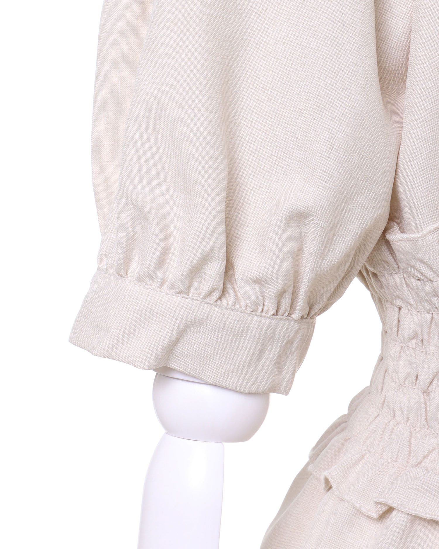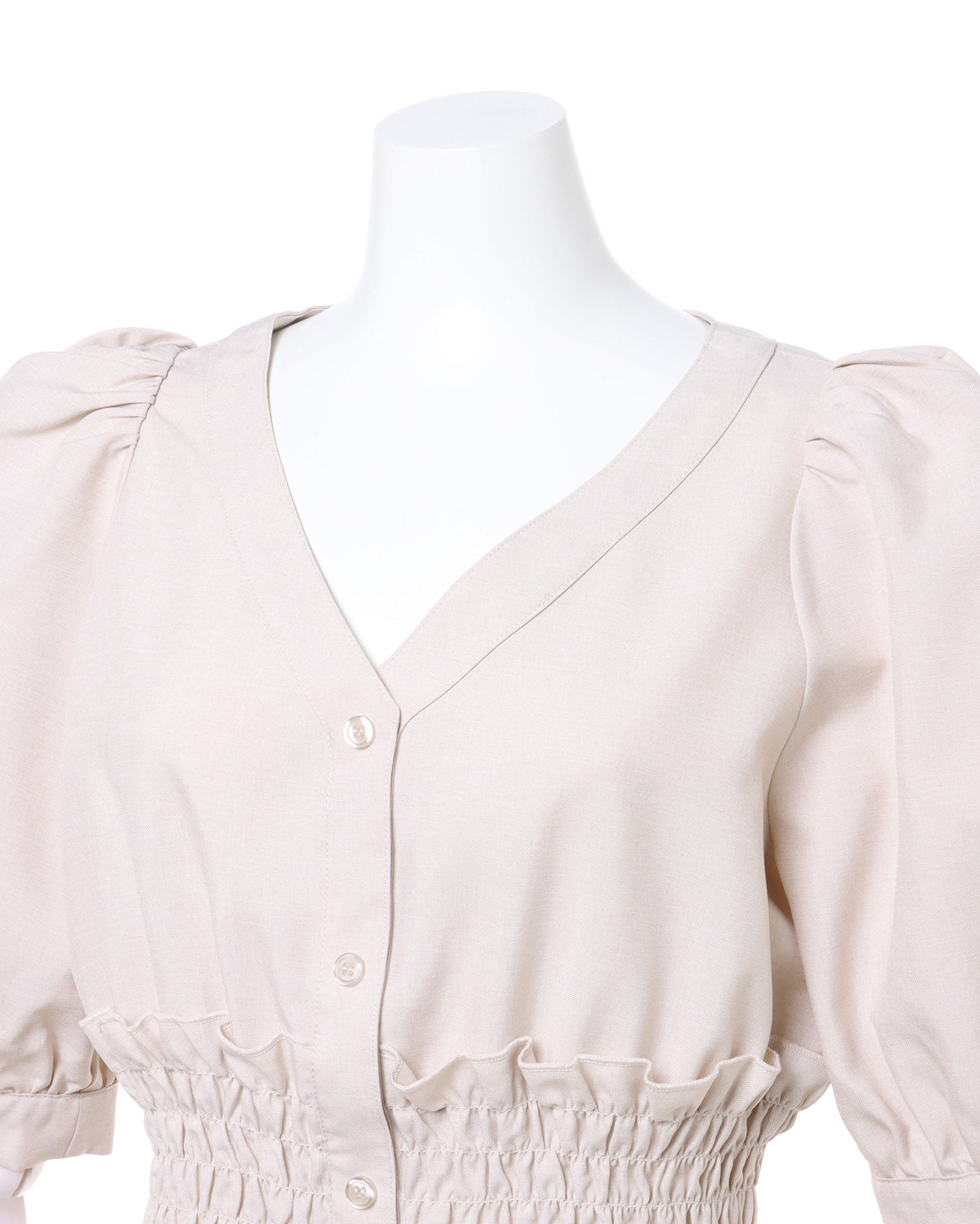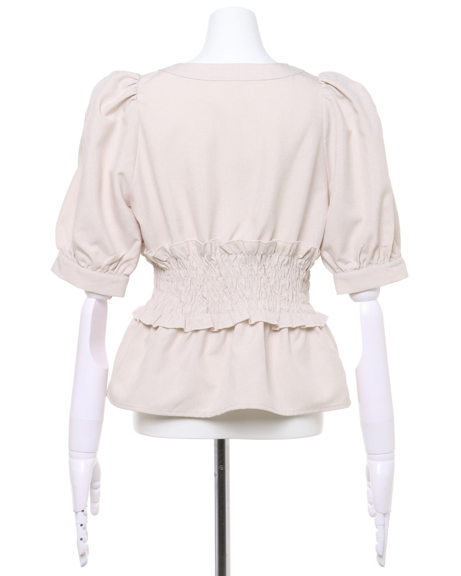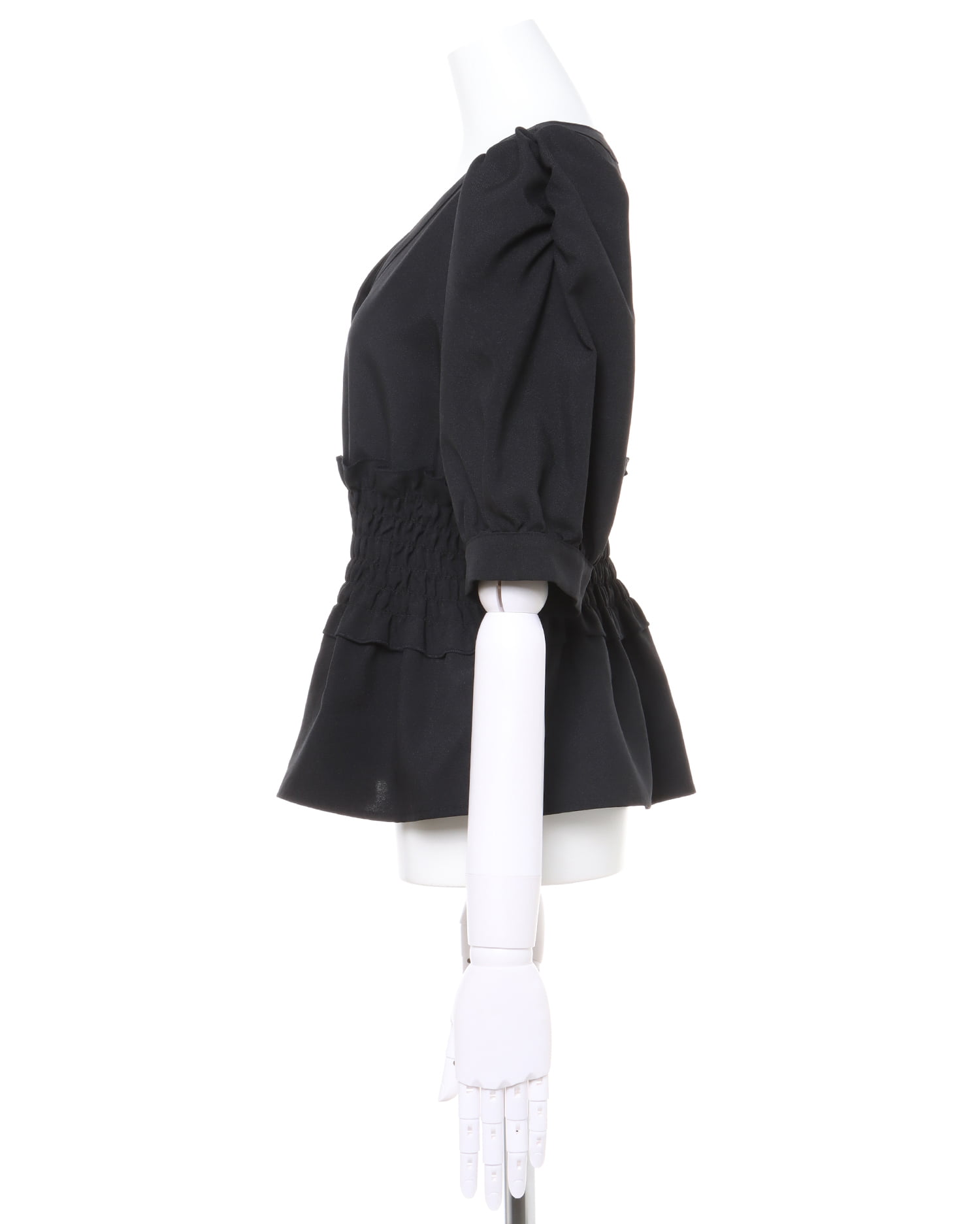 メリハリシルエットでスタイルアップを狙えるブラウスが登場。広めに開いたネックラインが顔周りを明るく見せてくれます。高めのウエスト部分にあしらったシャーリングがアクセントに。上品なアイテムなので普段使いはもちろん、オフィスシーンにもおすすめです。ハリ感のあるさらりとした素材で仕立てているので大人っぽく着られるのも◎。