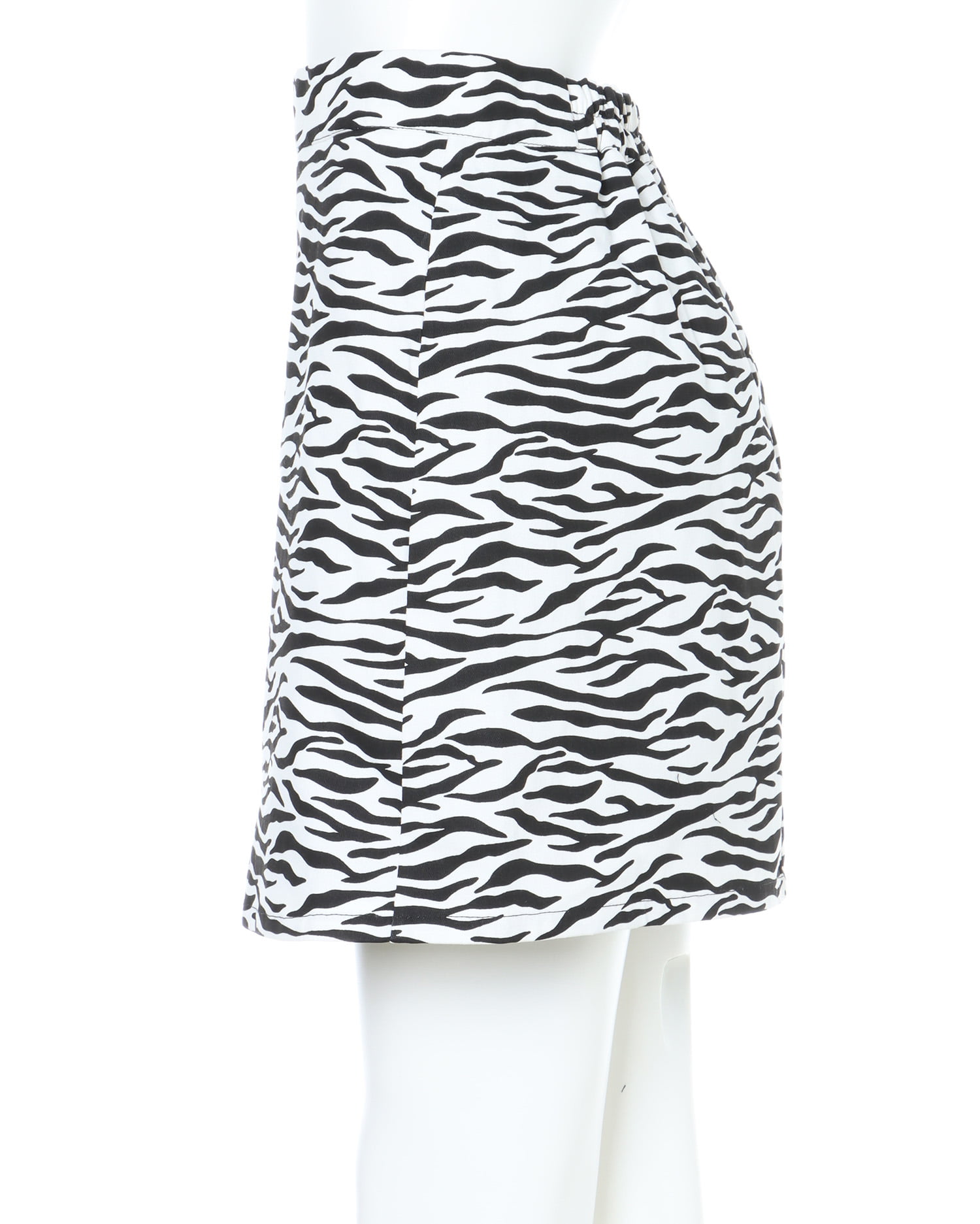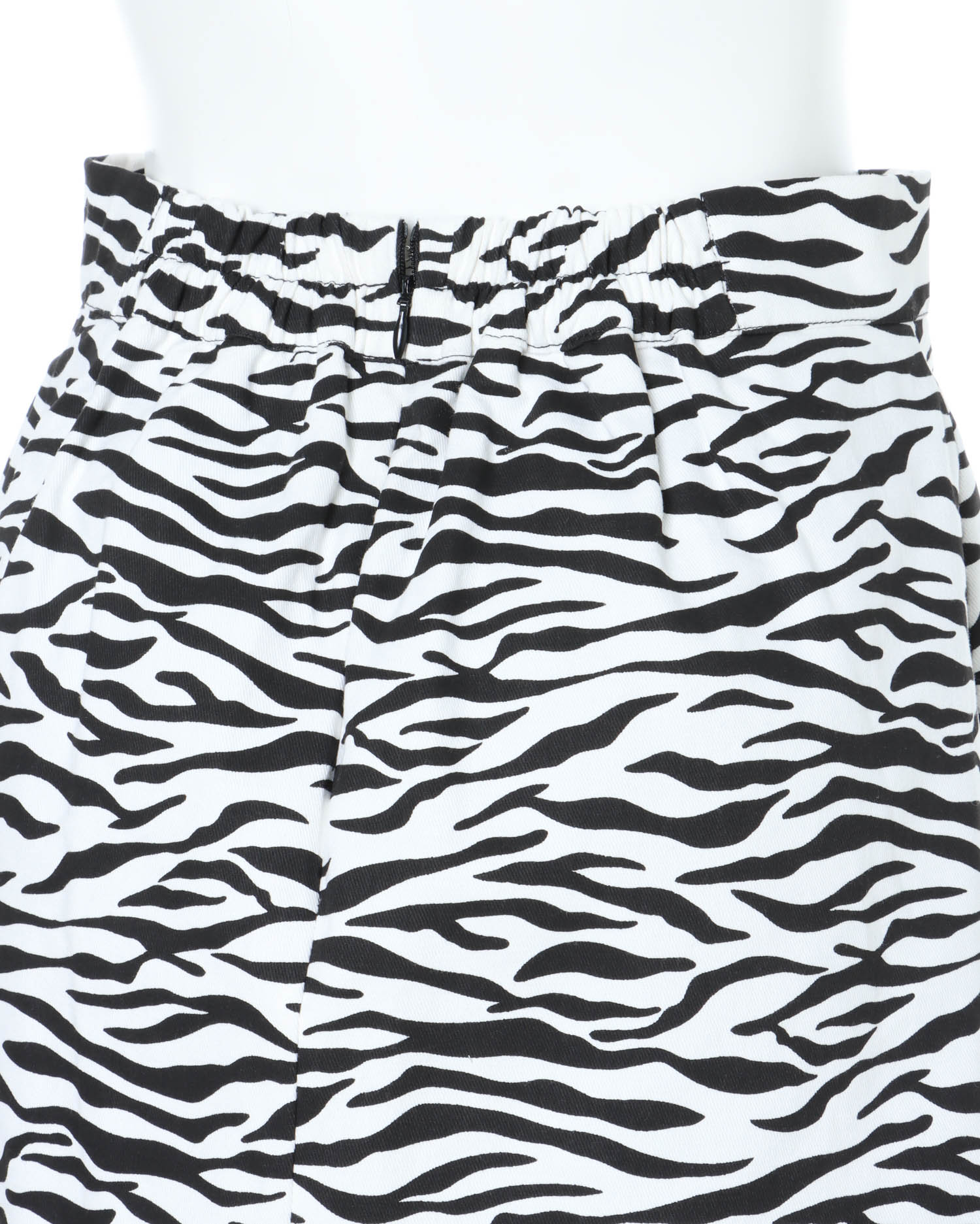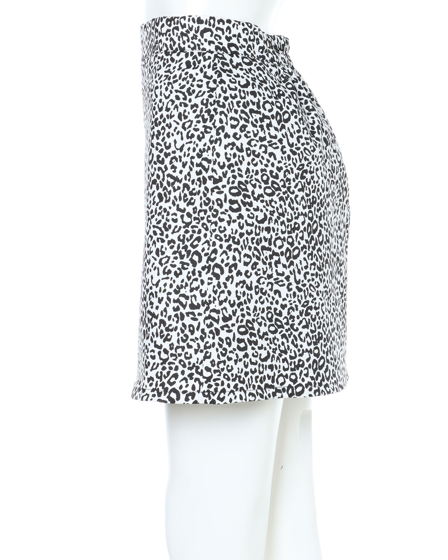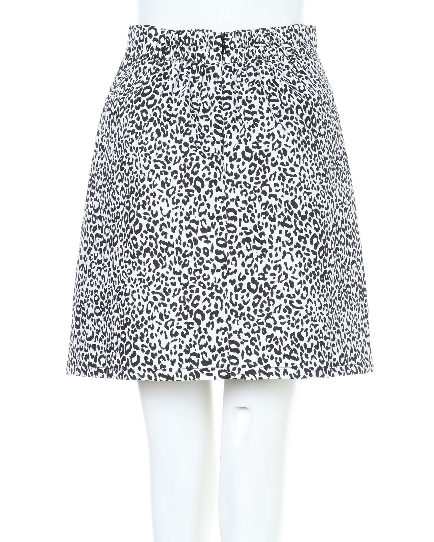 コーディネイトの主役にぴったりなアニマル柄のミニスカート。裾へ向かってほんのり広がる台形シルエットで美脚効果も抜群です。ハリ感のある生地がキレイなシルエットをキープ。バックウエストはゴムになっているので穿き心地も快適です。インパクトのあるアイテムなのでトップスはシンプルにまとめるのがおすすめ。