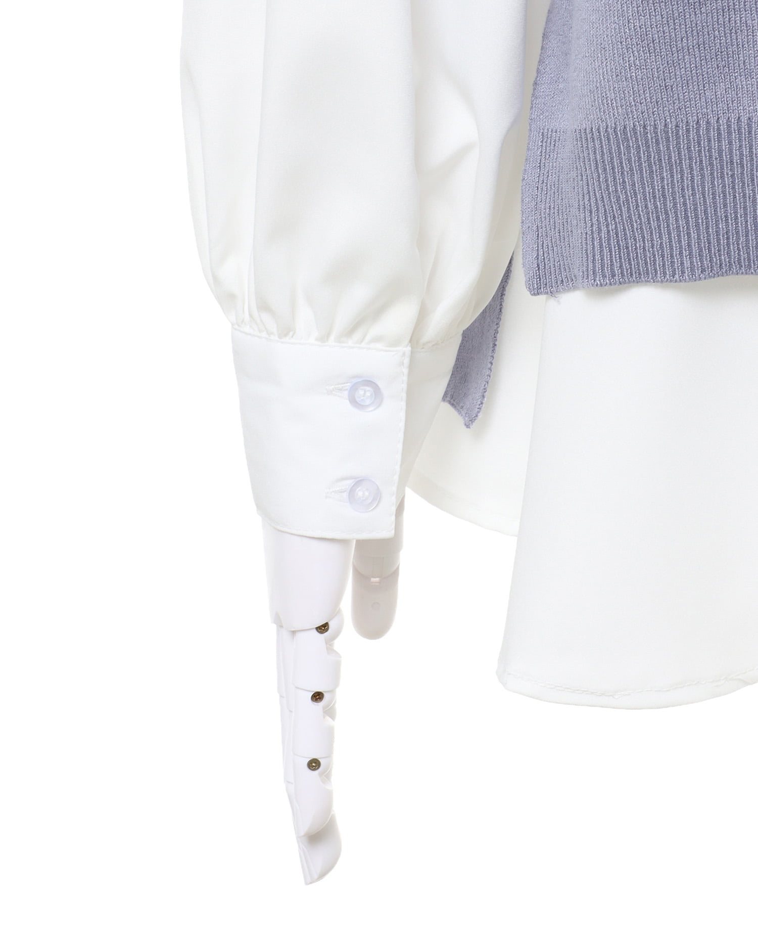 好バランスのレイヤードスタイルが完成するニットベストとブラウスのセット。薄手のニットでシーズン長く着回せるベストはサイドのスリットとベルトデザインがスタイリッシュ。長めの裾丈とすとんとしたシルエットで体型カバーも狙えます。裾部分を切り替えフリルをあしらったブラウスはキュートな雰囲気。ベーシックで合わせやすいカラーが揃っています。