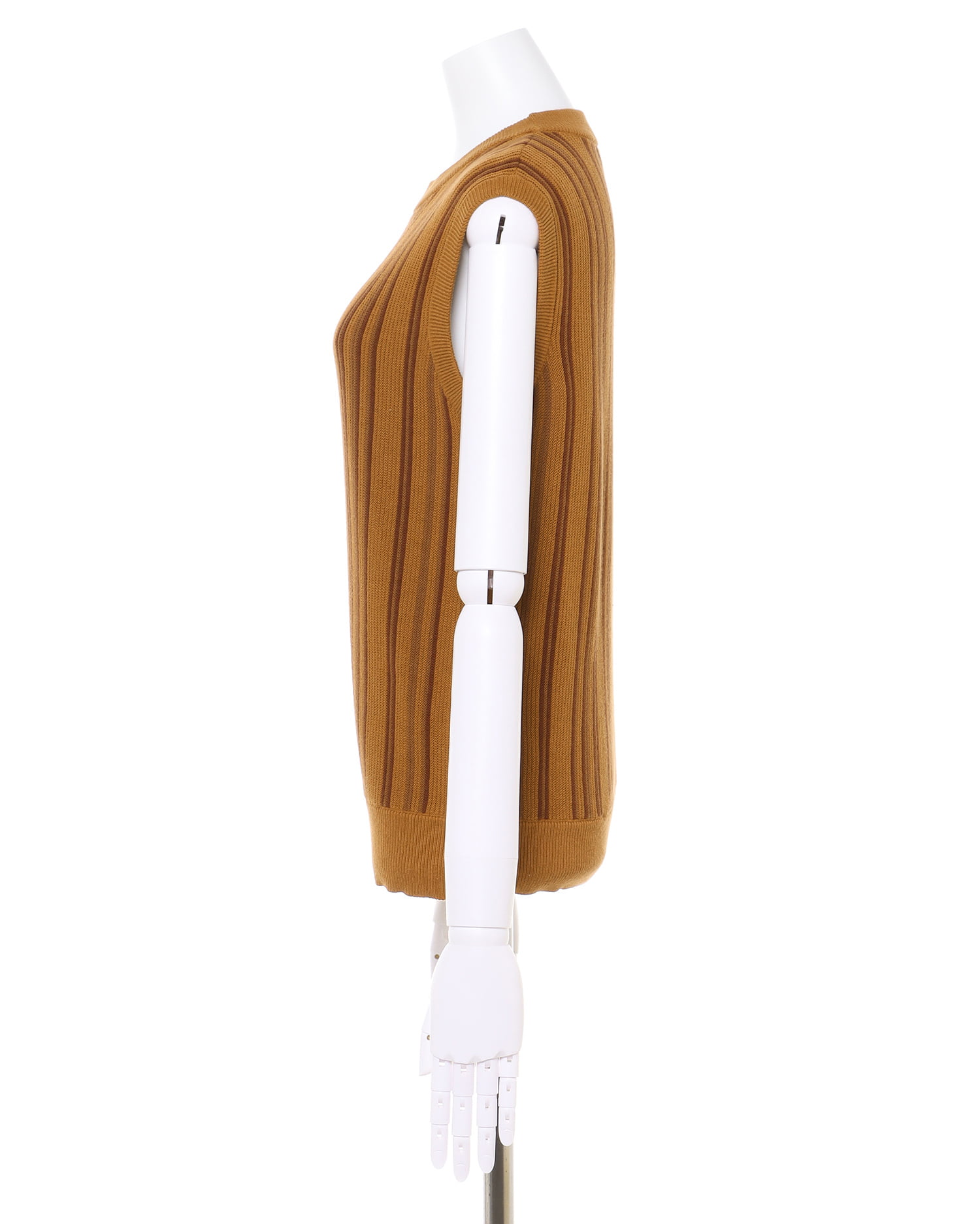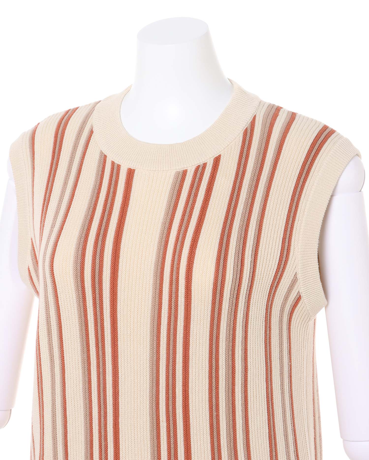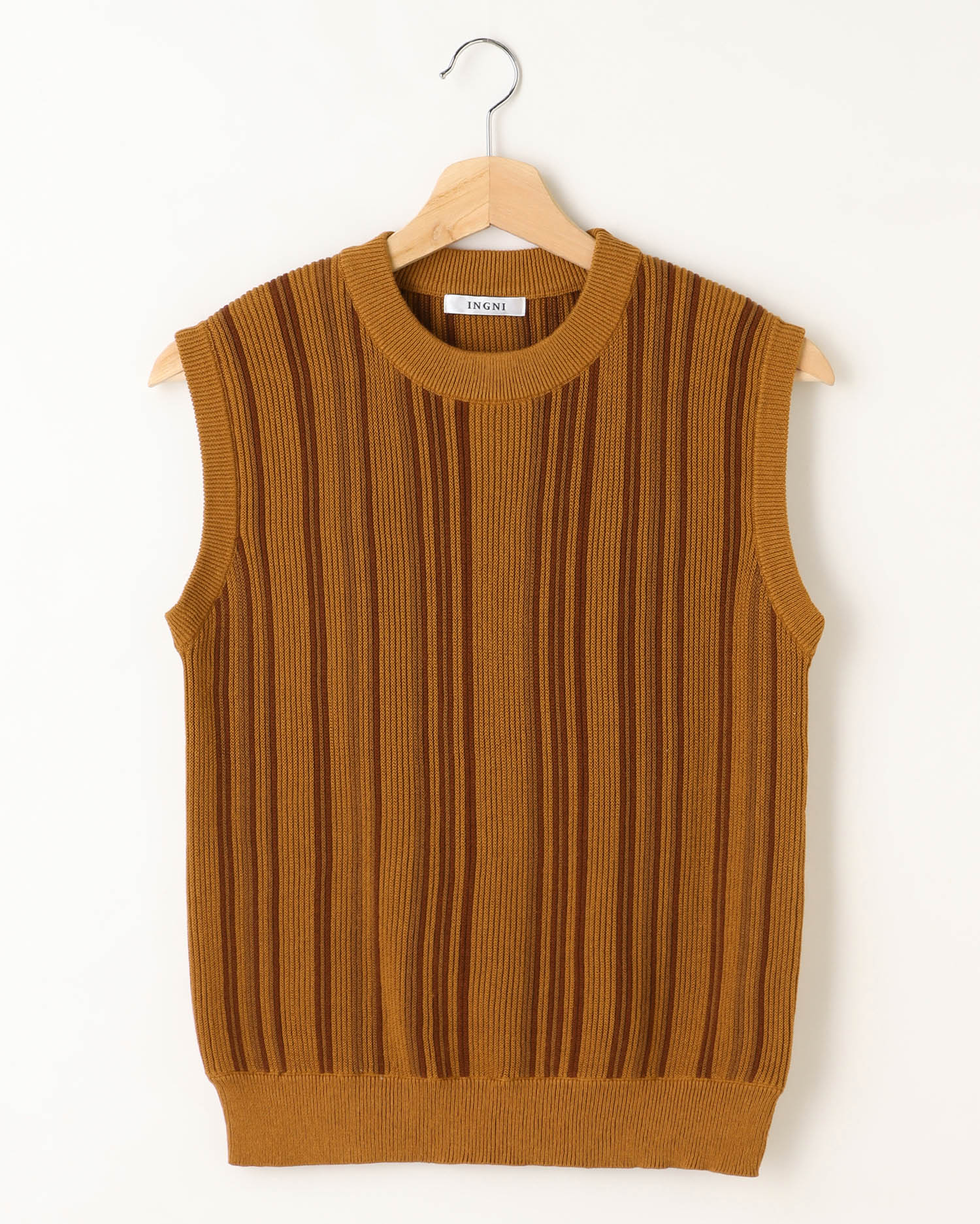 ノースリーブデザインでTシャツなどとのレイヤードスタイルも楽しめます。