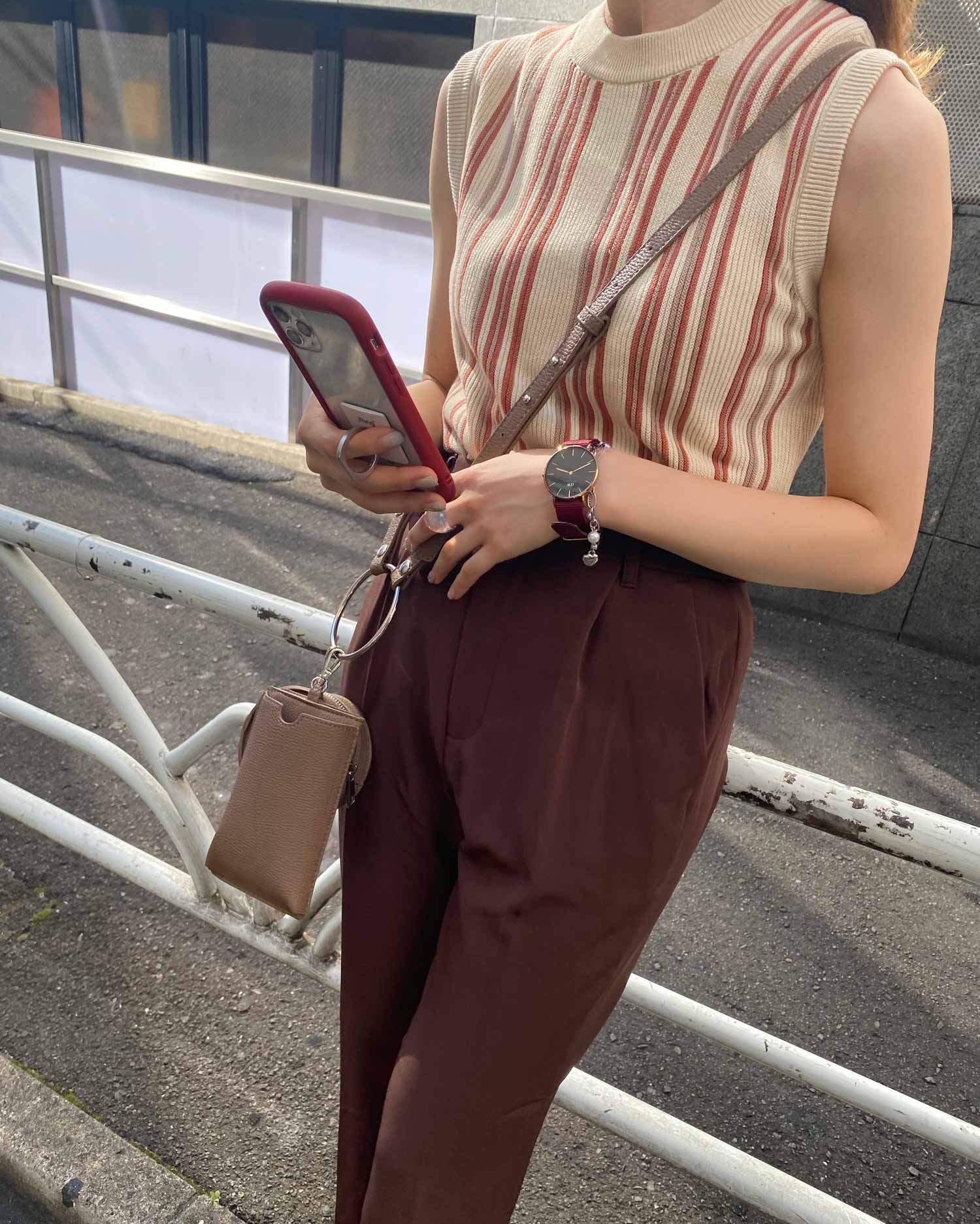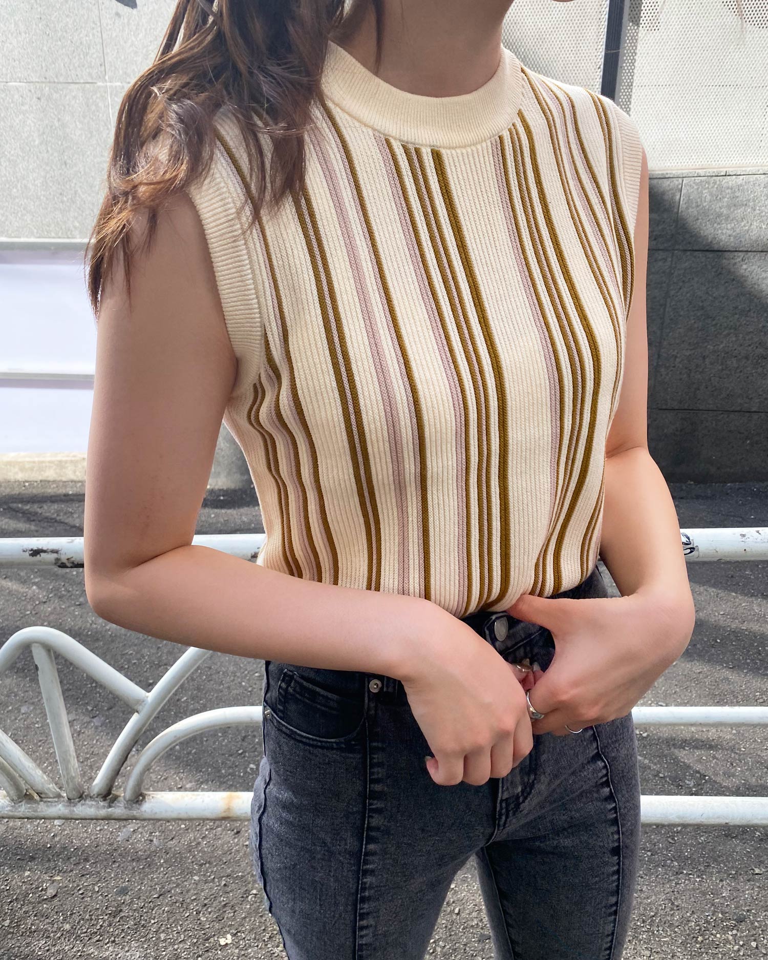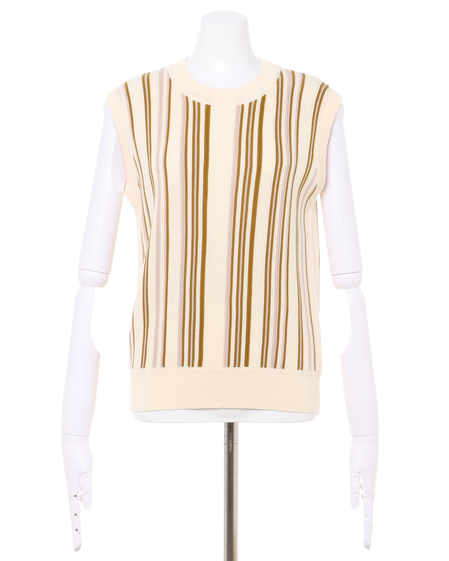 ノースリーブデザインでTシャツなどとのレイヤードスタイルも楽しめます。