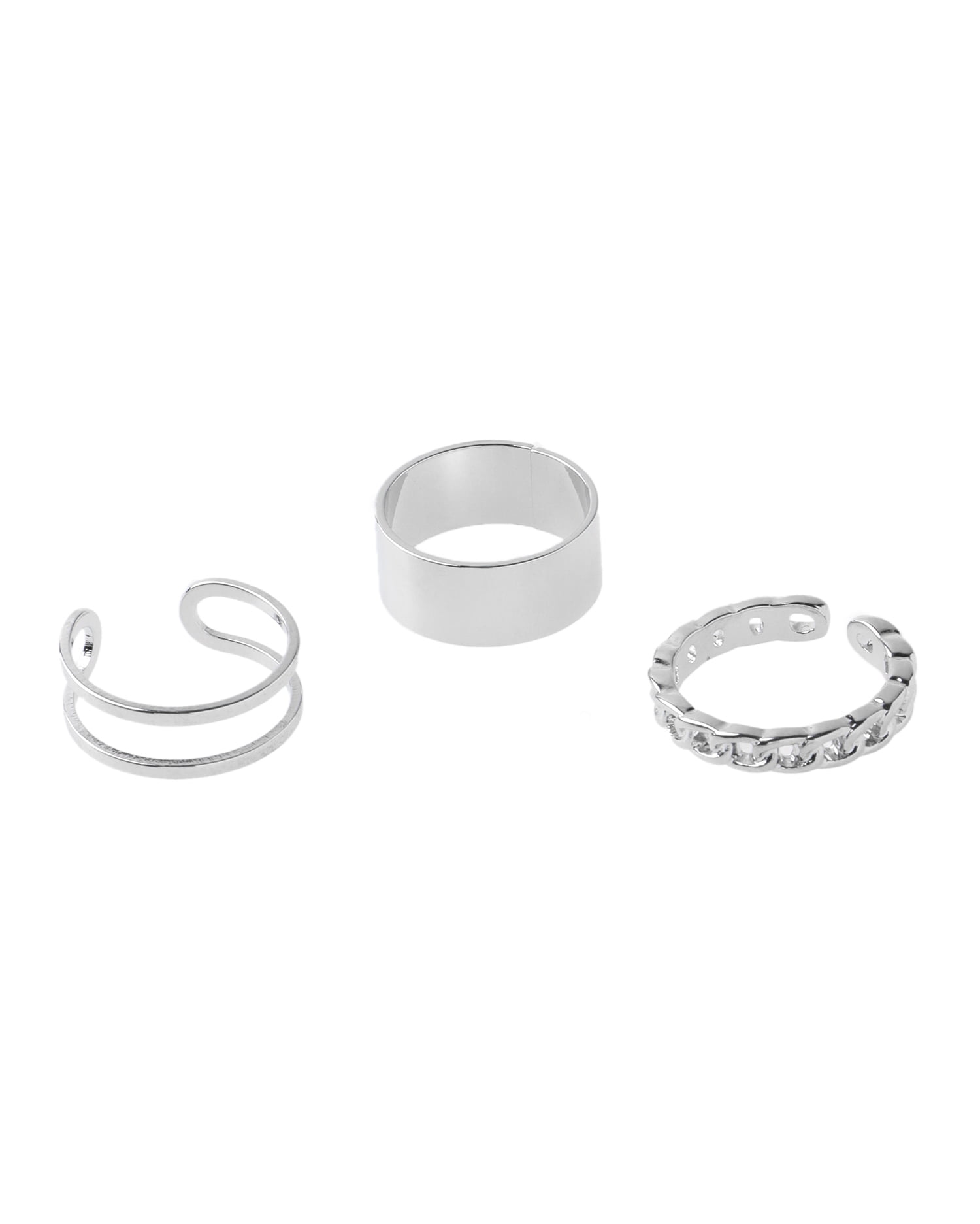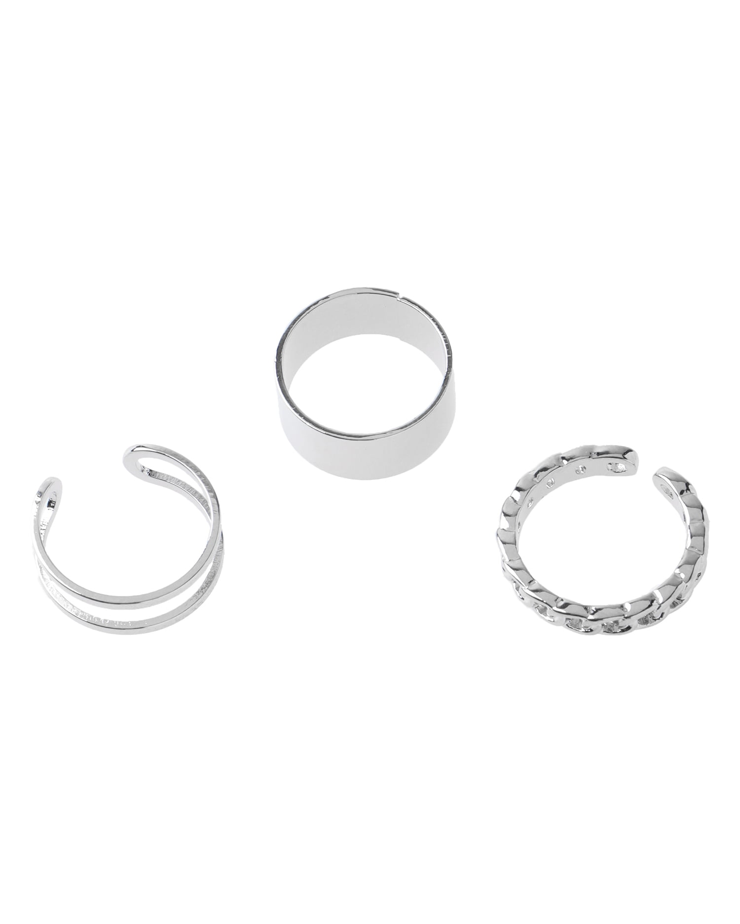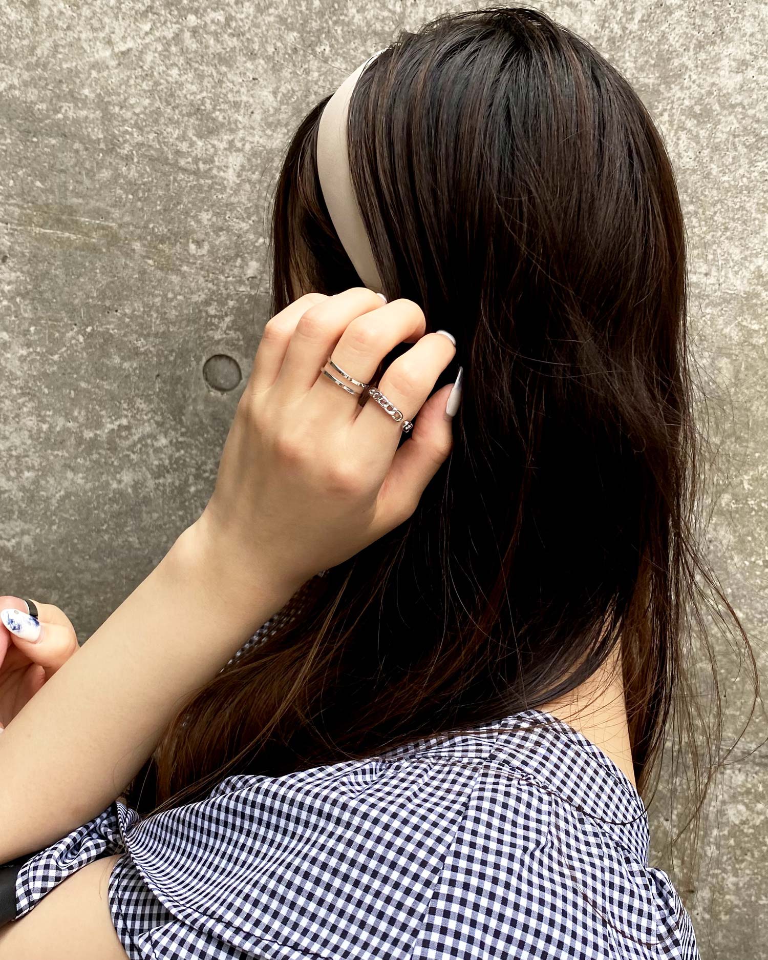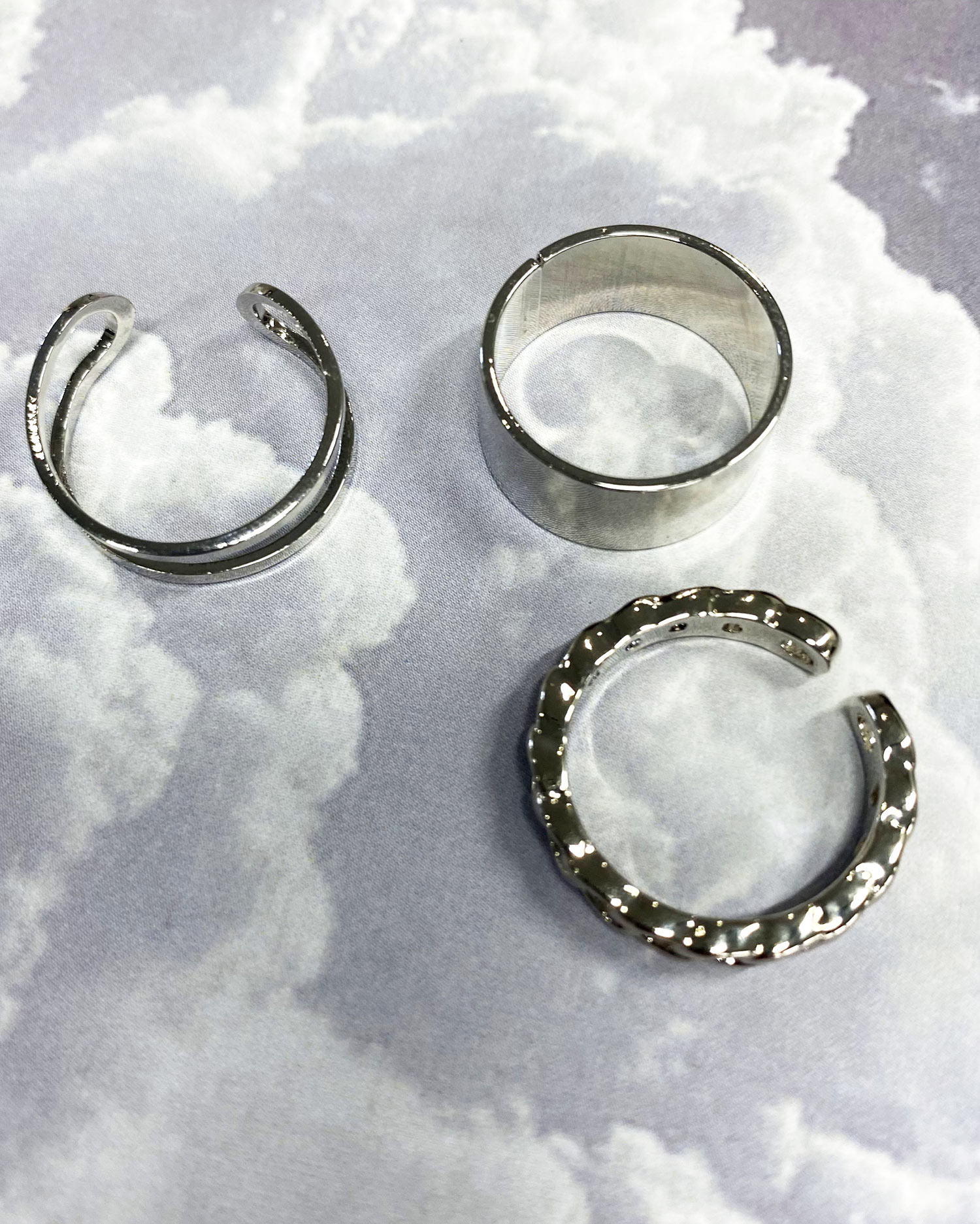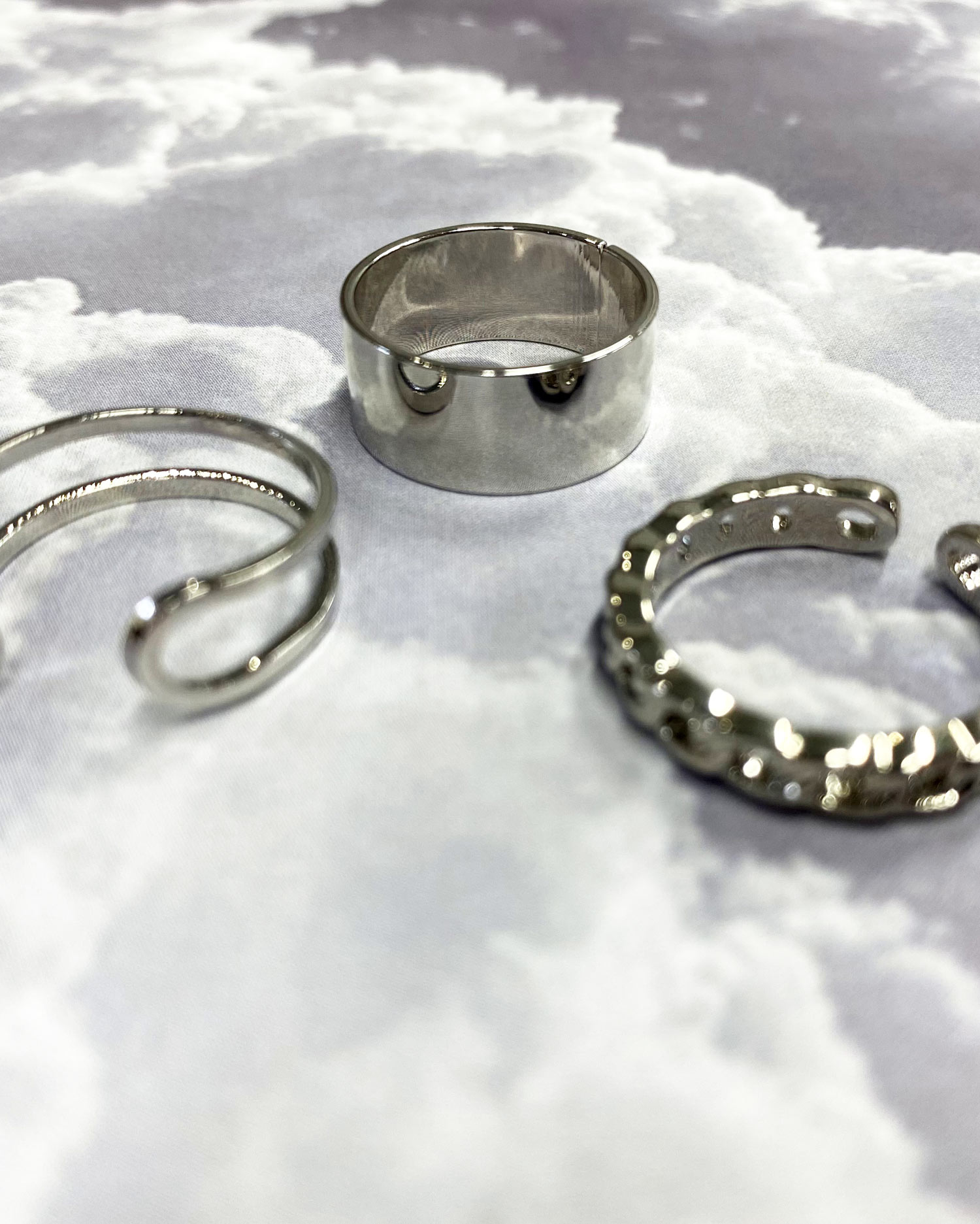 細めのチェーンデザイン、フラットなプレートデザイン、真ん中があいたオープンデザインの3つがセットに。