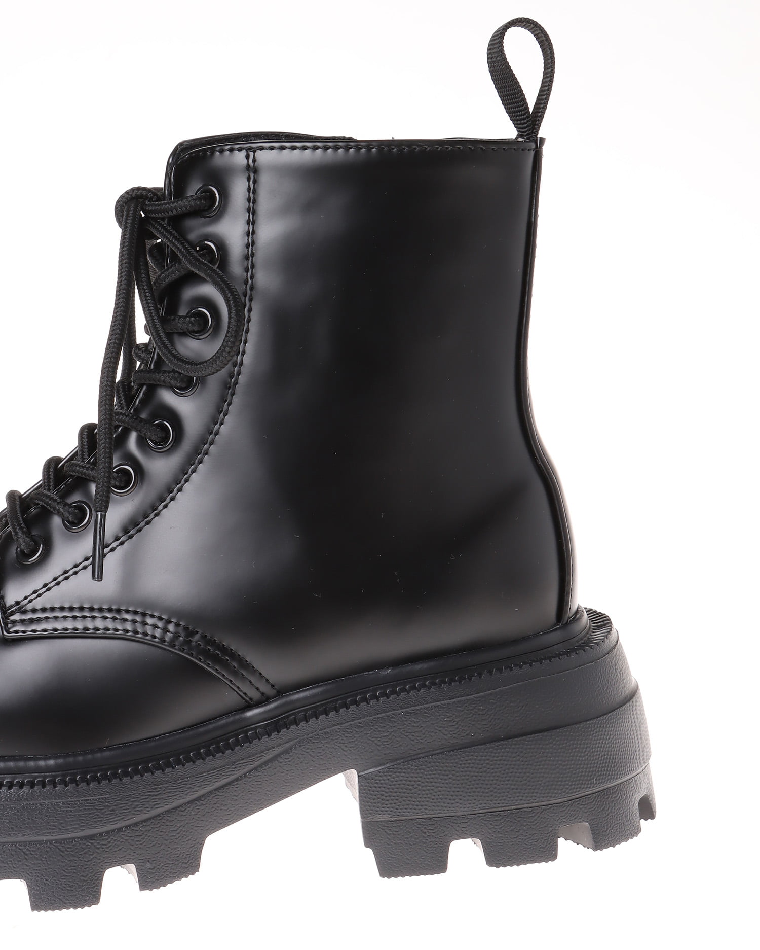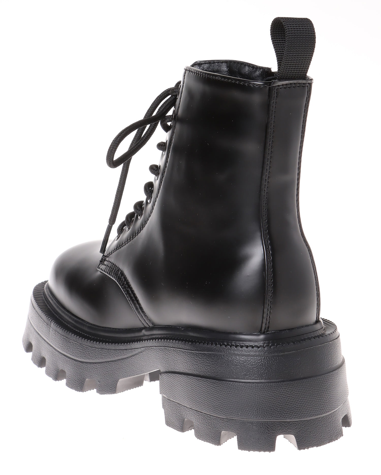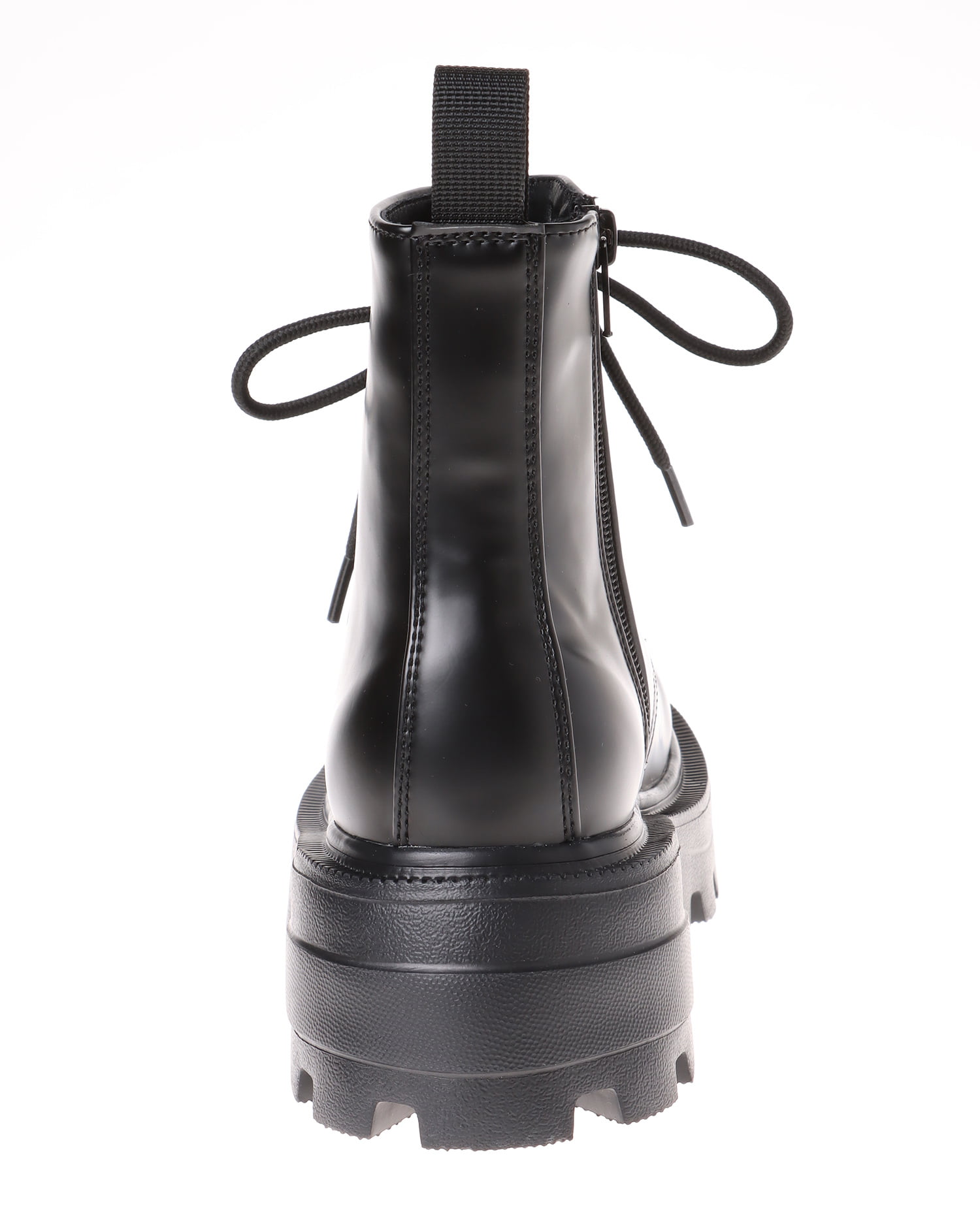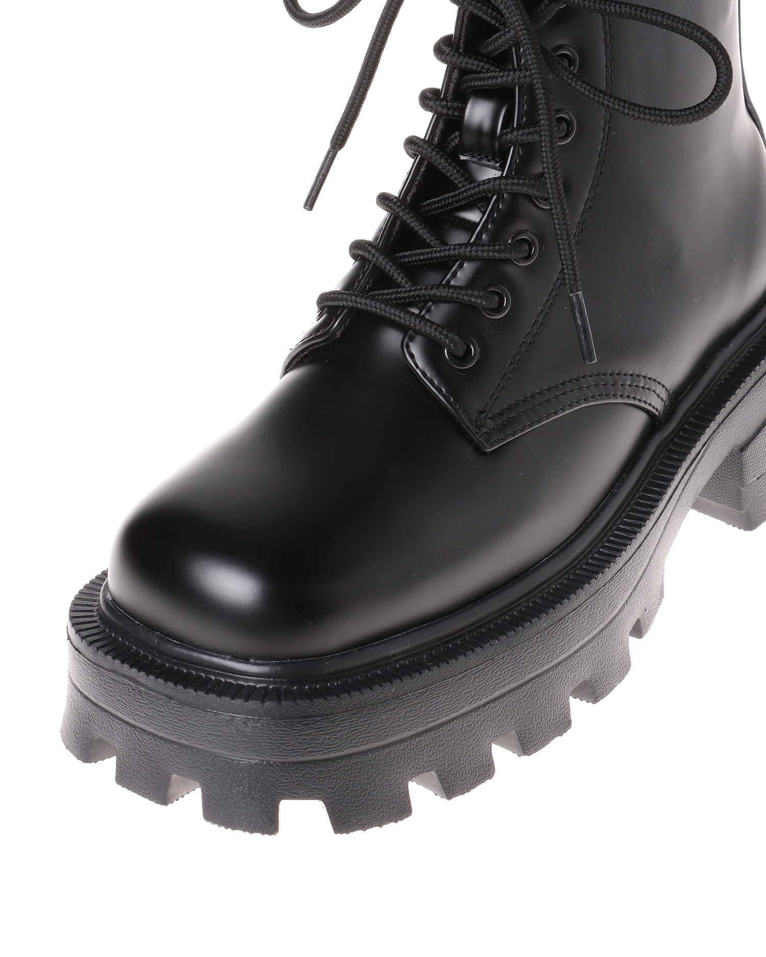 かっちりとしたスクエアトゥとゴツめのソールがスタイリッシュなブーツ。