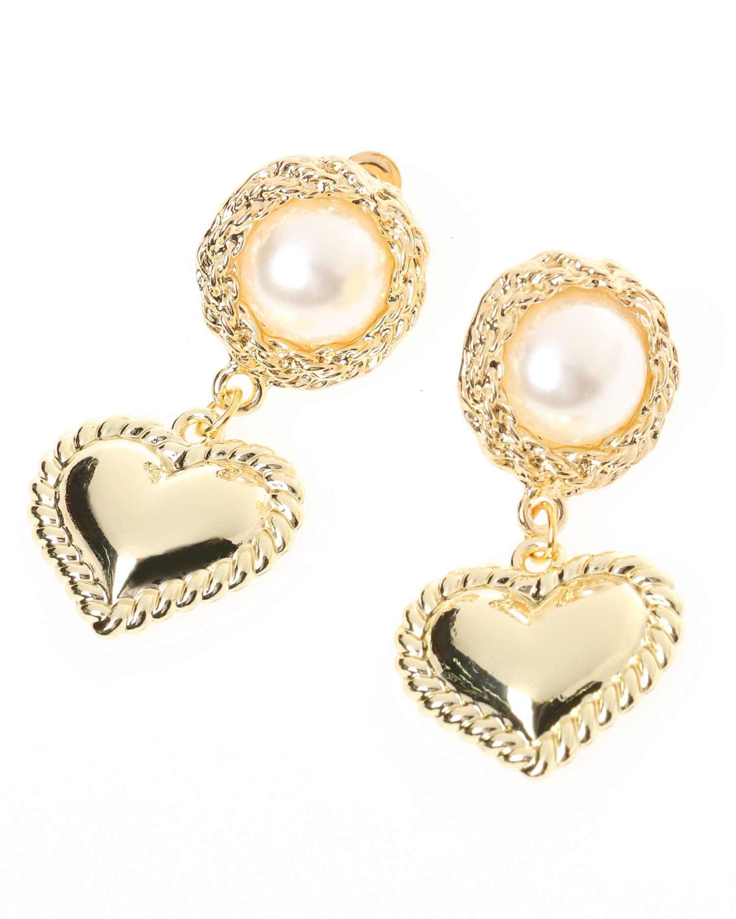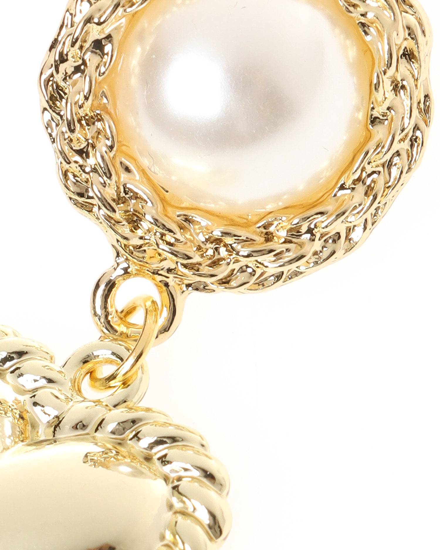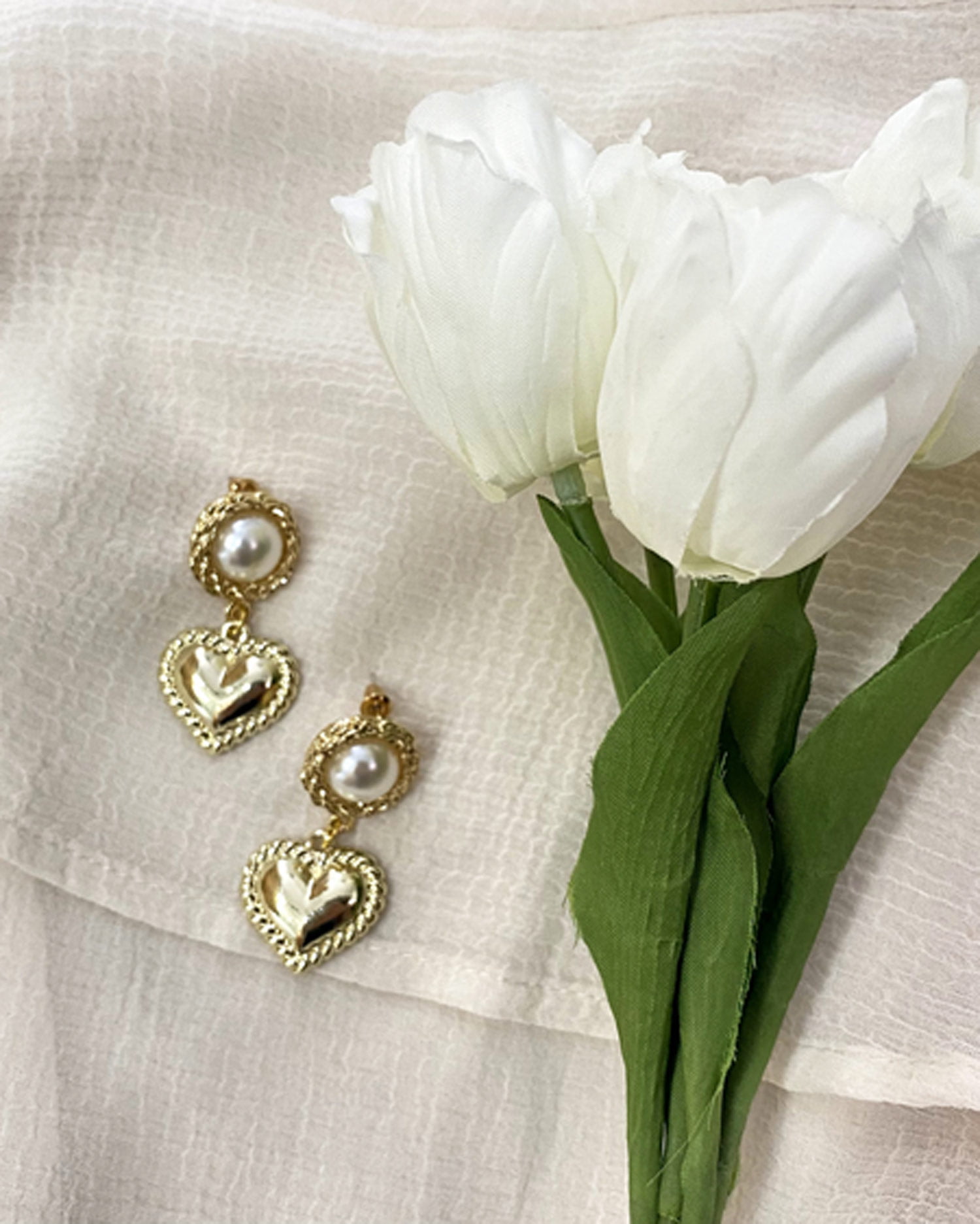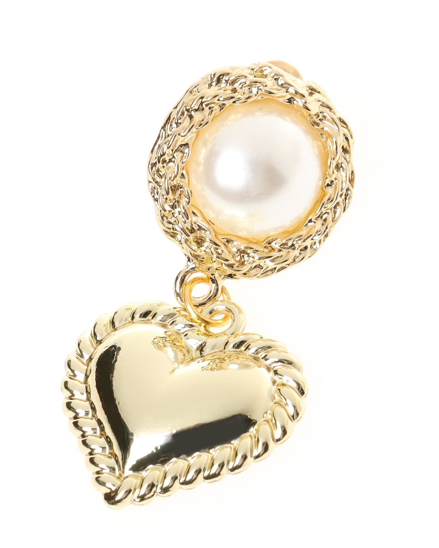 ハートとパールビジューを組み合わせた華やかピアスで大人レディに。