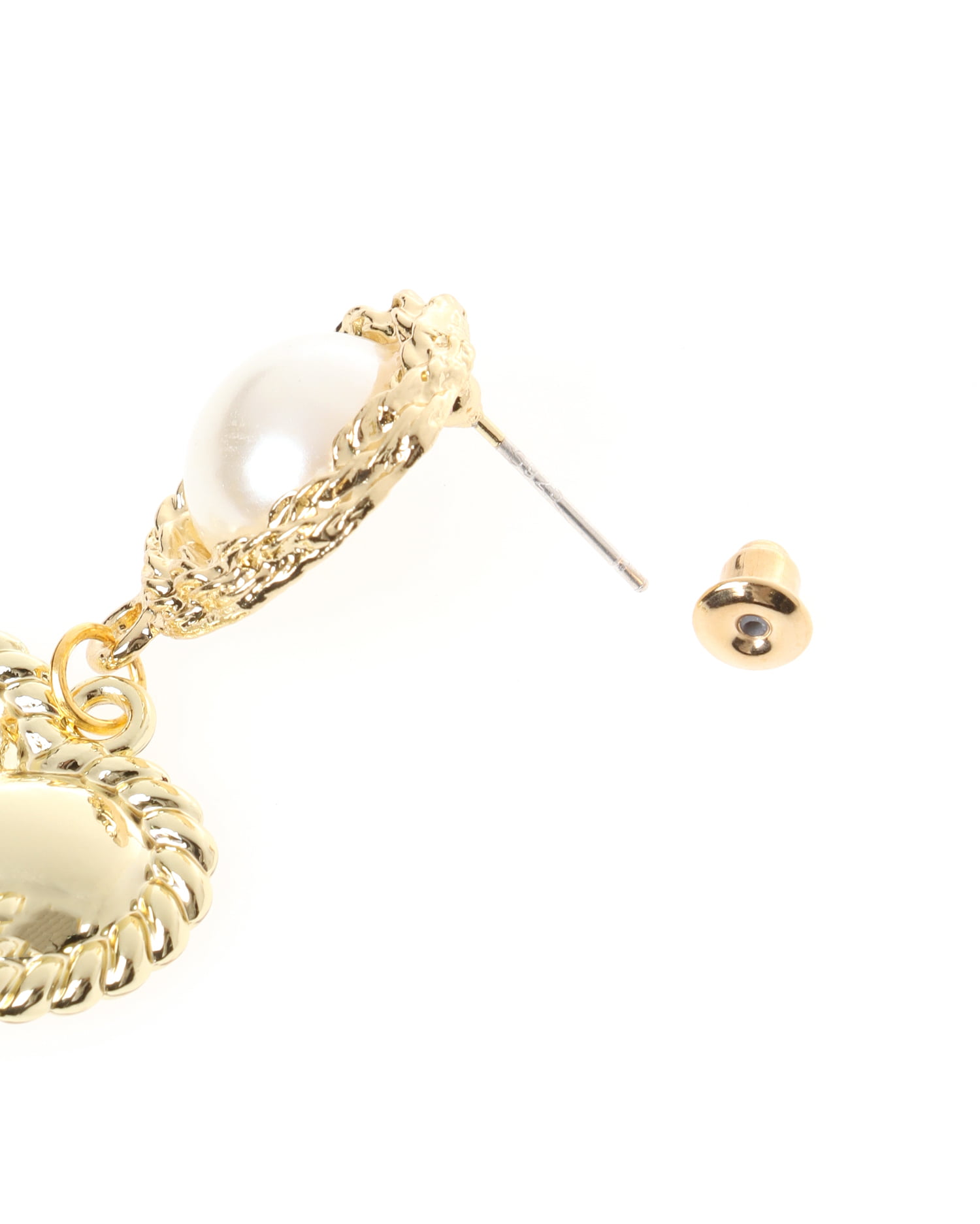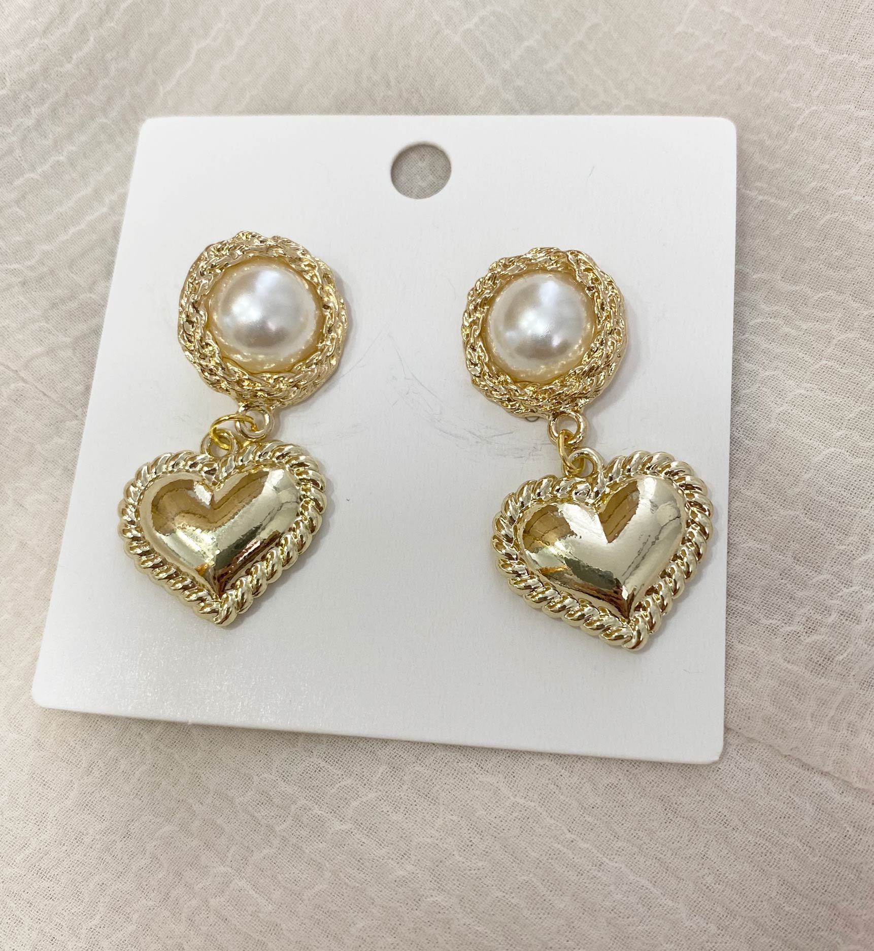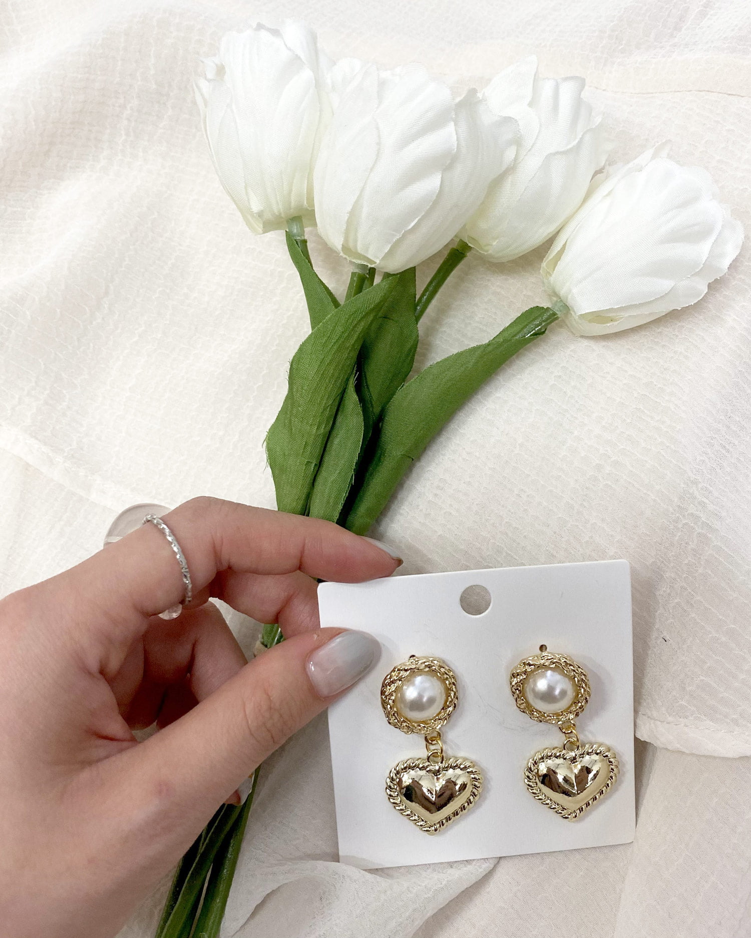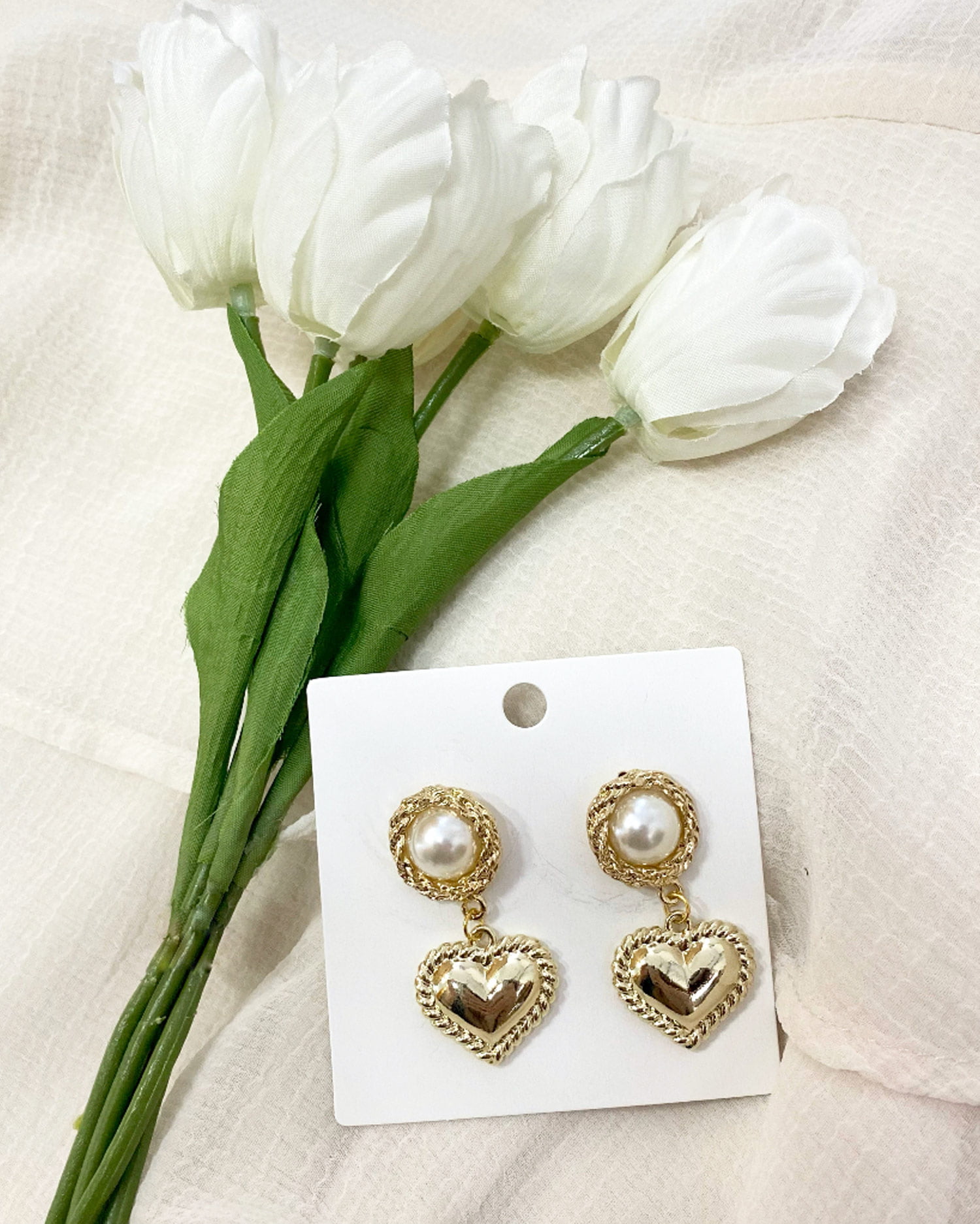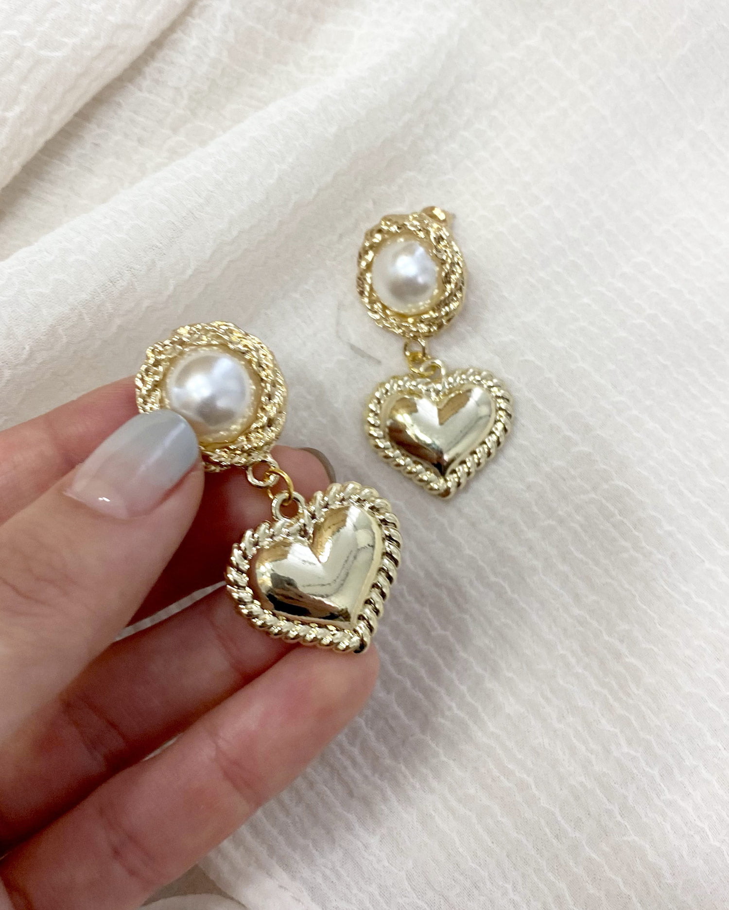 ハートとパールビジューを組み合わせた華やかピアスで大人レディに。