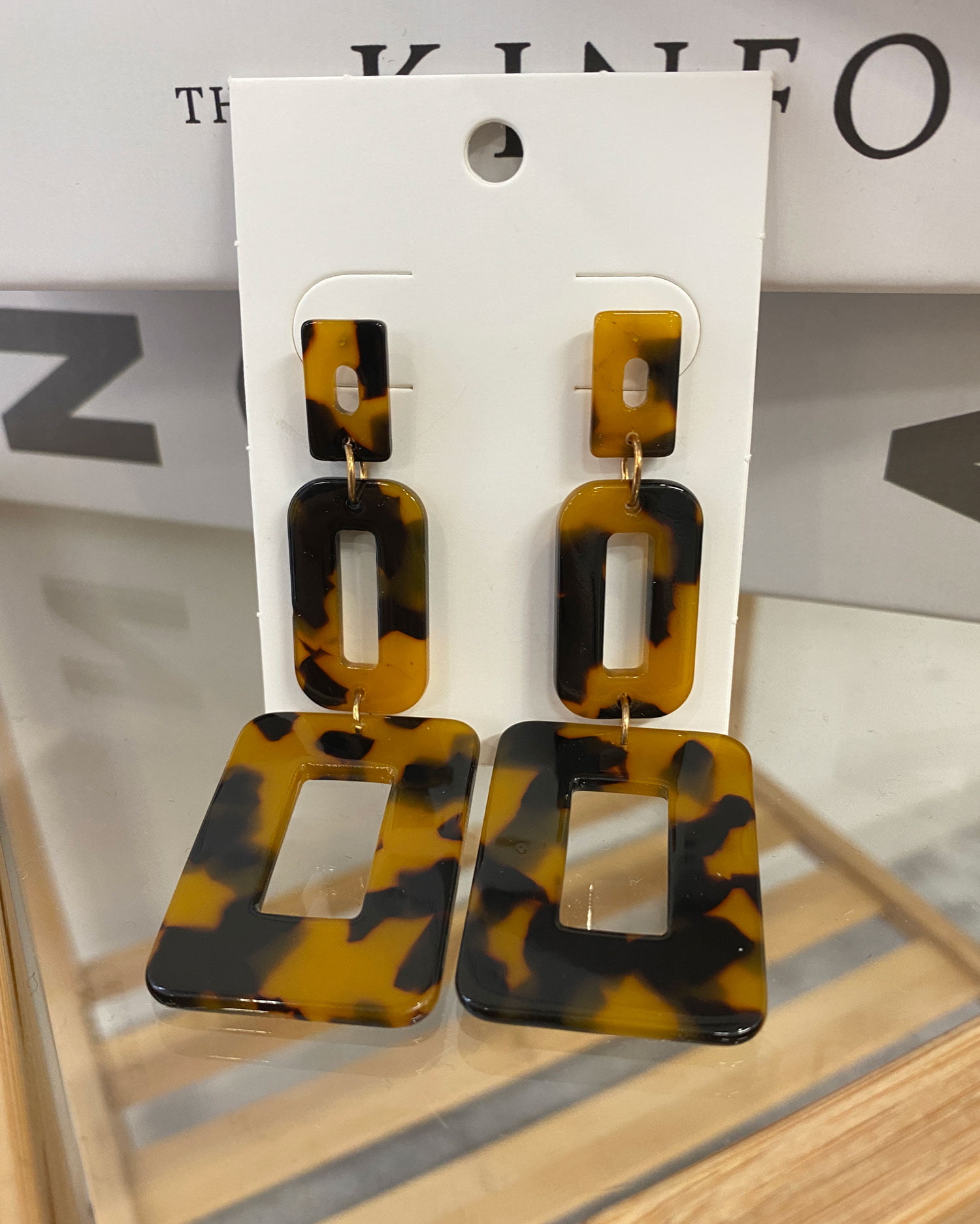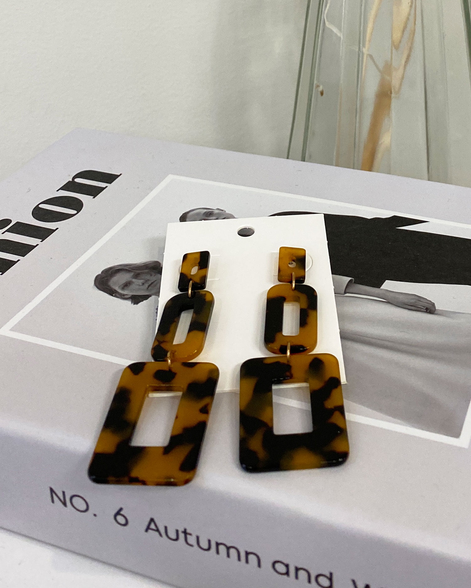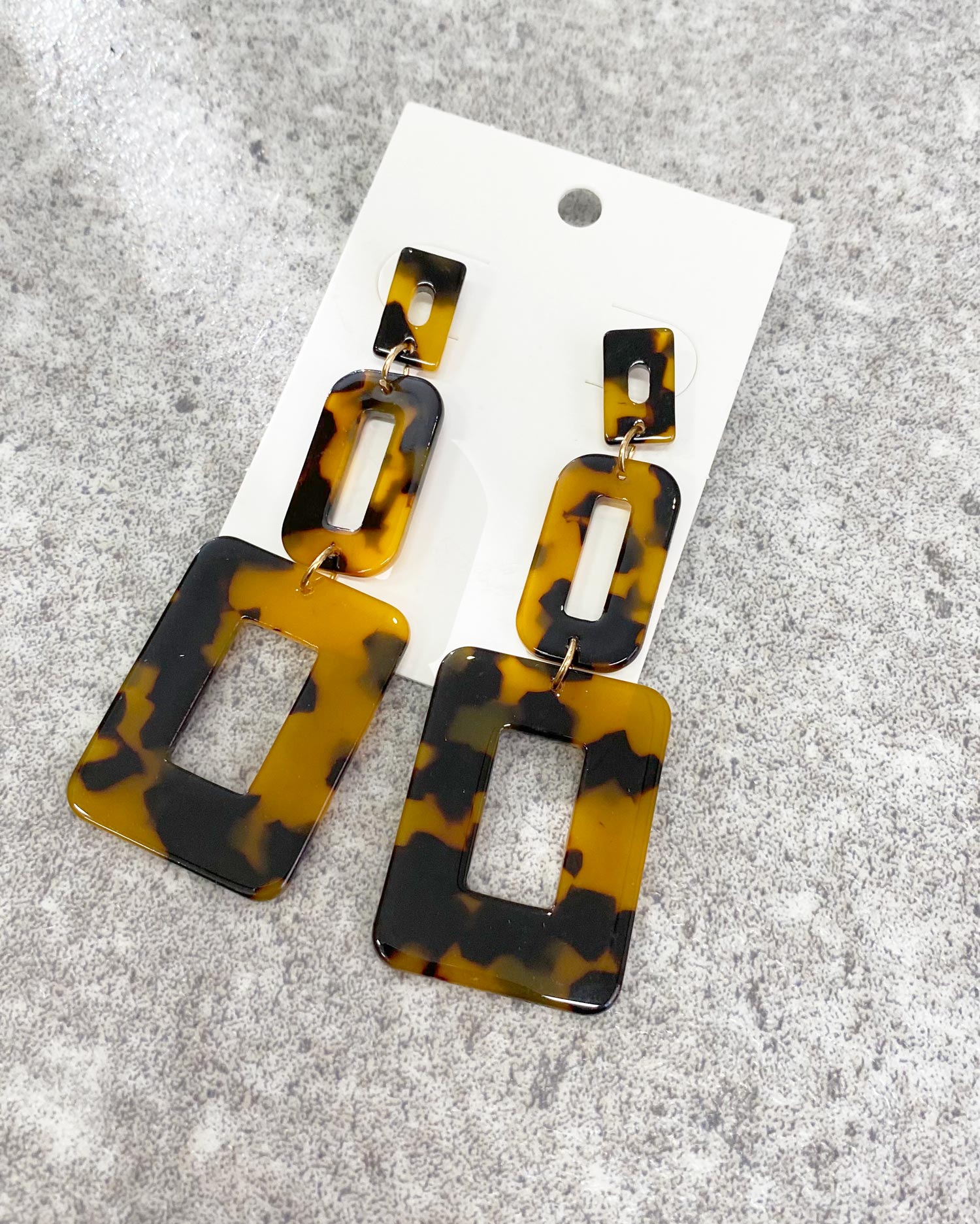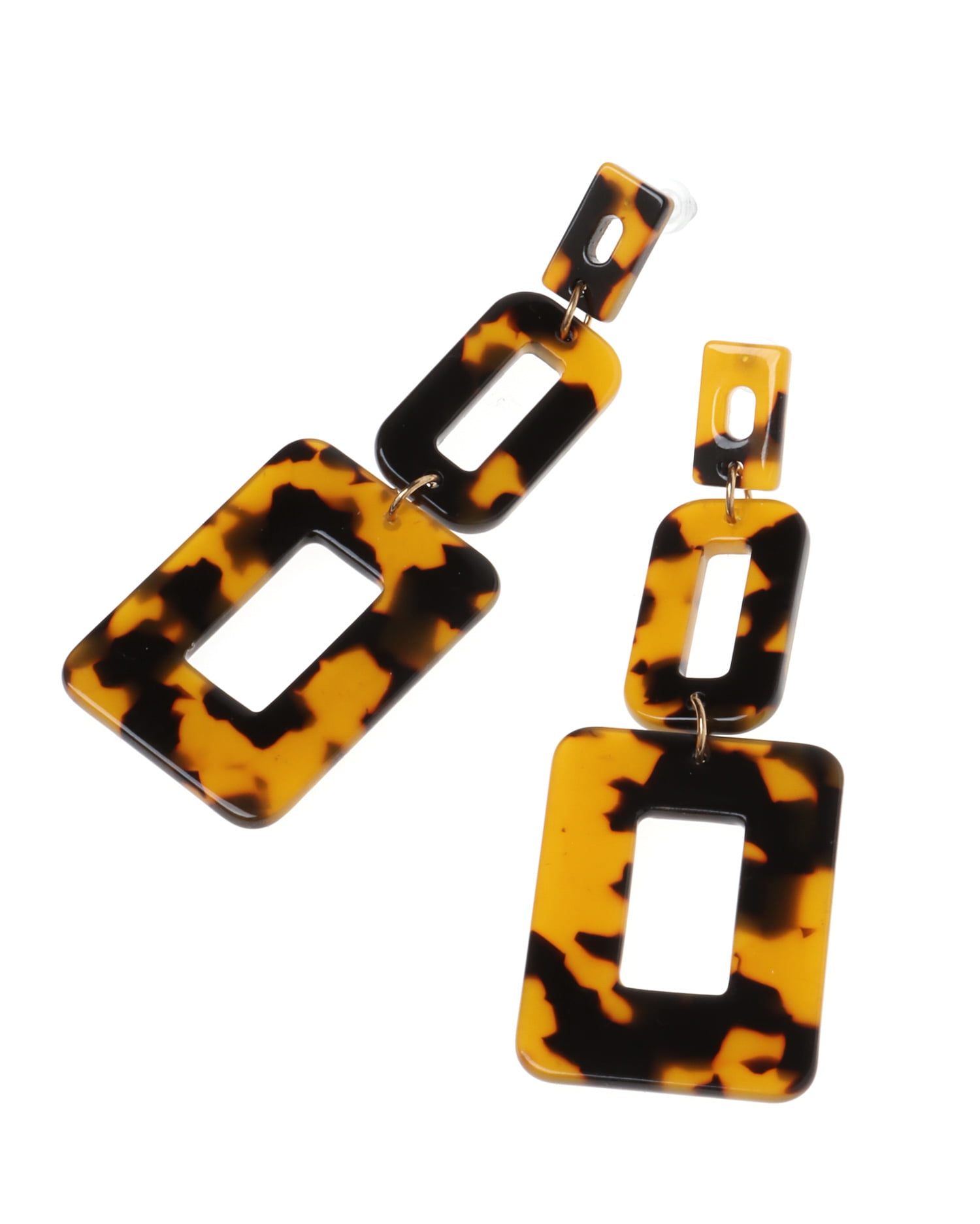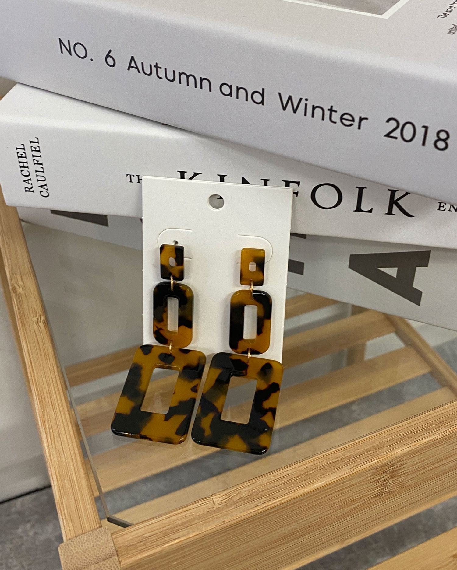 べっ甲調のスクエアパーツがスタイリッシュなピアス。