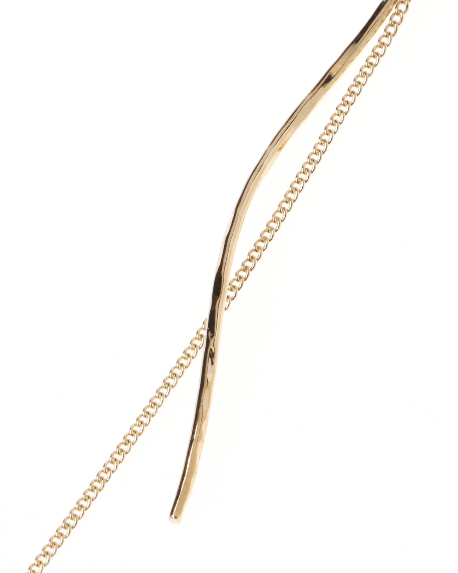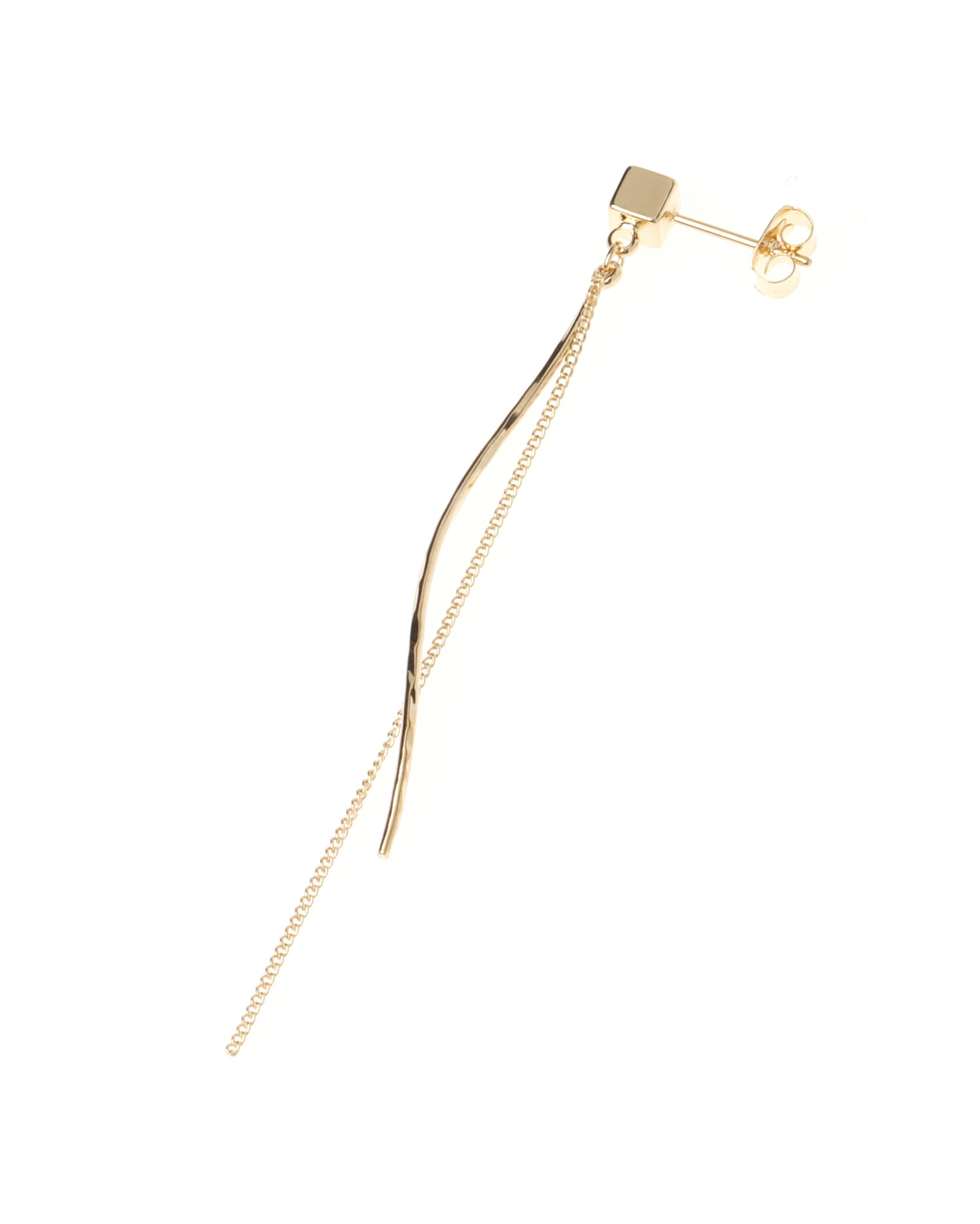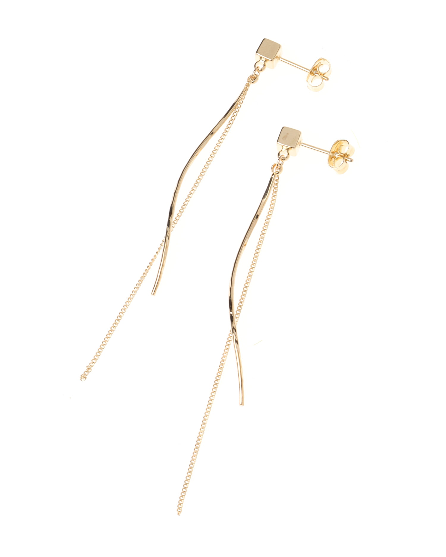 トップ部分のスクエアパーツにゆらゆら動くチェーンとバーパーツを合わせ、大人っぽく仕上げています。