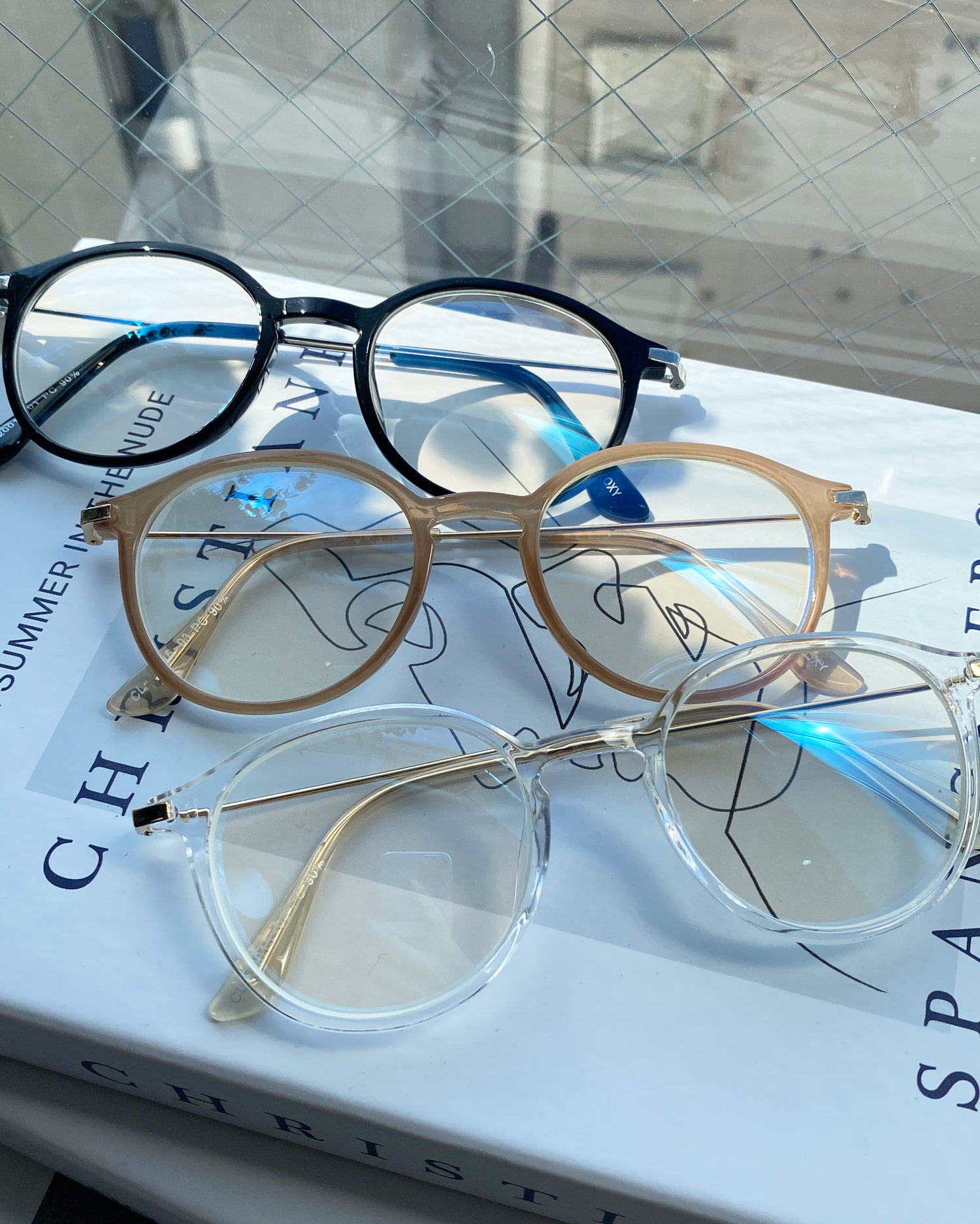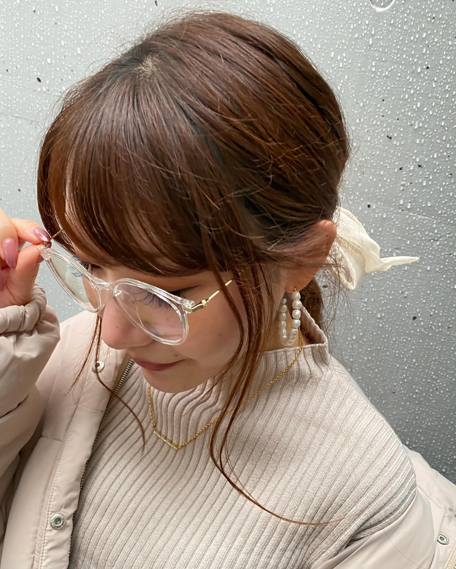 華奢なメタリックのテンプルでカジュアル過ぎず、大人っぽく。