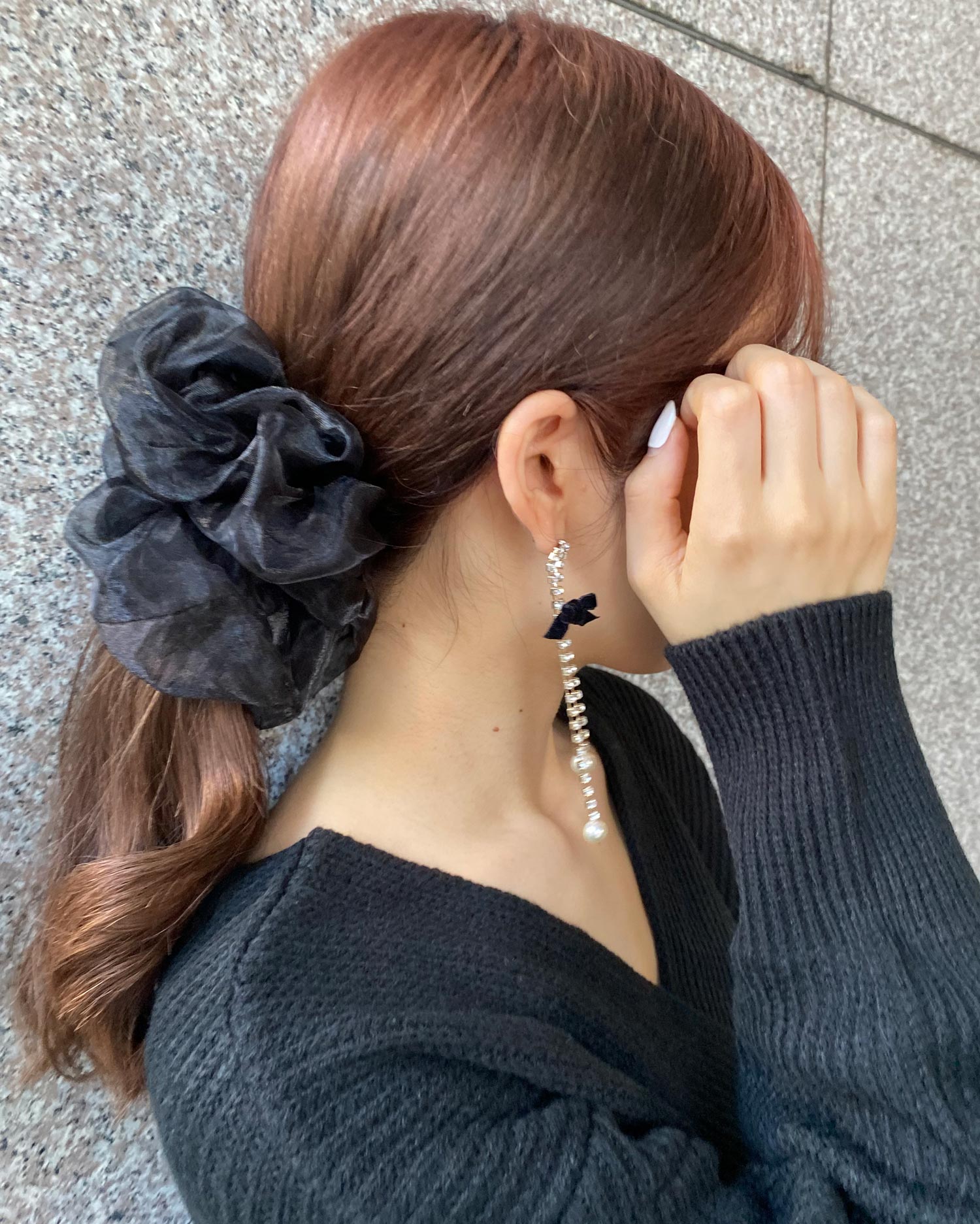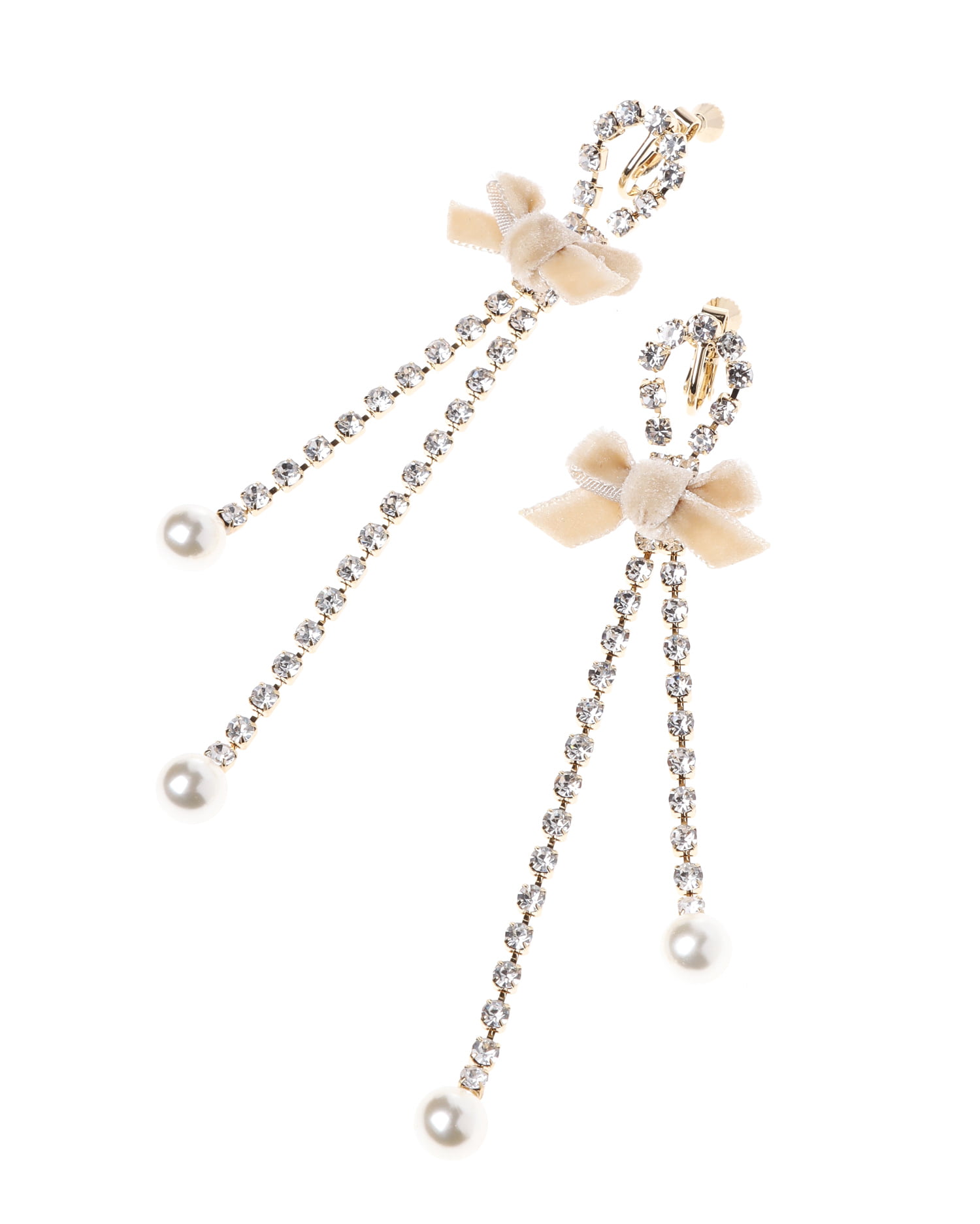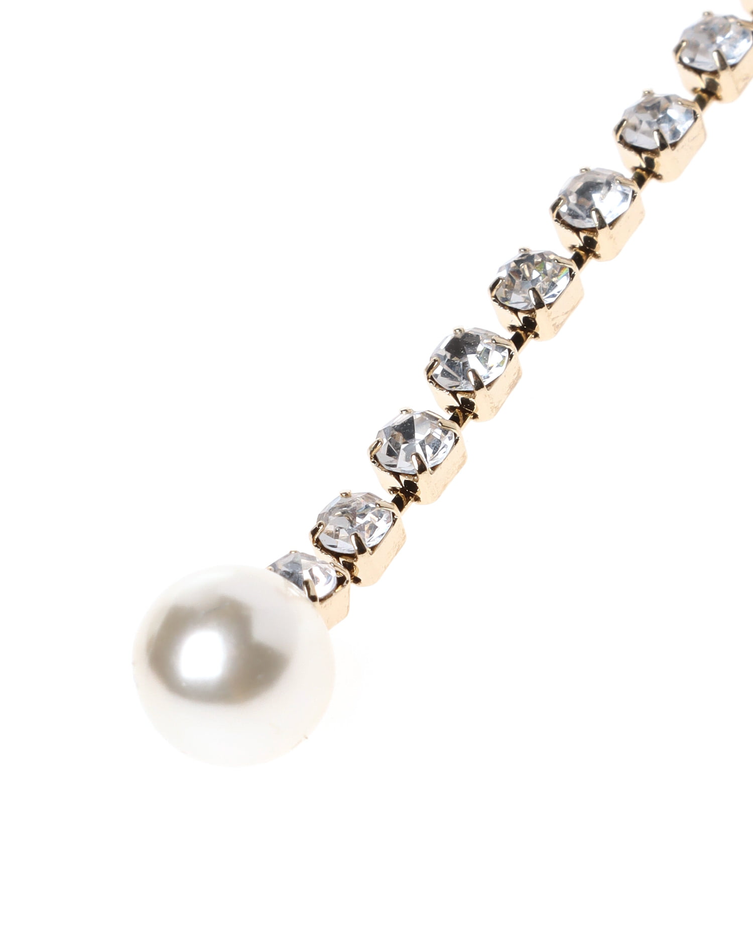 アシンメトリーの揺れるラインストーンの先にはエレガントなパールビジューをプラス。