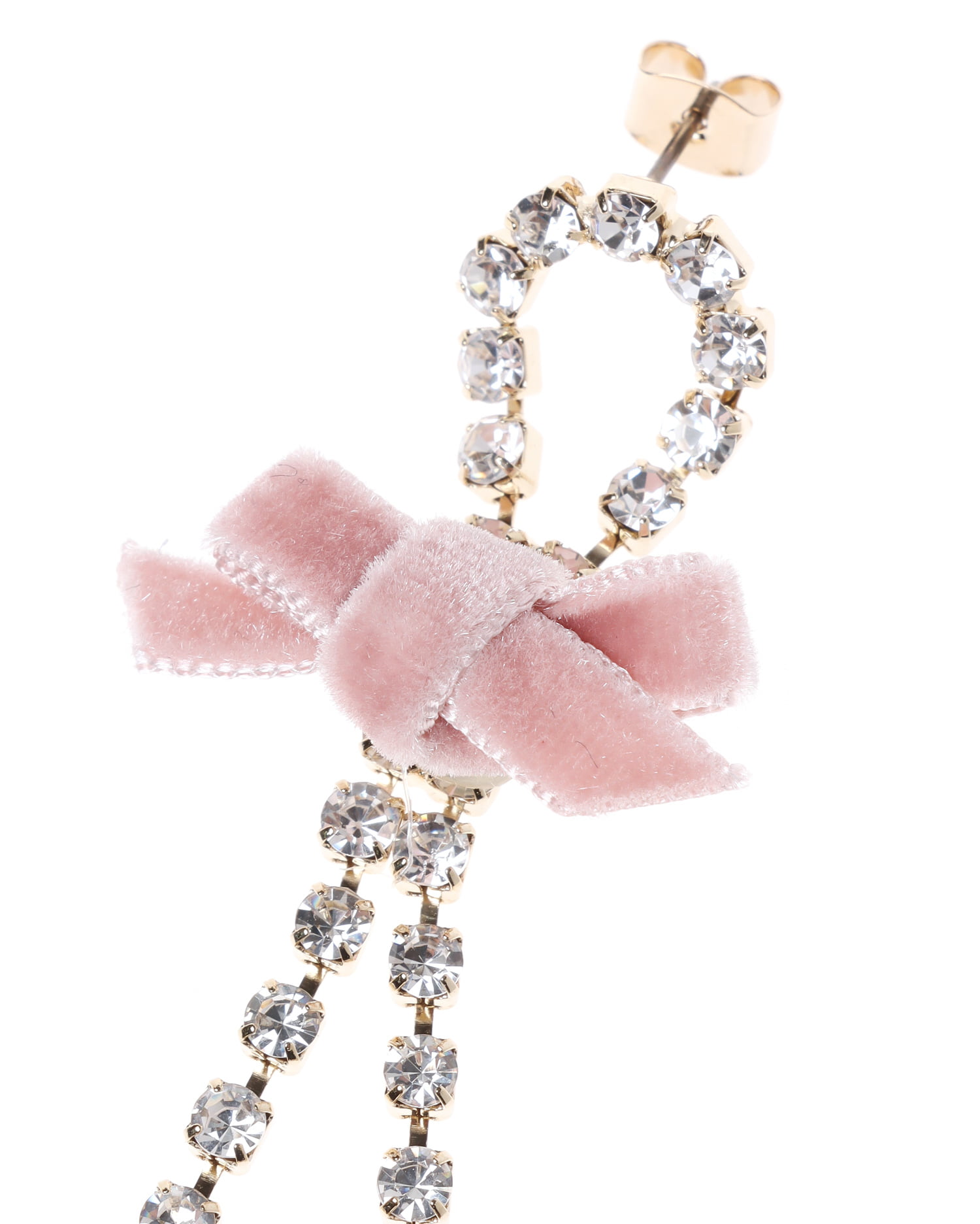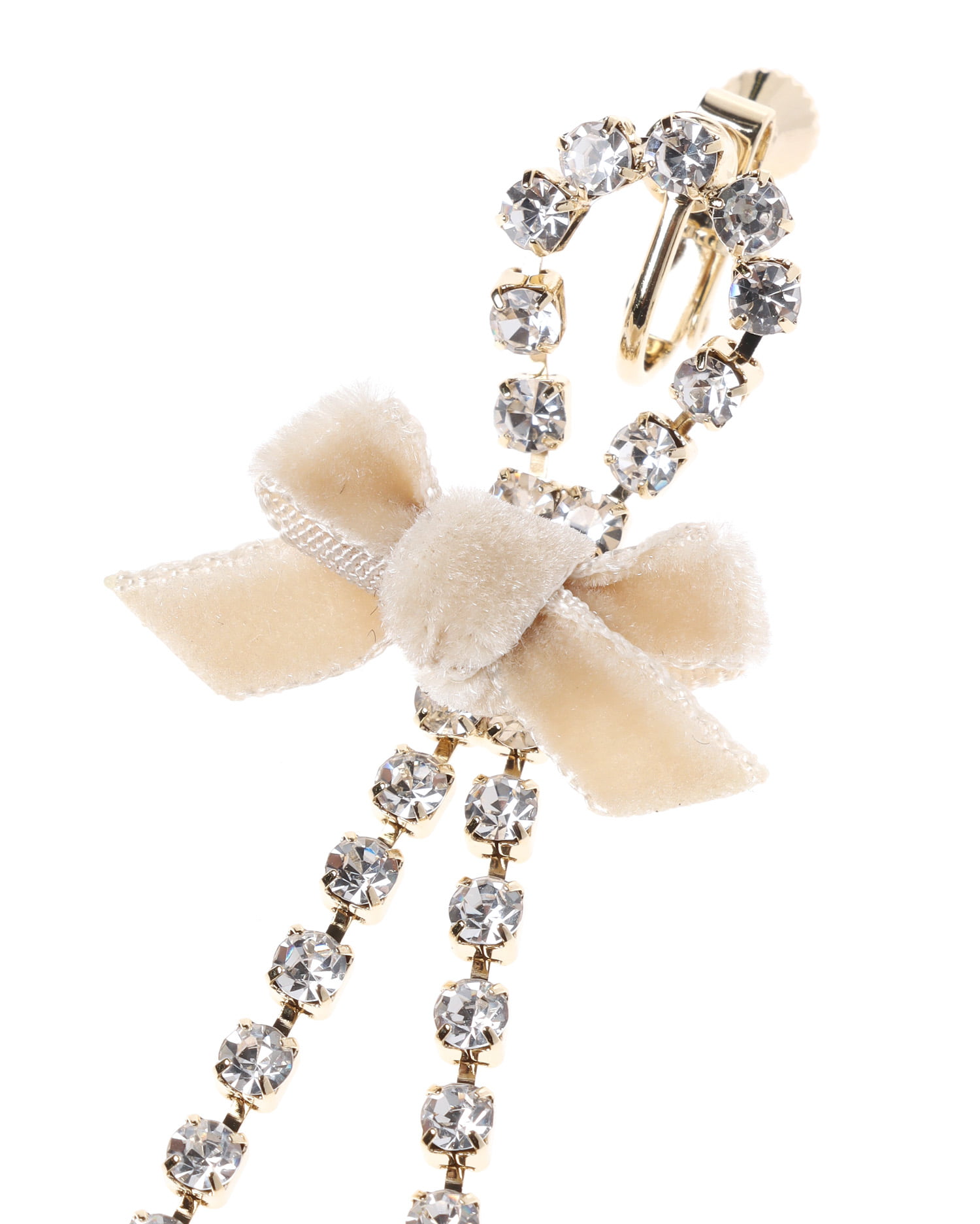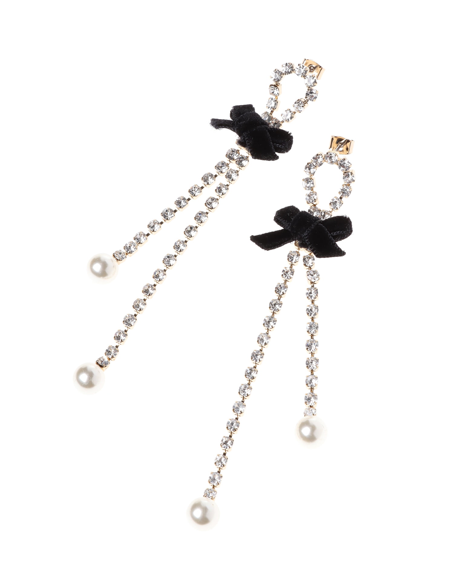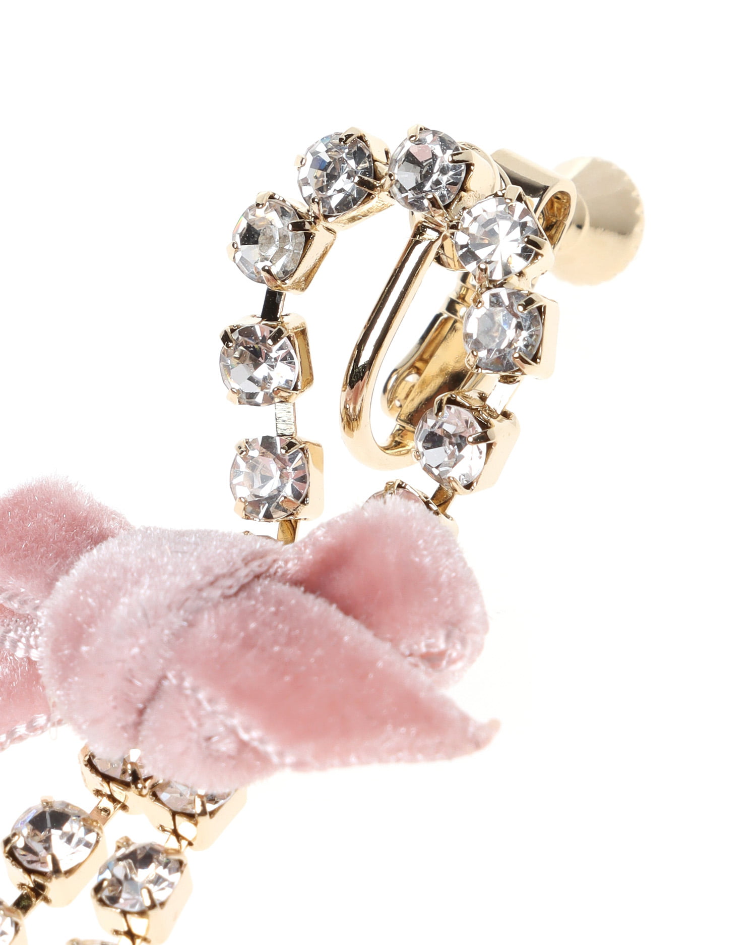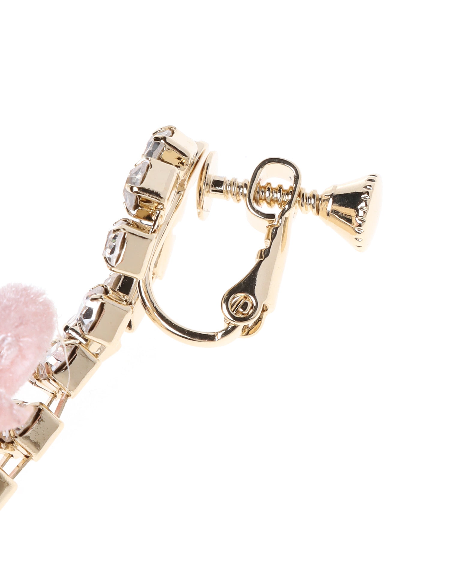 きらめくラインストーンが顔周りを明るく彩るロングピアス。