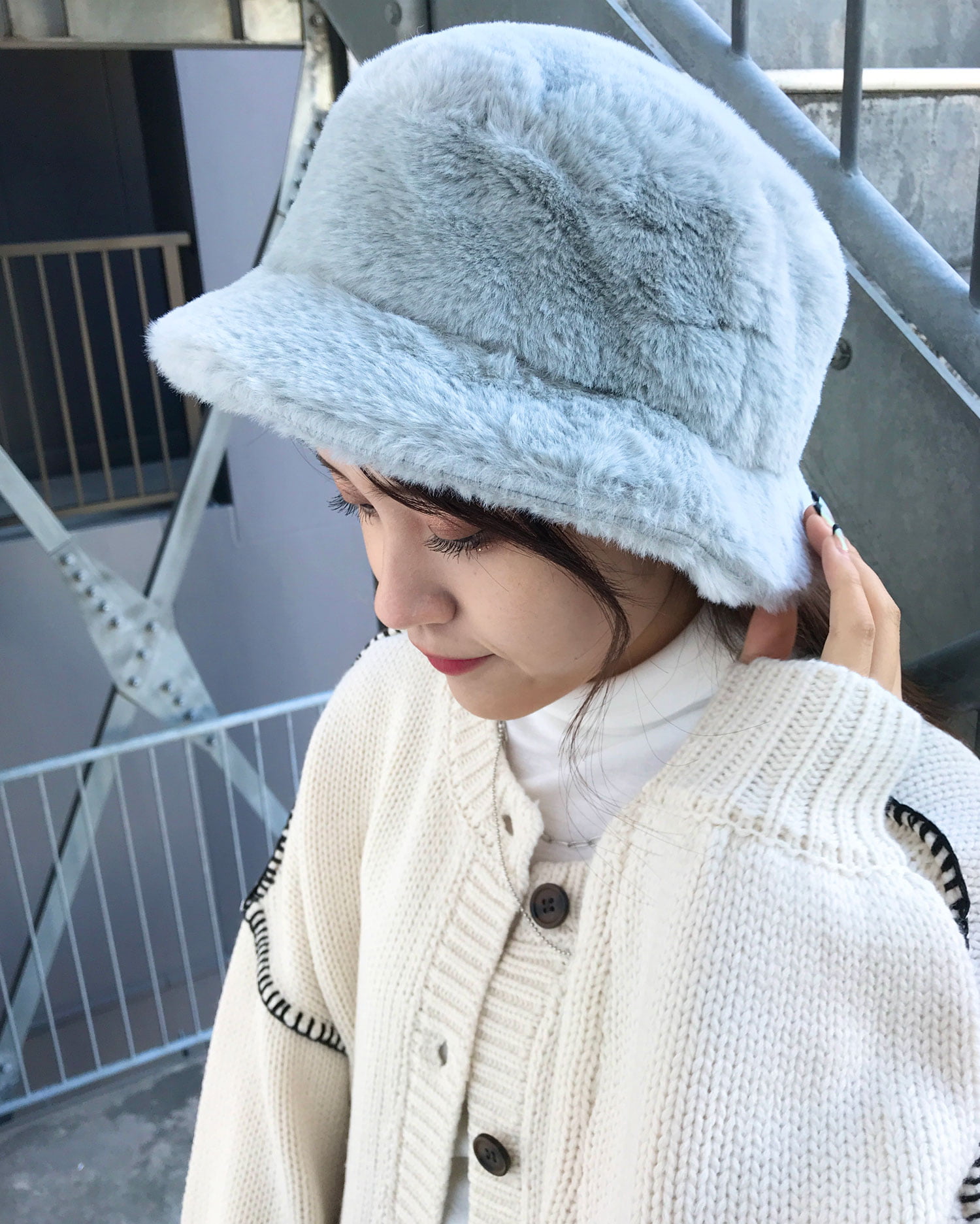 ふわふわであたたかみのあるエコファーハット。