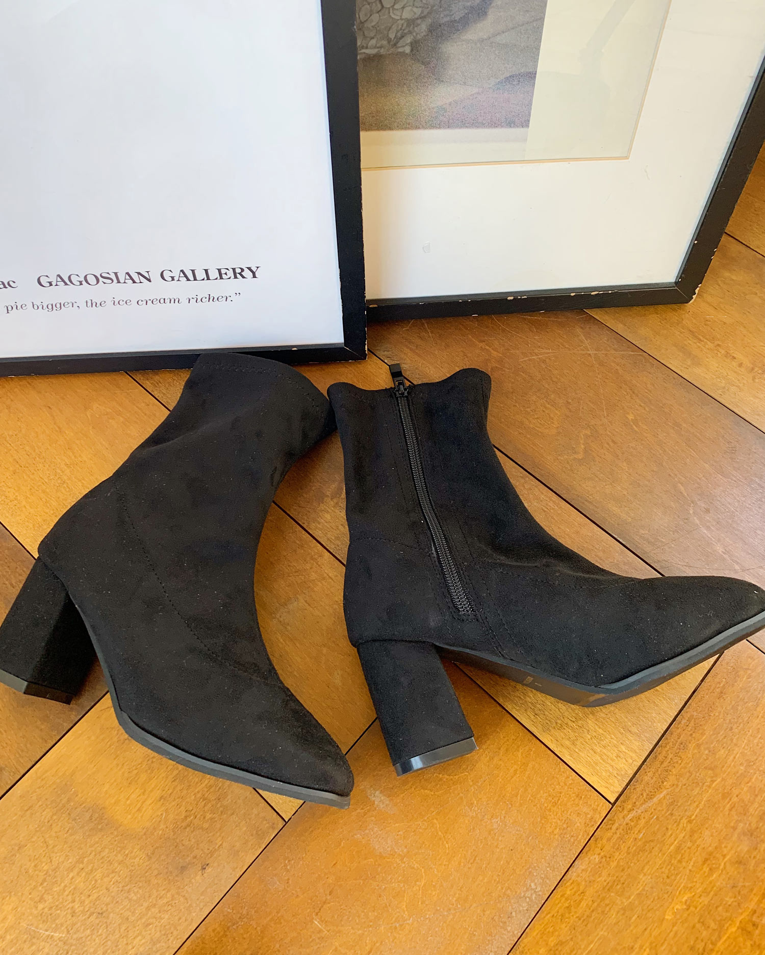 足元に季節感をプラスしてくれる上品素材のショートブーツ。
