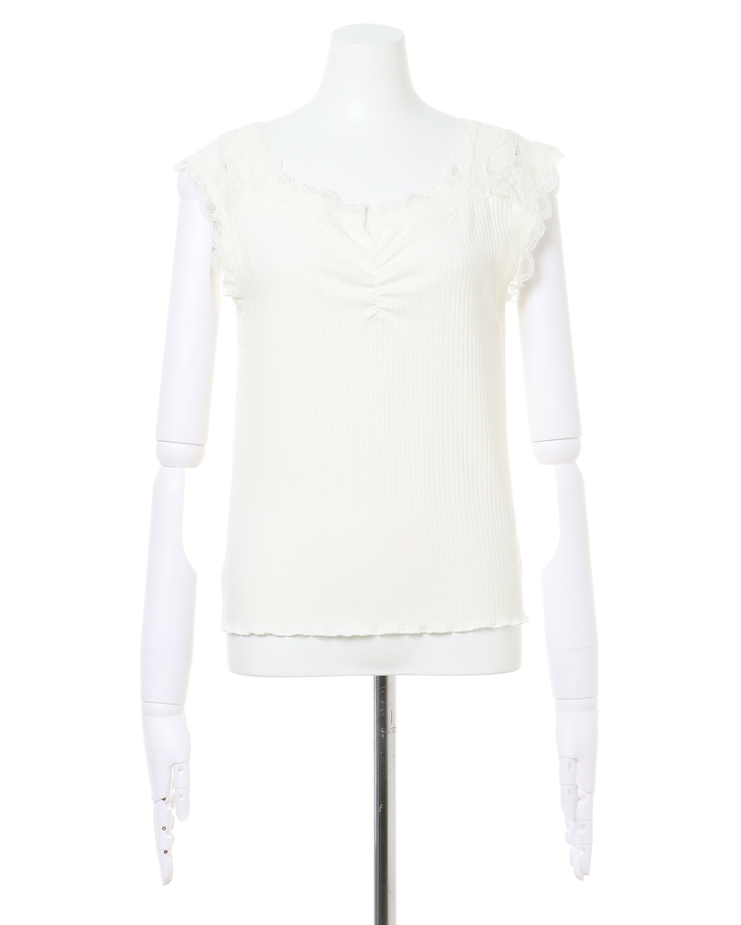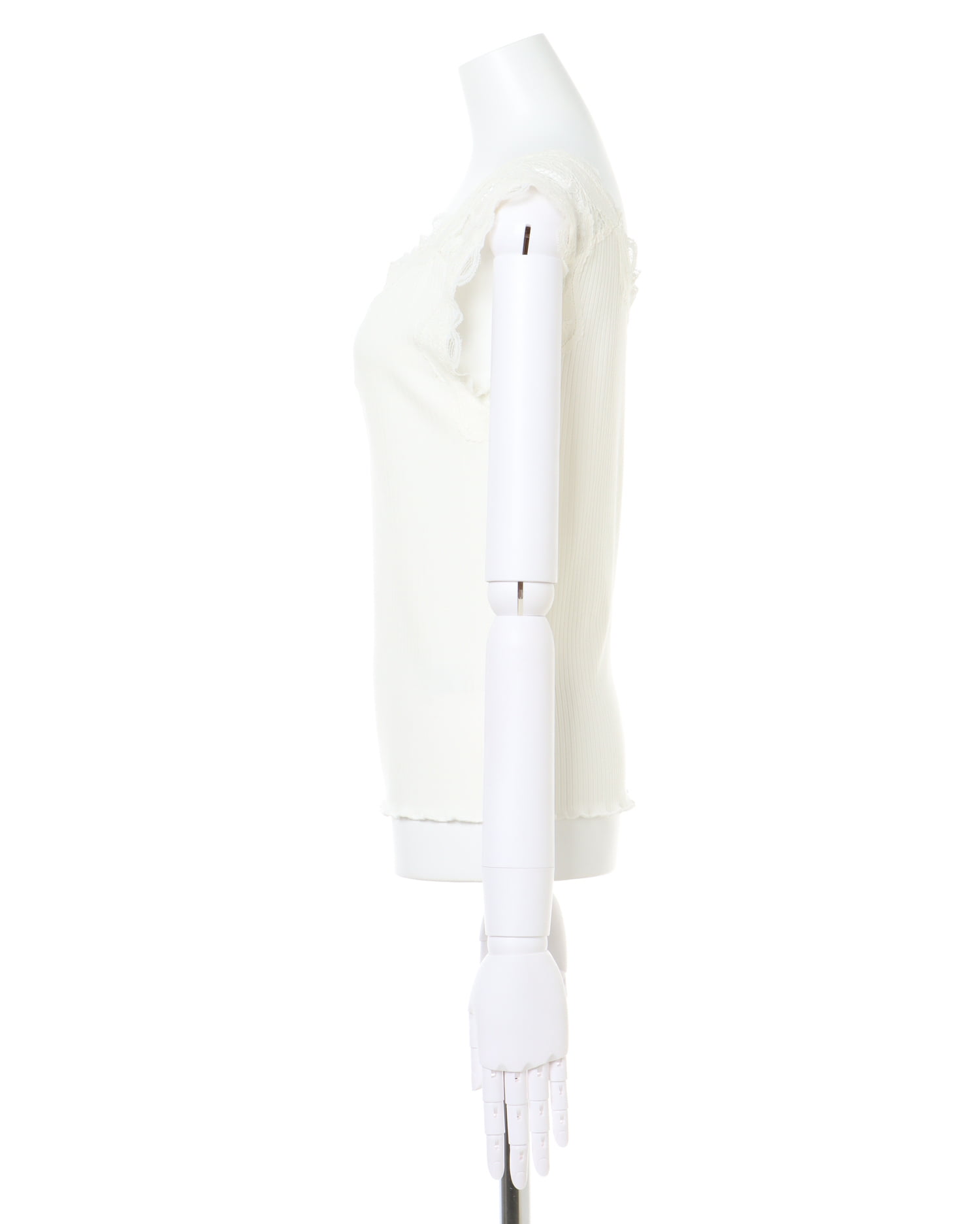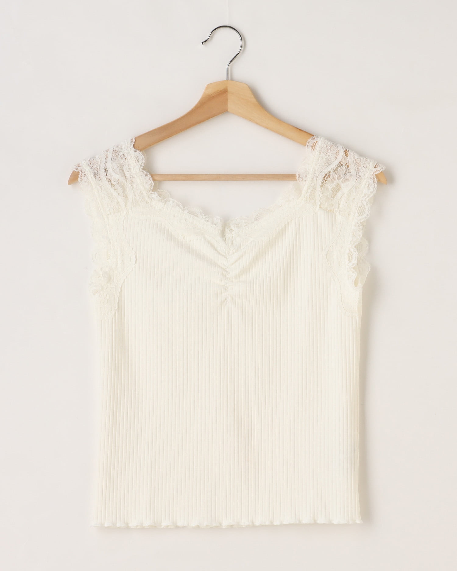 ショルダー部分の繊細なレースがエレガントなタンクトップ。