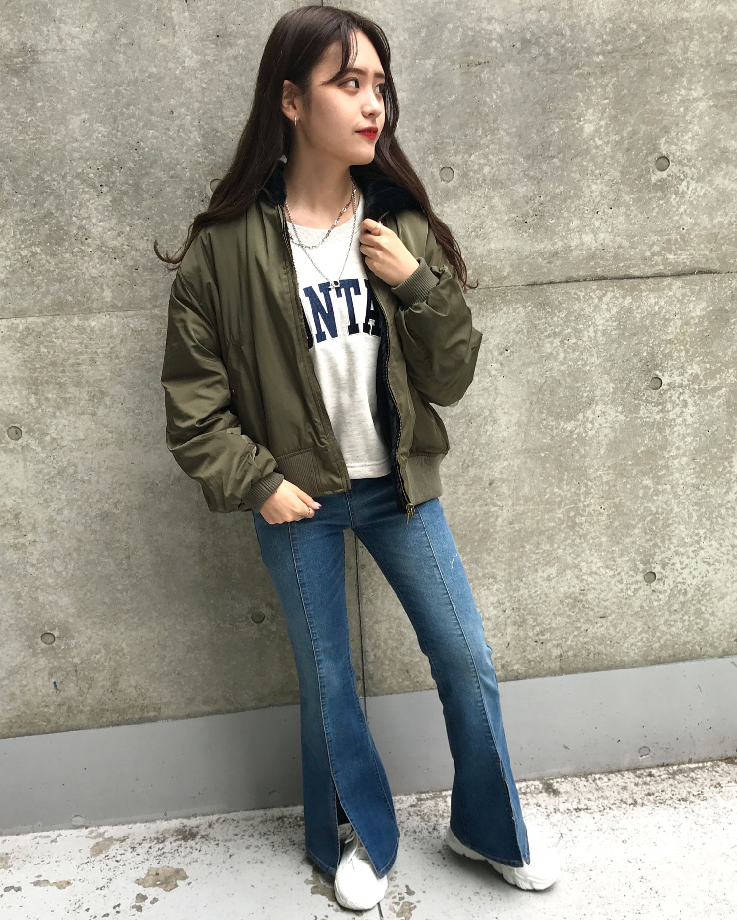 トレンドのゆったりシルエットとショート丈で好バランスのラフコーデが完成します。