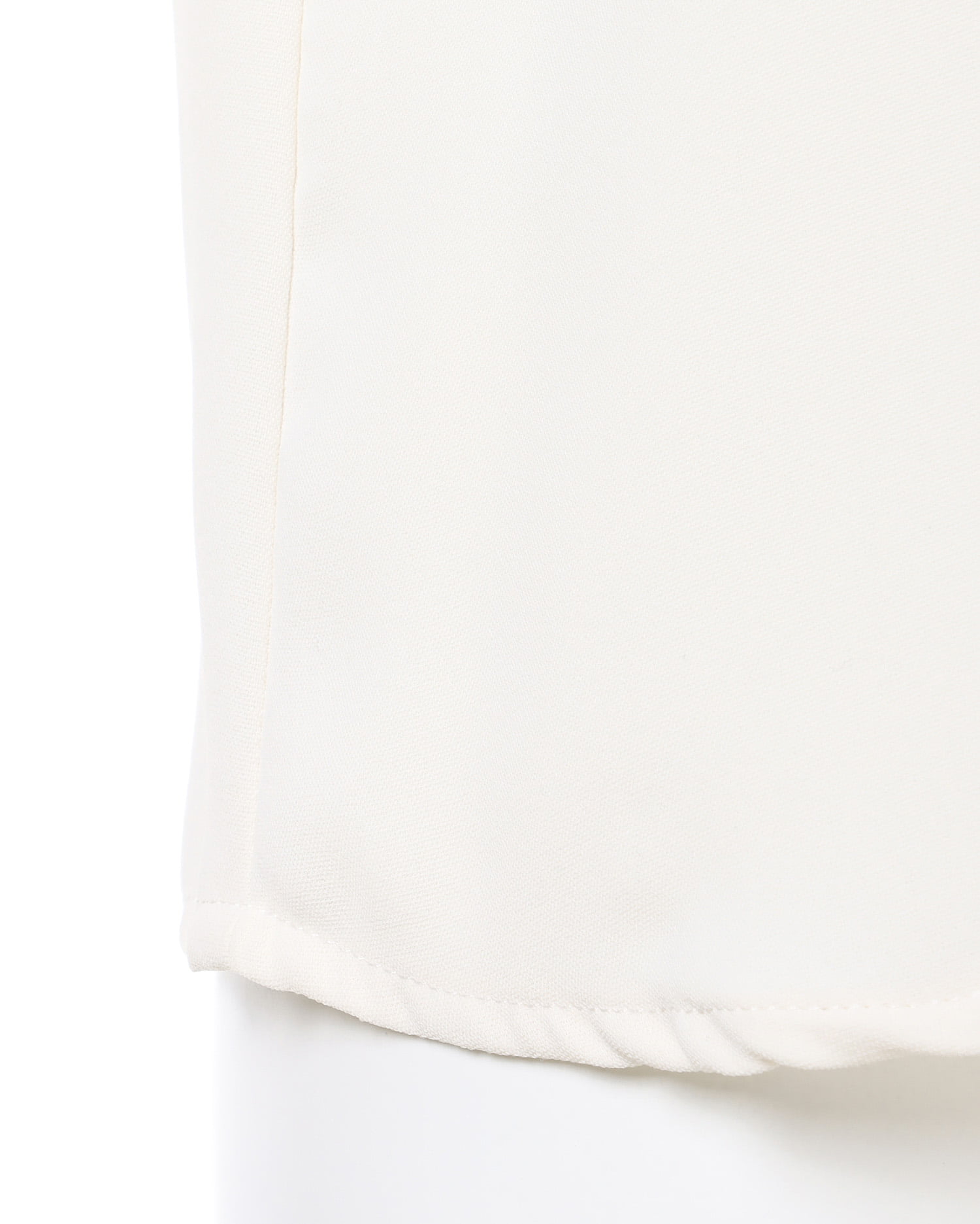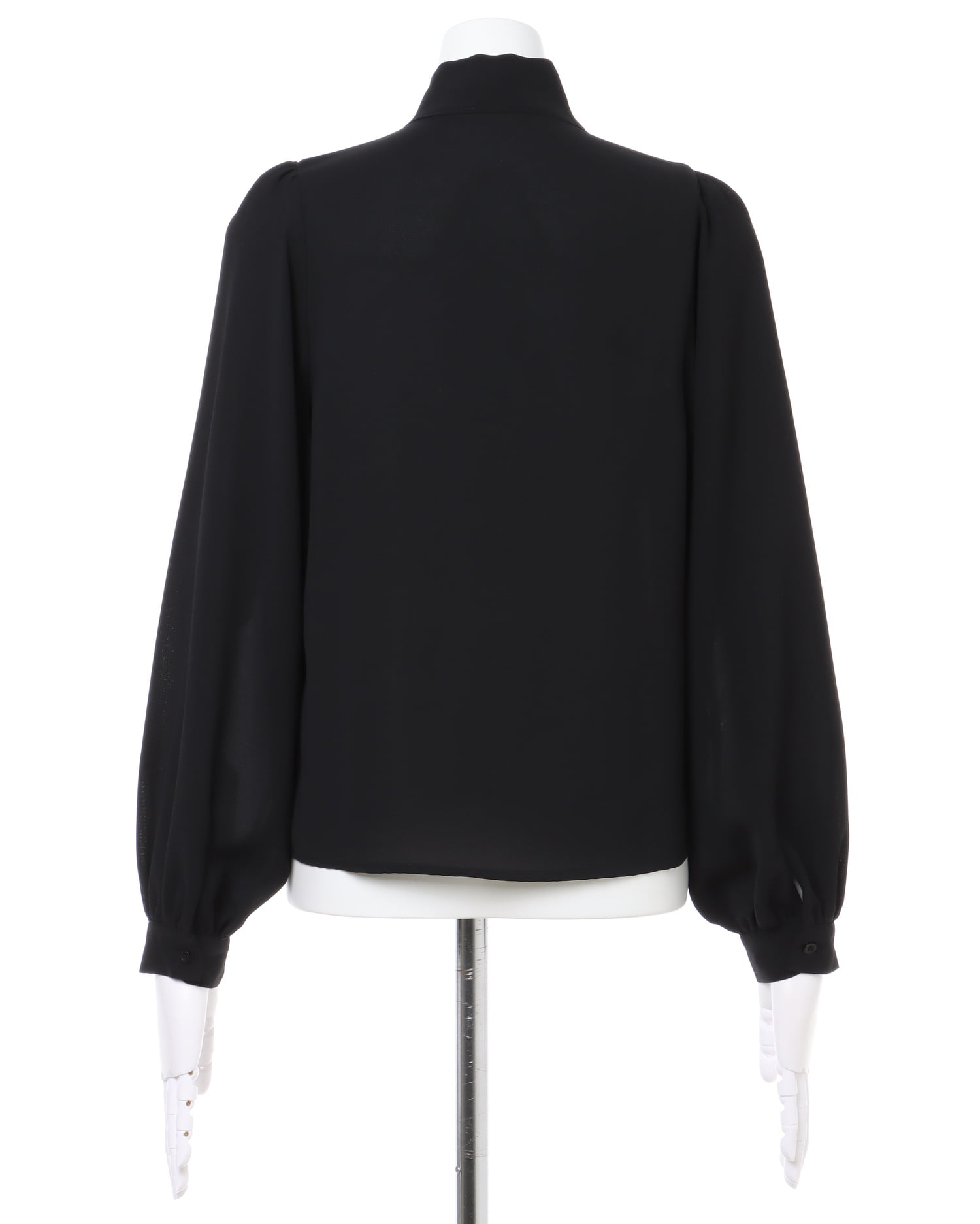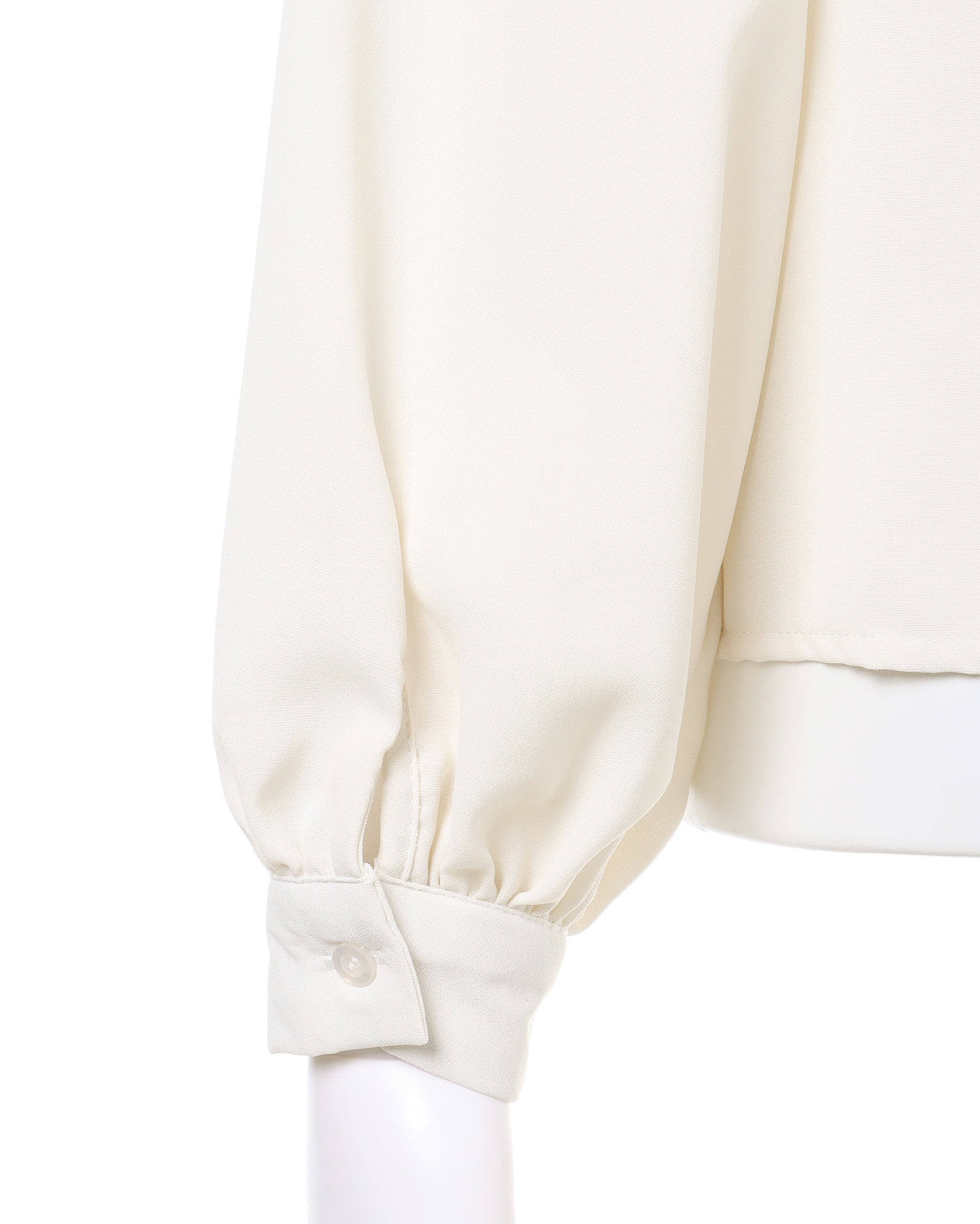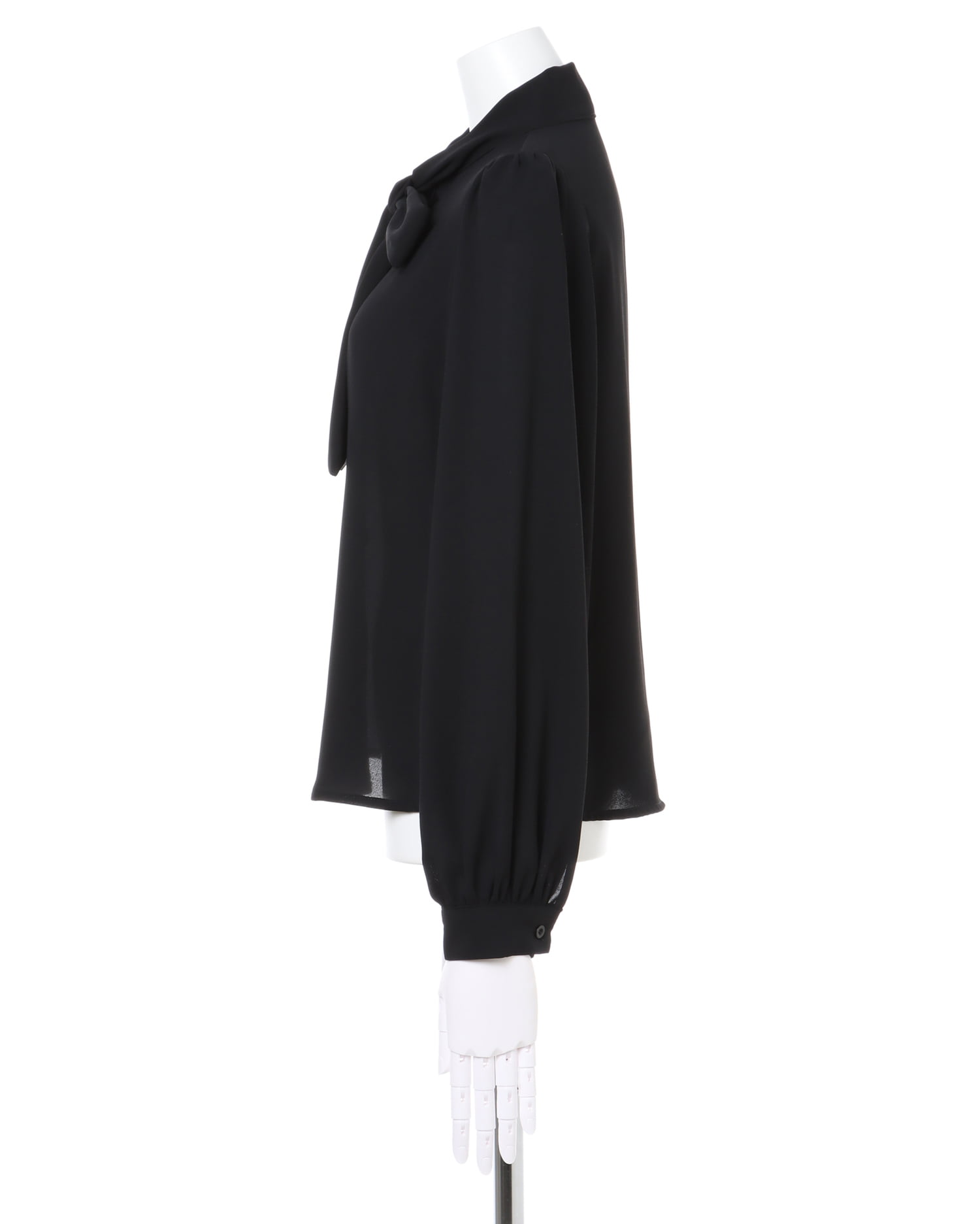 オンオフ問わずに着回せるシンプルブラウスはボウタイデザインが魅力。