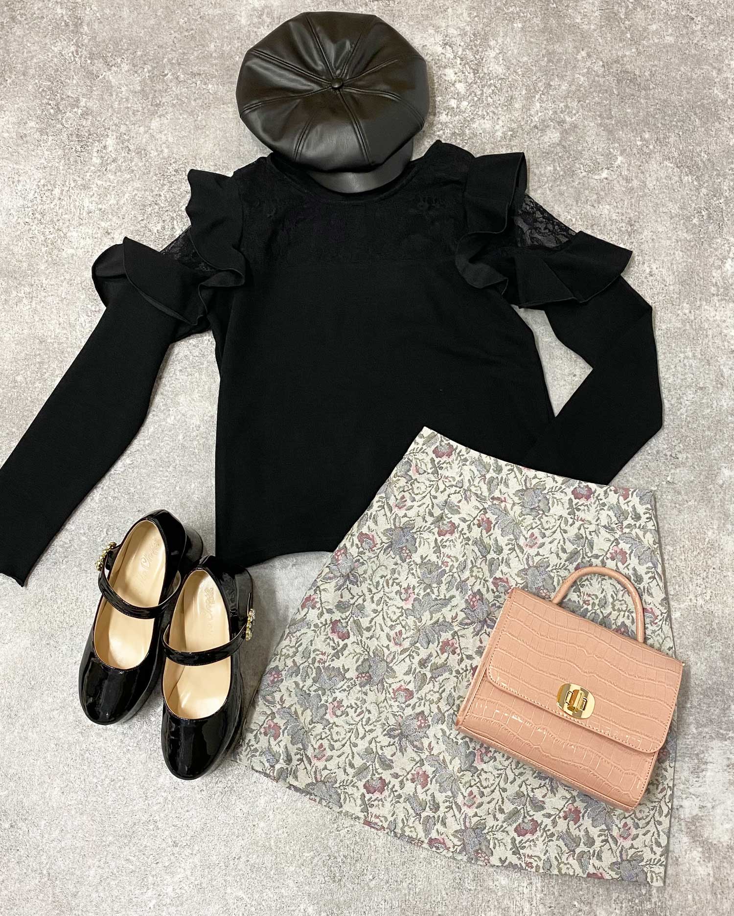 落ち着いたカラーとフラワーデザインで大人っぽく着られるおすすめのアイテムです。