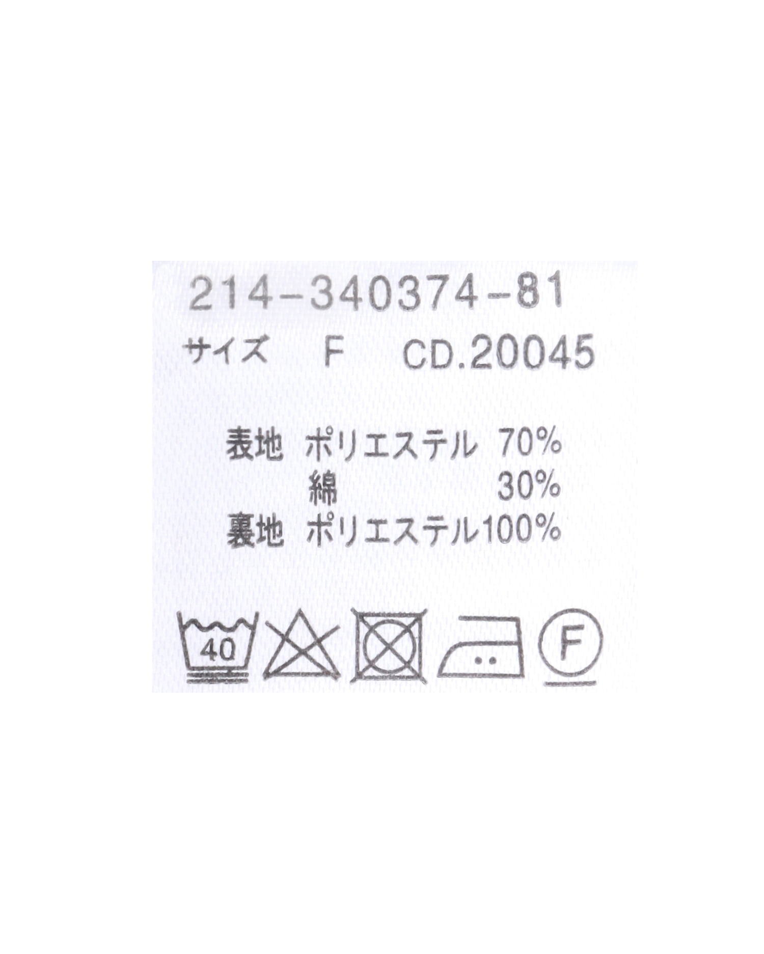 原産国 中国 表地 ポリエステル70% 表地 綿30% 裏地 ポリエステル100%
