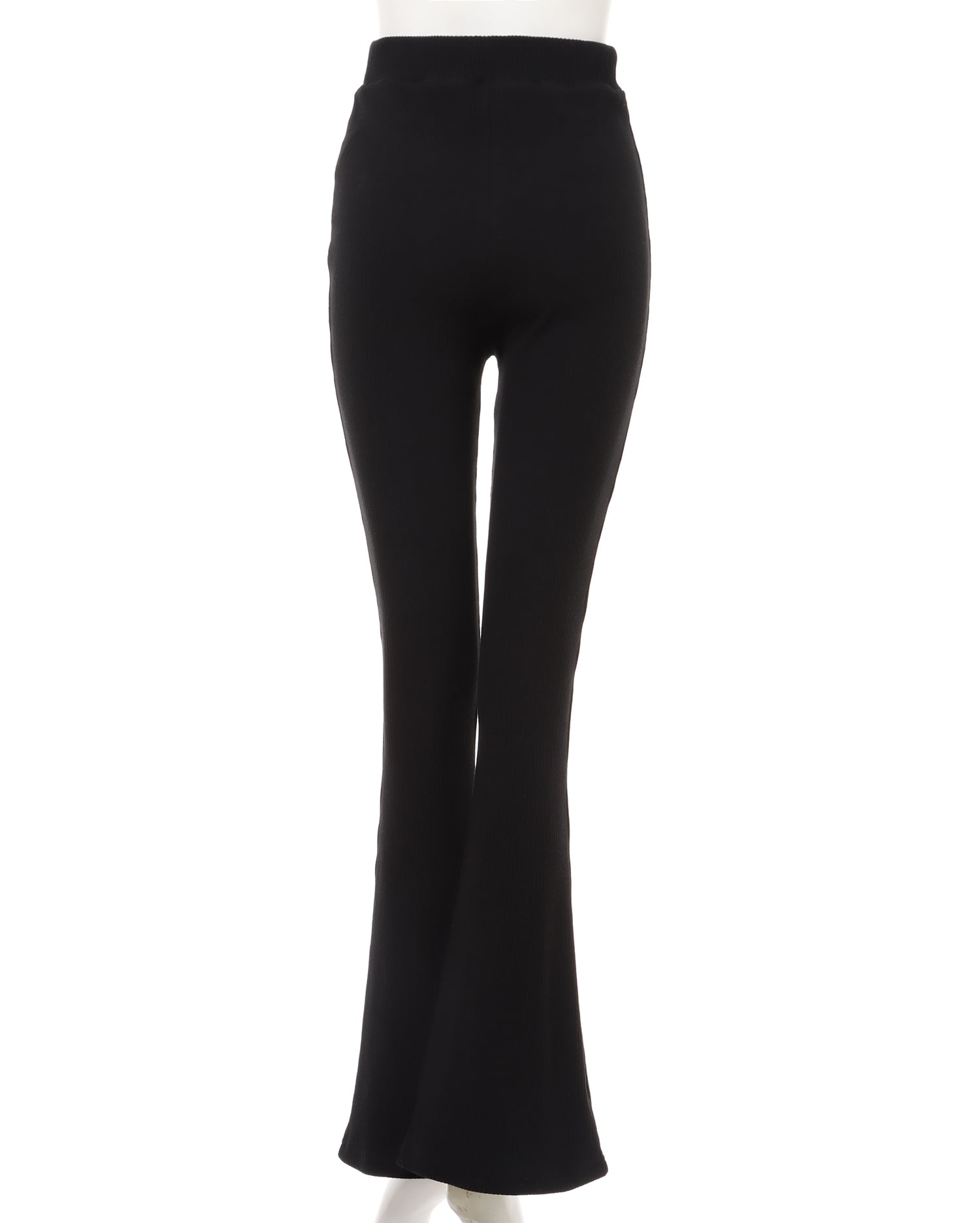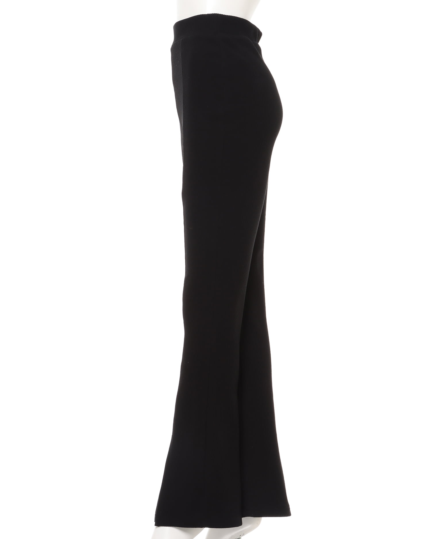 伸縮性抜群のリブパンツはデイリーに大活躍すること間違いなしのおすすめアイテム。程よくハリ感を持たせた生地がキレイなシルエットをキープ。裾へ向かって広がるフレアシルエットでスタイルアップを狙えます。フロント裾に入れたスリットがスタイリッシュなアクセントに。トレンドのビッグシルエットのトップスにもバランス良く合わせられます。