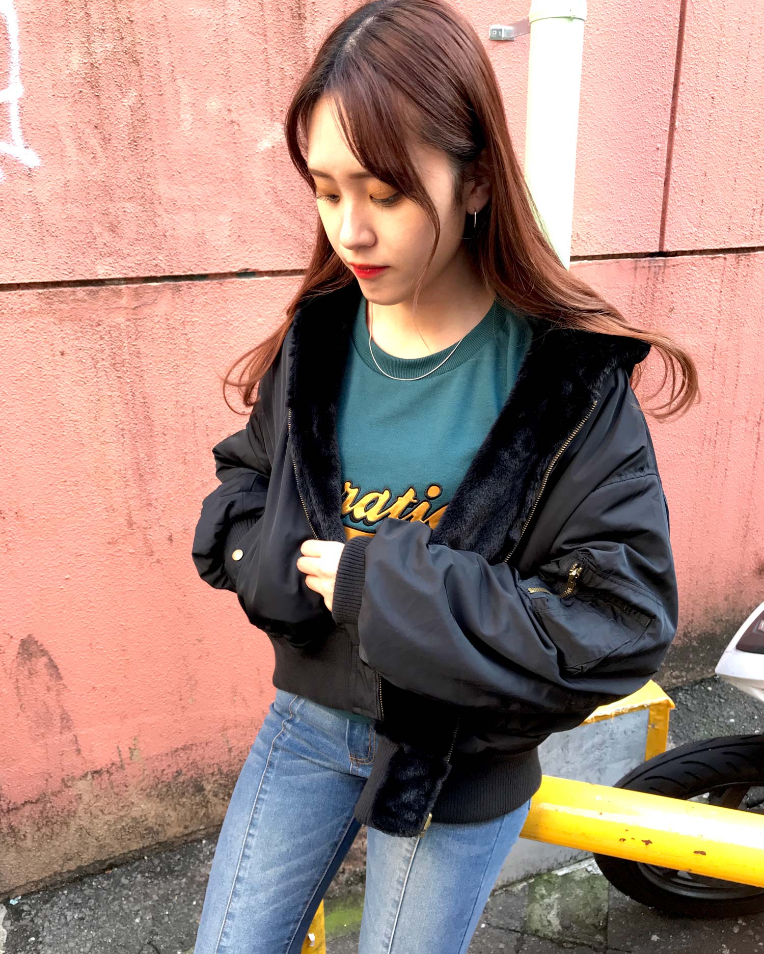 裏地とフードをあたたかなエコファーで仕上げたMA-1ジャケット。